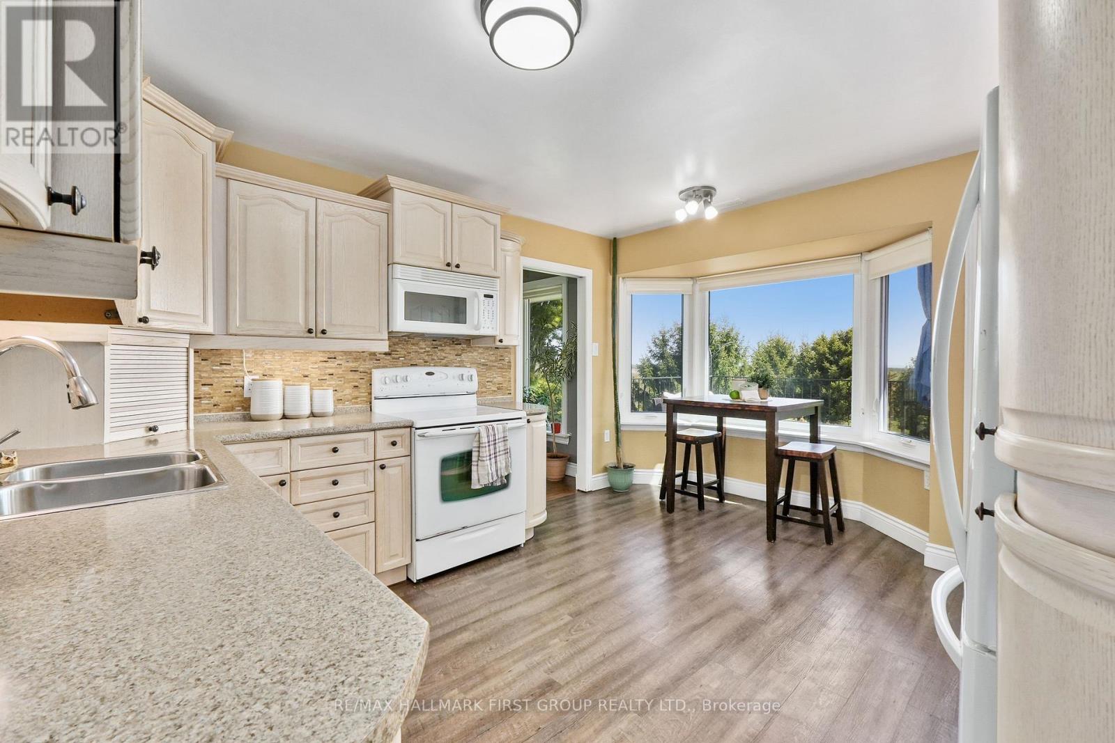 Nestled on the north end of Cobourg, this spacious 1-acre property offers a carpet-free layout with plenty of room to grow, including the potential for an in-law suite on the lower level. The main floor features a bright, airy living room with crown moulding and wall of windows that flood the space with natural light. Flowing seamlessly into the dining area, its perfect for family gatherings and entertaining. The kitchen is functional and stylish with a bayed breakfast nook, coffee bar, tile backsplash, generous cabinetry and counter space, a pantry for extra storage, and a walkout to the back deck, which is ideal for summer BBQS and outdoor living. The main level is complete with two well-appointed bedrooms and a bathroom with a walk-in shower enclosure. Downstairs, the lower level offers incredible versatility for multigenerational living. It features a separate entrance, spacious rec room with a cozy fireplace, and a flexible area for a games room or office. Two additional bedrooms, full bathroom, and laundry room provide comfort and convenience for extended family or guests. Step outside to your private backyard retreat. The upper-level deck off the kitchen provides sweeping views of the forested Northumberland hills. A spiral staircase leads to a lower patio perfect for al fresco dining. Mature trees and landscaping enhance privacy, while raised flower beds and generous green space offer room to garden, play, or simply unwind. Located just minutes from Cobourg's downtown amenities and with easy access to Highway 401, this property offers tranquility and convenience. (id:64974)