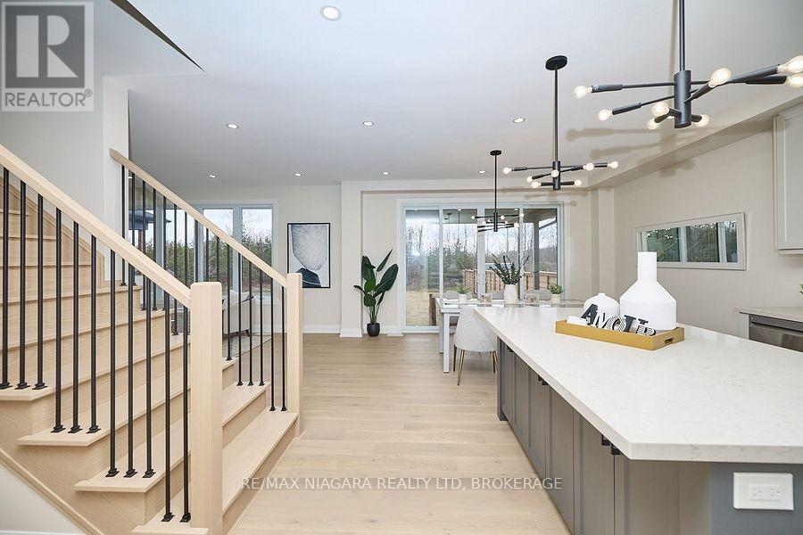 Beautiful 4-bedroom + den, 2.5-bath home in sought-after Campden Estates, located on a quiet cul-de-sac with no rear neighbours. Featuring 9-ft ceilings, upgraded engineered flooring, and a bright open-concept layout with a custom kitchen, quartz counters, stainless steel appliances, and a walk-in pantry. Living room with a gas fireplace and large windows for natural light. Upstairs boasts a spacious primary suite with coffered ceiling, walk-in closet, and a 5-pc ensuite with heated floors. Three additional bedrooms share another 5-pc bath. The unfinished basement offers excellent potential for a gym, rec room, or office. Close to vineyards, trails, schools, and just minutes to QEW the perfect mix of small-town living and modern convenience. (id:64974)