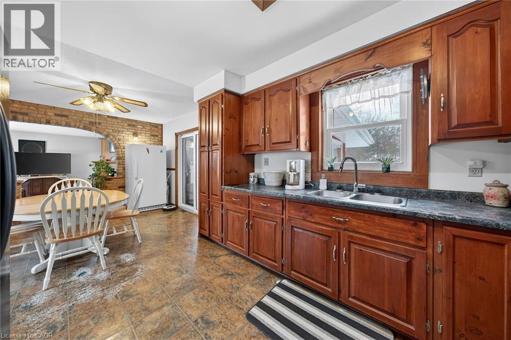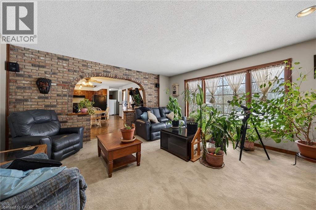 A true 'blink and you'll miss it' hidden gem on a 0.5 acre parcel has hit the market! Tucked under the towering pines that border the property, this all brick 3 bedroom+2 bathroom bungalow is awaiting you to make it your own. Extremely attractive layout, with an open concept kitchen/dining/and living room combo. The bedrooms were all thoughtfully placed a generous distance from the common area. Perfect for young kids with early bed times, or a home office that needs some privacy! The kitchen highlights a very functional footprint with ample cabinetry, pantry, replacement vinyl window('23) overlooking the backyard, a skylight inviting the natural light indoors, and sightlines through the dining room to the cozy carpeted living room, framed by a beautiful arched brick wall and showcasing a natural gas fireplace + large window. Desirable main floor laundry/mud room with storage, a wash tub, access to the partially finished basement and a side door to the deck. From the dining room, use the sliding doors to enjoy your south facing 3 seasons sun room. The bright and tidy main bathroom has been fully updated, offering vinyl flooring, and a large jetted tub with therapy lighting! All 3 sizable bedrooms have closet organizers, and replacement vinyl windows ('23). The lower level has a spacious finished rec room and 3 piece bathroom. Other features include the generac generator, large storage room, basement waterproofing, front porch, a second driveway hugging the east side of the property, 100 amp break panel, 2 sump pumps, central vac, 2nd fridge, 2 storage sheds on the property, parking for 6+ cars, and so much more! (id:64974)
