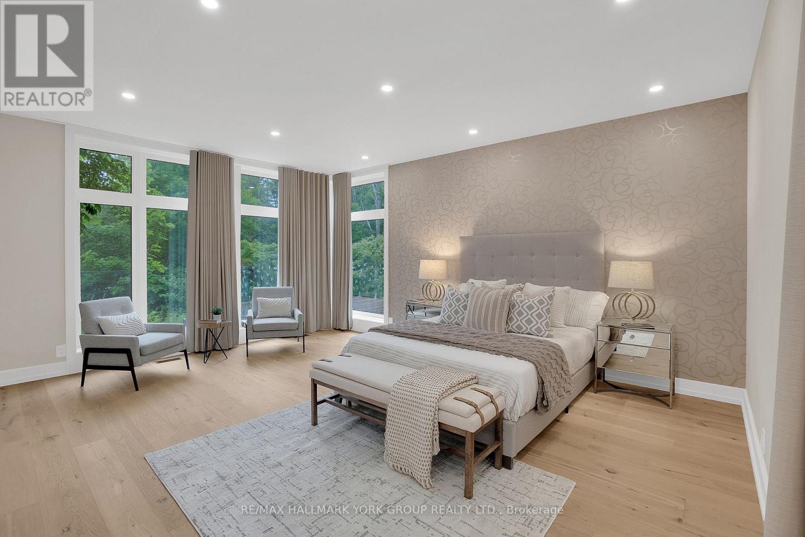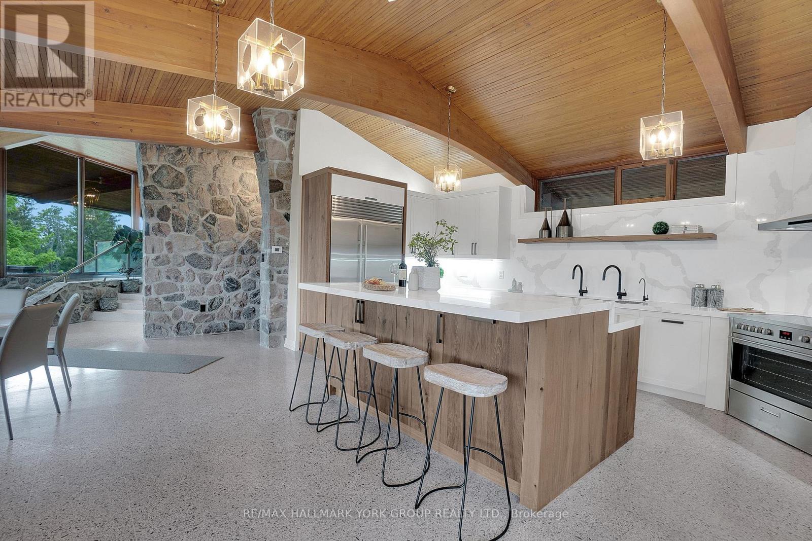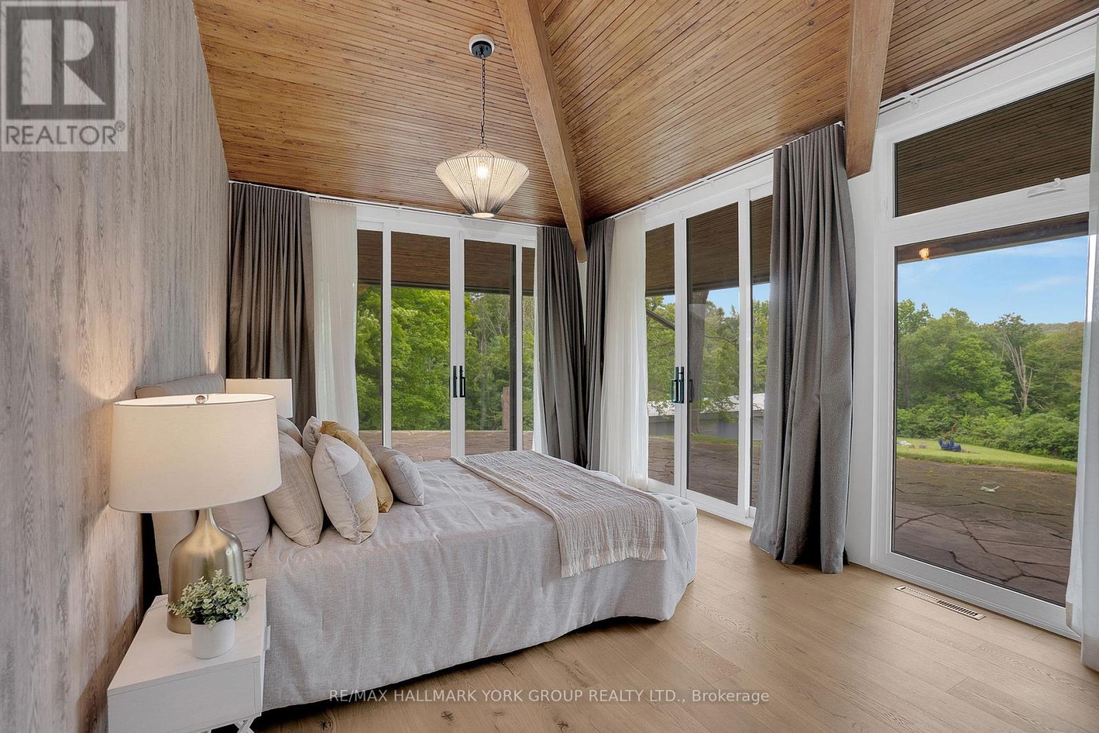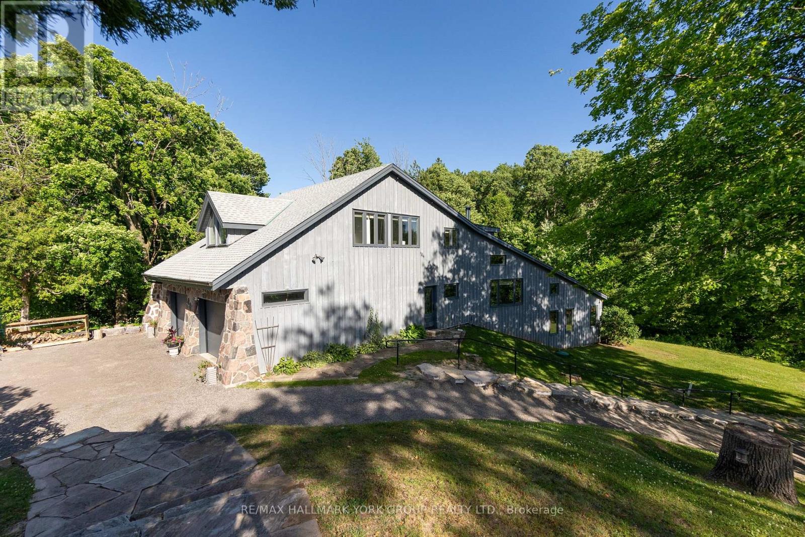 Welcome to an extraordinary estate tucked away behind welcoming stone pillars and a winding forested driveway! This is a work of art designed by the legendary Grant Whatmough and Gardiner Cowan, with distinctive Frank Lloyd Wright style of Architecture. This iconic Mid-Century Modern residence is gracefully integrated into 32 acres of majestic land, where nature and architecture exist in perfect harmony. From the moment you approach the stunning entry door, you're drawn into a world of timeless design and serene beauty. This home is lovingly maintained with extensive renovations, while preserving the character and soul of this home, Including Floor-to-ceiling windows bring the outdoors in, Stone fireplaces indoor and out, original stone walls and impressive wood beams throughout. Spanning approximately 5,000 sq ft, the main residence features 6 bedrooms, 7 bathrooms, an office, a meditation room, and a separate nanny suite. Multiple terraces and decks surround the home, offering breathtaking views of the land, and a tranquil lake creating the feel of a private luxury retreat. This property features a rare second home- fully renovated and approximately 3,500 sq ft-offering 3 bedrooms, 4 bathrooms, and a massive loft space! This second home is ideal for an extended family! There is an additional Yoga studio with an outdoor shower! a Detached garage/ workshop, a charming cedar Cabin with Sauna and Cold plunge, a Covered cabana for entertaining or relaxing on the property. This is a once-in-a-lifetime opportunity to own an architecturally significant estate in the prestigious King Township. With unmatched privacy, lush surroundings, and two beautifully appointed homes, this property is truly a timeless work of art. Don't Miss it! (id:64974)