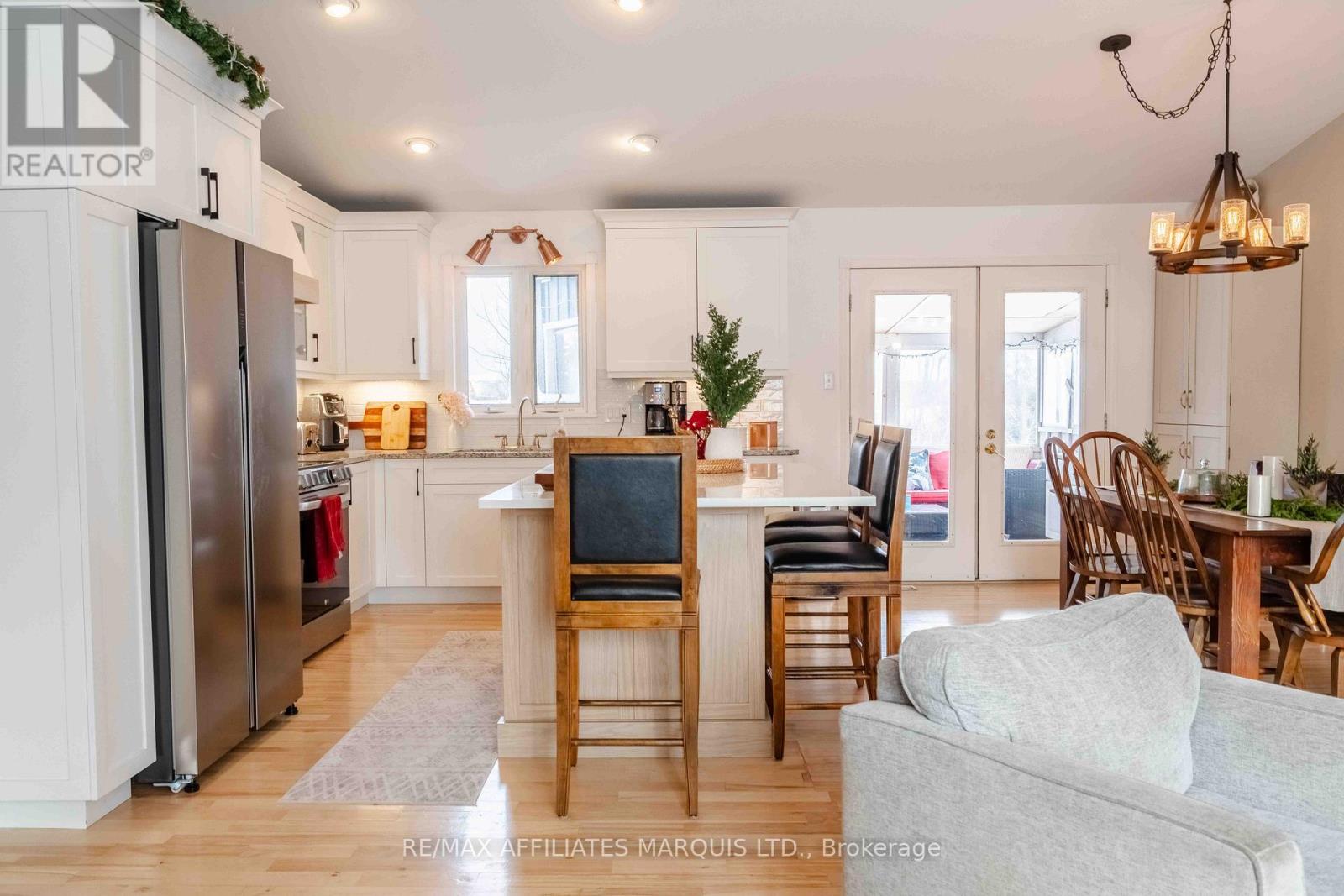 Experience the best of country living with the convenience of nearby city amenities in this beautifully updated home set on over 5 private acres. Surrounded by mature trees and open space, this property offers privacy, versatility, and room to grow.The main level features a bright, open layout designed for both everyday living and entertaining. A custom Artisan Kitchens kitchen anchors the space, flowing effortlessly into the dining and living areas. Step out from the dining room into the screened-in porch-an ideal spot for morning coffee, evening relaxation, or hosting guests while enjoying the peaceful surroundings.Three spacious bedrooms and a well-appointed 3-piece bathroom are located on the main floor, including a primary bedroom with an impressive walk-in closet. The fully finished lower level adds exceptional value with a large recreation room warmed by a bio-fuel pellet stove, a fourth bedroom or home office, and a second 3-piece bathroom-perfect for guests, remote work, or family living.Outside, the property is a nature lover's dream. The land features extensive tree plantings, including blue spruce, silver maple, black walnut, fruit trees, berry bushes, and grapevines. A large garage with a wood stove, a new shed, additional storage beneath the porch, and a rustic hunter's camp with its own wood stove provide endless possibilities for hobbies, storage, and outdoor enjoyment.Entertain all summer long on the expansive back deck complete with an above-ground pool and hot tub, while enjoying the peace and privacy of your surroundings. Conveniently located within easy driving distance to Ottawa, Montreal, and Cornwall, this property offers a rare opportunity to enjoy space, privacy, and comfort without feeling remote.24-hour irrevocable on all offers. (id:64974)