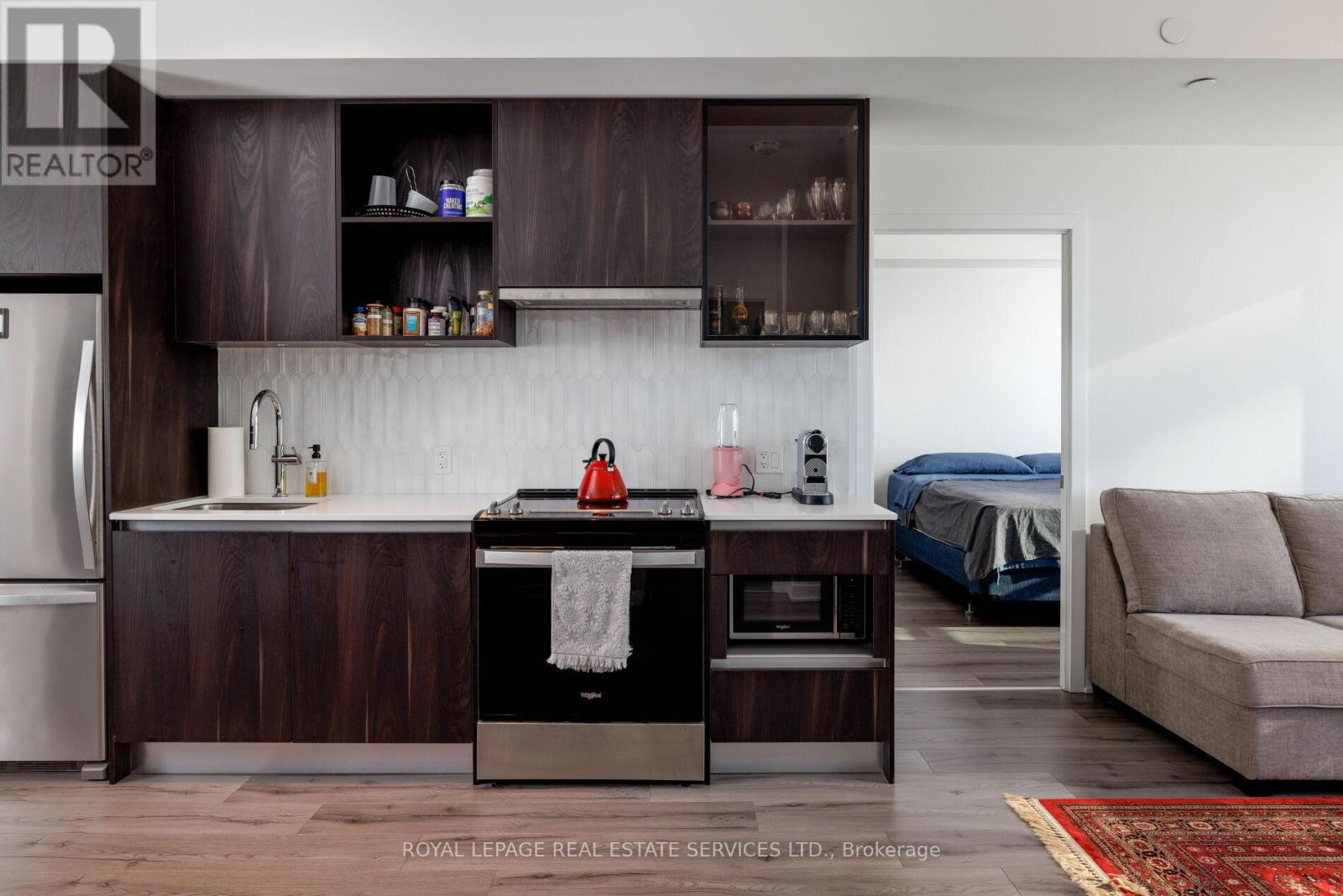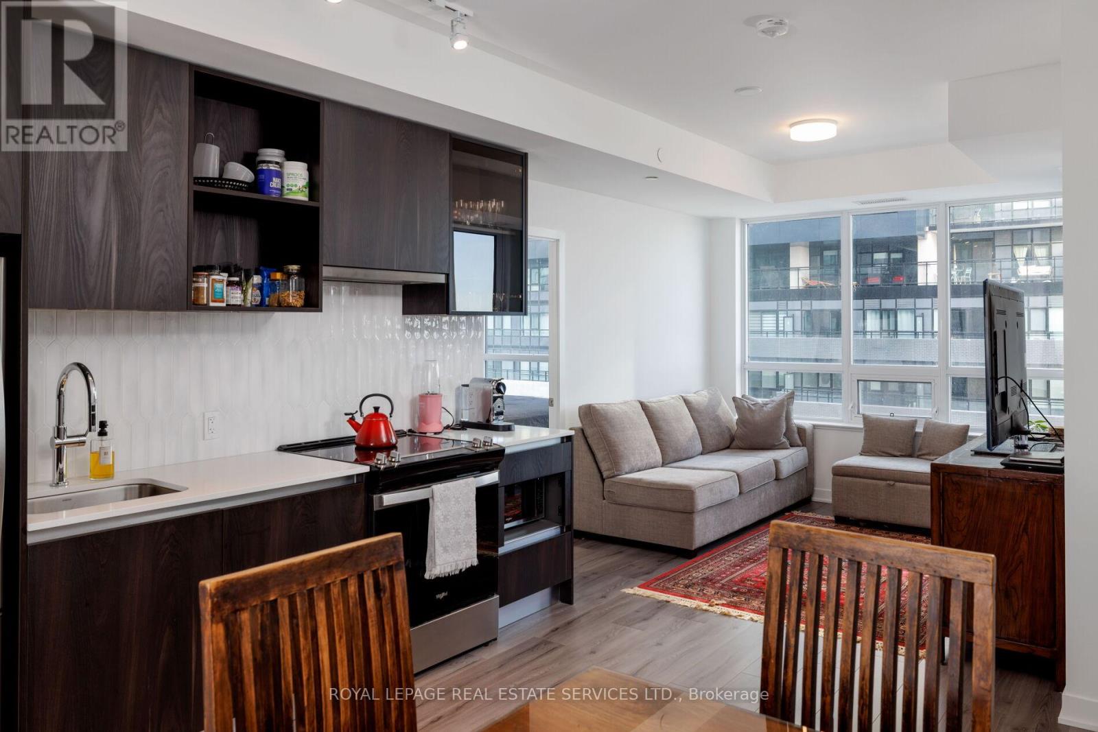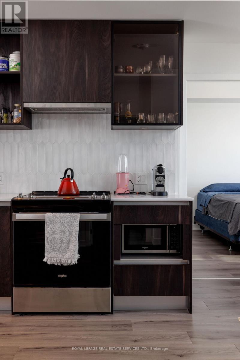 Experience luxury condo living at Distrikt Trailside in this stunning 2-bedroom plus den, 2-bath suite offering approx. 937 sq. ft. of bright, modern living space plus a private balcony with amazing East views! This upscale Oakville condo features a grand 2-storey lobby with a 24-hour concierge, a state-of-the-art fitness centre, a rooftop patio, fireside lounges, a billiards room, innovative mechanical and automation systems, ground floor lifestyle retail, and an on-site property management office. The suite showcases 9-foot smooth ceilings, wide-plank laminate flooring, designer tiles, quartz countertops, imported Italian cabinetry, Energy Star appliances, Decora switches, fibre-optic Internet, a digital wall pad for seamless interaction with home and community systems, and a weatherproof balcony electrical receptacle. The open-concept living area offers a wall of windows and a walkout to the balcony. A chef-inspired kitchen includes sleek cabinetry, quartz counters, tile backsplash, stainless steel and integrated appliances, and a spacious dining area. The primary bedroom features a walk-in closet and a spa-like 3-piece ensuite with Italian cabinetry, a quartz countertop, and an oversized glass shower. A second bedroom, 4-piece bathroom, in-suite laundry, one underground parking space and a storage locker add convenience. Ideally located in Oakville's sought-after Preserve community, you're steps to Fortino's, restaurants, services, North Park, the public library, and the Sixteen Mile Sports Complex, and just minutes to the Uptown Core, Oakville Trafalgar Hospital, and the 407 ETR-perfect for commuters and lifestyle seekers alike. (id:64974)