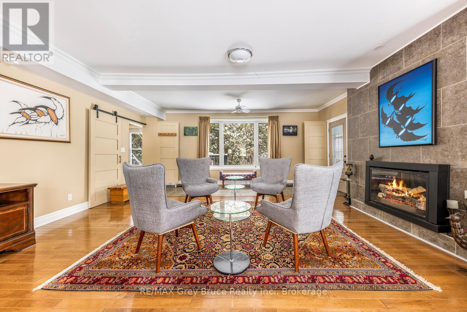 Welcome to your dream home in the heart of Red Bay, where refined finishes, thoughtful design, and an exceptional lifestyle come together in perfect harmony. This impressive three-level estate offers elegant living with four spacious bedrooms upstairs, including two private suites with spa-inspired ensuites. Crown moulding and 9-foot ceilings add timeless character, while premium Centennial windows fill the home with natural light and energy efficiency. The chef's kitchen is the heart of the home, featuring a commercial-grade Garland propane stove, Corian countertops, a generous pantry, and a butler's servery-perfect for effortless entertaining. Every heated appliance, from the hot water tank to the BBQ and fire tables, is hard-piped to propane for seamless, cost-effective comfort year-round. Designed for both relaxation and connection, this home easily adapts to your lifestyle goals. Host memorable gatherings, welcome extended family, create a dedicated home office, or build your ideal fitness or hobby space-the flexible layout gives you room to grow and truly live. Heated bathroom floors add everyday luxury, while the lower level offers versatile space for a guest suite, lounge, gym, workshop, and abundant storage. Step outside to your private retreat. Enjoy evenings on the Trex deck by the propane fire table, unwind in the Arctic Spa hot tub under the stars, or relax in the sauna. The cabana invites yoga sessions or peaceful afternoons, while a fire pit area, large shed, cabana storage, and fenced parking for up to eight vehicles complete this entertainer's oasis. Located in Red Bay-often called Sauble Beach's hidden gem-you'll enjoy breathtaking sunsets, calm shallow waters ideal for families, and a welcoming community with a nearby public dock for easy lake access. This is more than a home-it's your private resort and a gateway to the very best of Bruce Peninsula living. (id:64974)