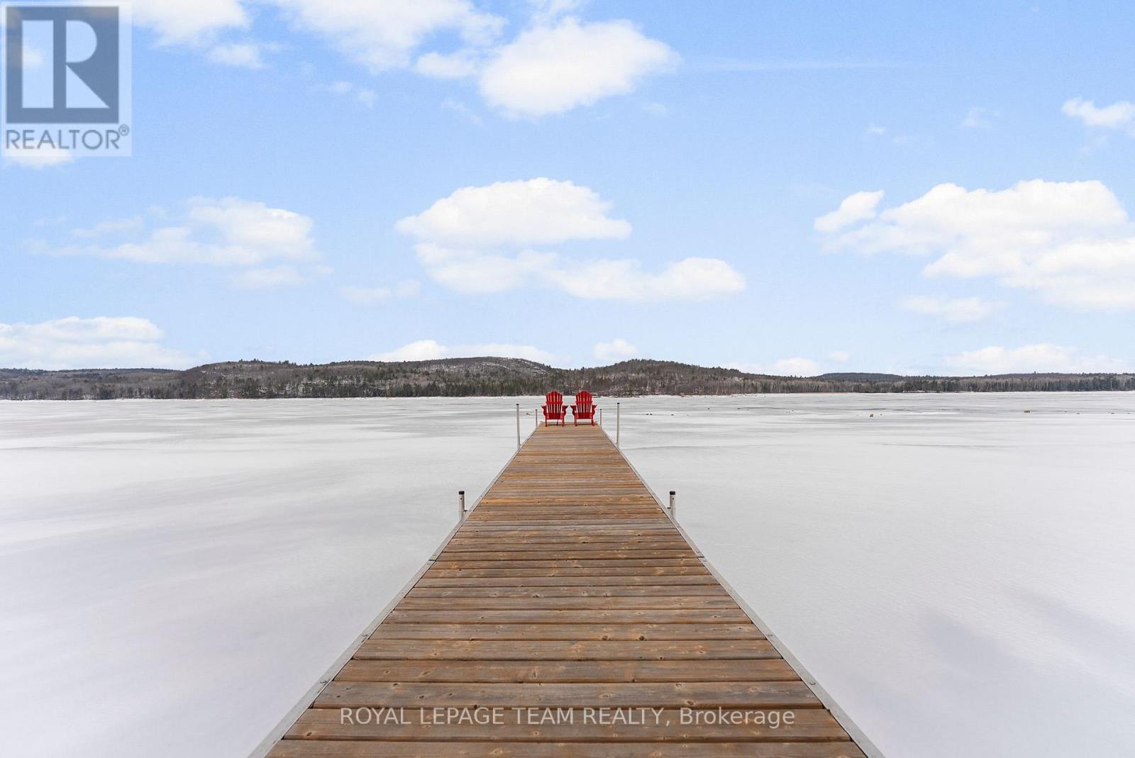 Welcome to an exceptional waterfront offering in the highly coveted Lakewoods subdivision on prestigious Bark Lake in the heart of the Madawaska Valley. Built in 2017, this beautifully designed 2-bedroom, 2-bathroom home blends modern comfort with timeless Muskoka-inspired charm, delivering an unparalleled lakefront lifestyle. From the moment you enter, you are greeted by a bright, open-concept living space defined by soaring cathedral ceilings and an abundance of natural light. Expansive floor-to-ceiling windows frame breathtaking panoramic views of Bark Lake, creating a seamless connection between indoor living and the surrounding natural beauty. The elegant yet relaxed design makes this home ideal for both quiet retreats and entertaining family and friends. The thoughtfully laid-out kitchen and living area offer direct access to a spacious lakeside deck, perfect for al fresco dining, morning coffee, or unwinding while taking in spectacular sunsets. The primary living spaces are complemented by two well-appointed bedrooms and two full bathrooms, offering comfort and functionality for year-round use or as a luxury cottage escape. Below, a full unfinished basement with walk out provides incredible opportunity to expand and customize, whether you envision a recreation room, additional bedrooms, or a private wellness space-truly a blank canvas to bring your vision to life. This property represents exceptional value in an exclusive lakeside community where finished homes rarely become available. Bark Lake is known for its pristine waters, scenic beauty, and recreational opportunities, making it one of the most desirable destinations in the region. Whether you are searching for a year-round residence, an investment property, or a premium waterfront getaway, this is a rare opportunity to secure a turnkey home with outstanding future potential in a truly special setting. Showings by Appt Only. (id:64974)