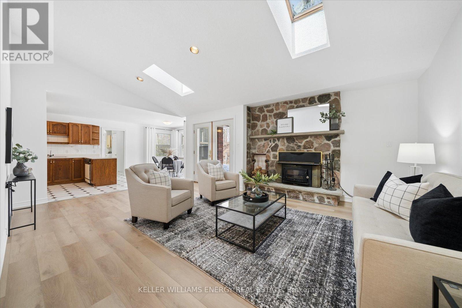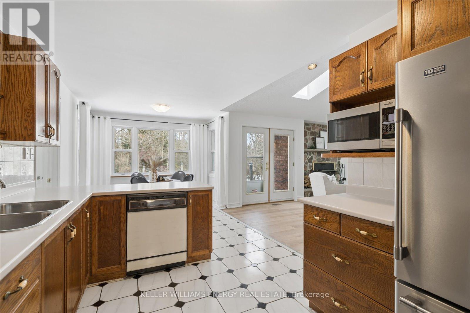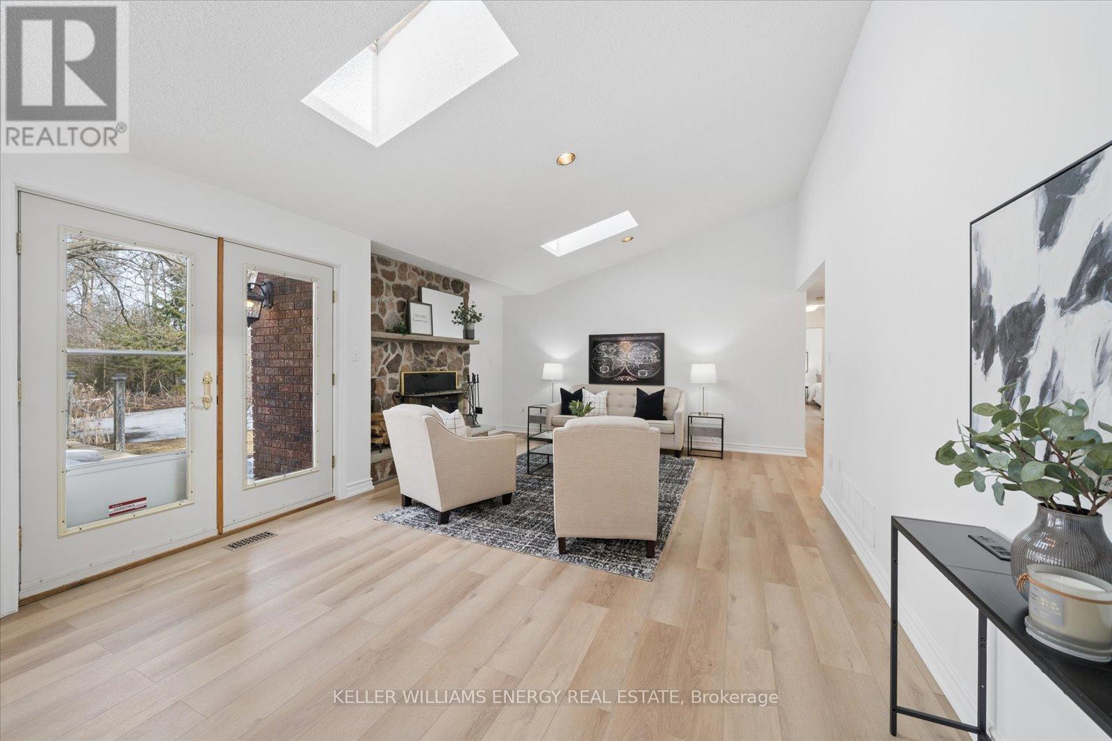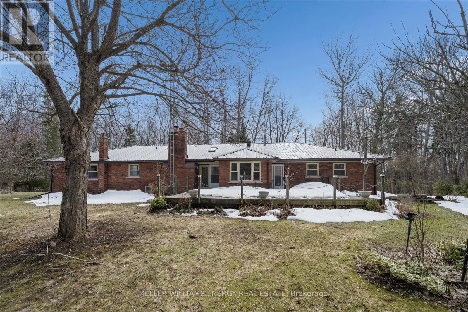 Welcome to 4248 Fourth Line - where the quiet beauty of country living meets the ease of thoughtful, bungalow living, just minutes from the heart of Port Hope. Set on a picturesque 2.4 acre property, this fully bricked and stone ranch bungalow offers the kind of space, privacy, and natural surroundings that are increasingly rare. Surrounded by mature trees and completely private from neighbours, the setting invites a slower pace - morning walks by the pond, evenings under open skies, and room to truly breathe. With over 2,200 sq ft of main floor living, the home is designed for comfort and functionality. A welcoming layout unfolds with a spacious living and dining room at the front of the home, ideal for gatherings both large and small. At the heart of the home, the kitchen opens to a warm and inviting family room with vaulted ceilings, sky lights, and a wood-burning fireplace - a space that feels both expansive and cozy, perfect for everyday living. Large windows throughout the home capture natural light and frame views of the surrounding landscape, enhanced by a desirable southern exposure. The kitchen features a bright eat-in nook overlooking the backyard, creating a natural place to start and end your day. All three bedrooms are generously sized, including a primary suite complete with a walk-in closet, additional closet space, and a private ensuite. New flooring in the family room and bedrooms, along with fresh paint throughout, adds a refreshed feel while still leaving room to personalize the kitchen and bathrooms over time. Practical features further enhance the home's appeal, including a durable metal roof, a new furnace (2025), natural gas heating, and fibre optic internet - blending rural tranquility with modern day comfort and connectivity. For those seeking one floor living, true privacy, and a connection to the outdoors without sacrificing proximity to town, 4248 Fourth Line offers a rare and rewarding lifestyle opportunity. (id:64974)