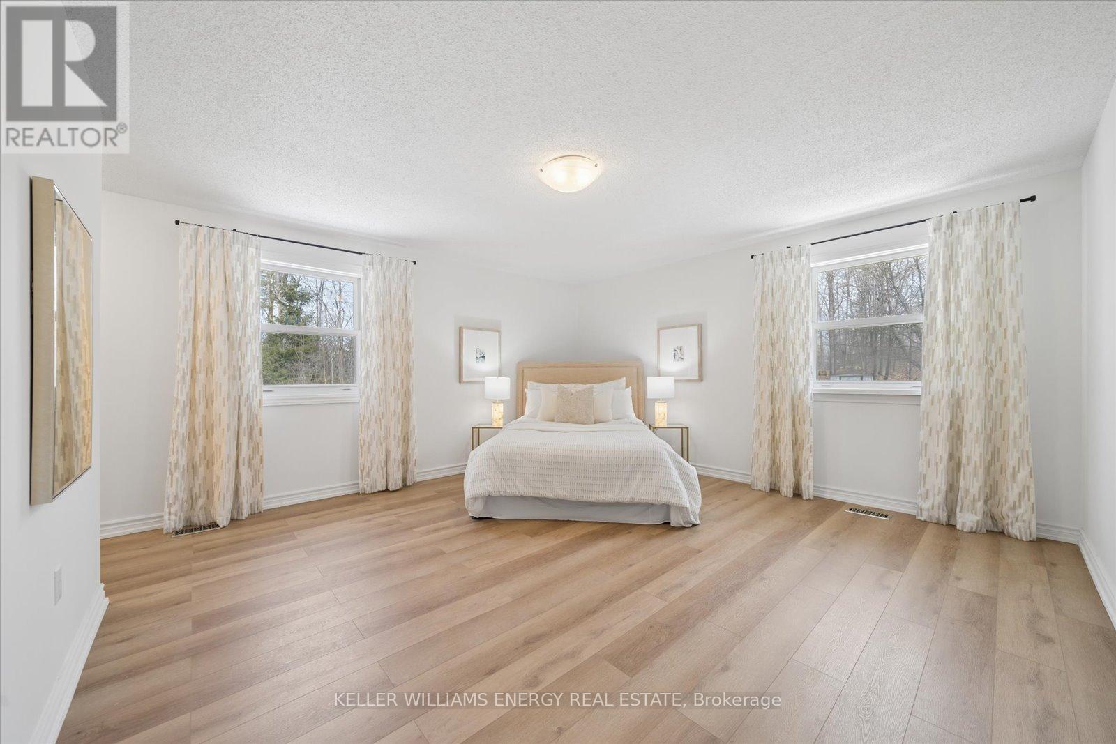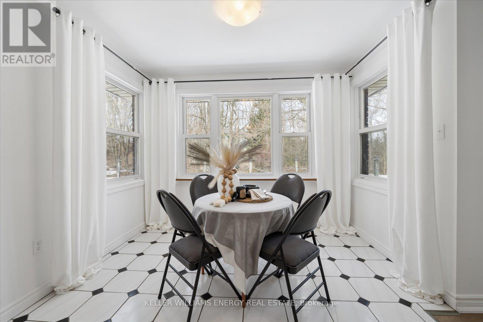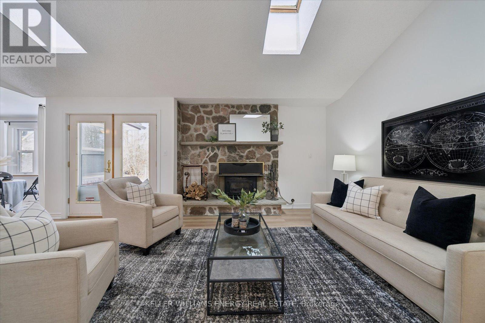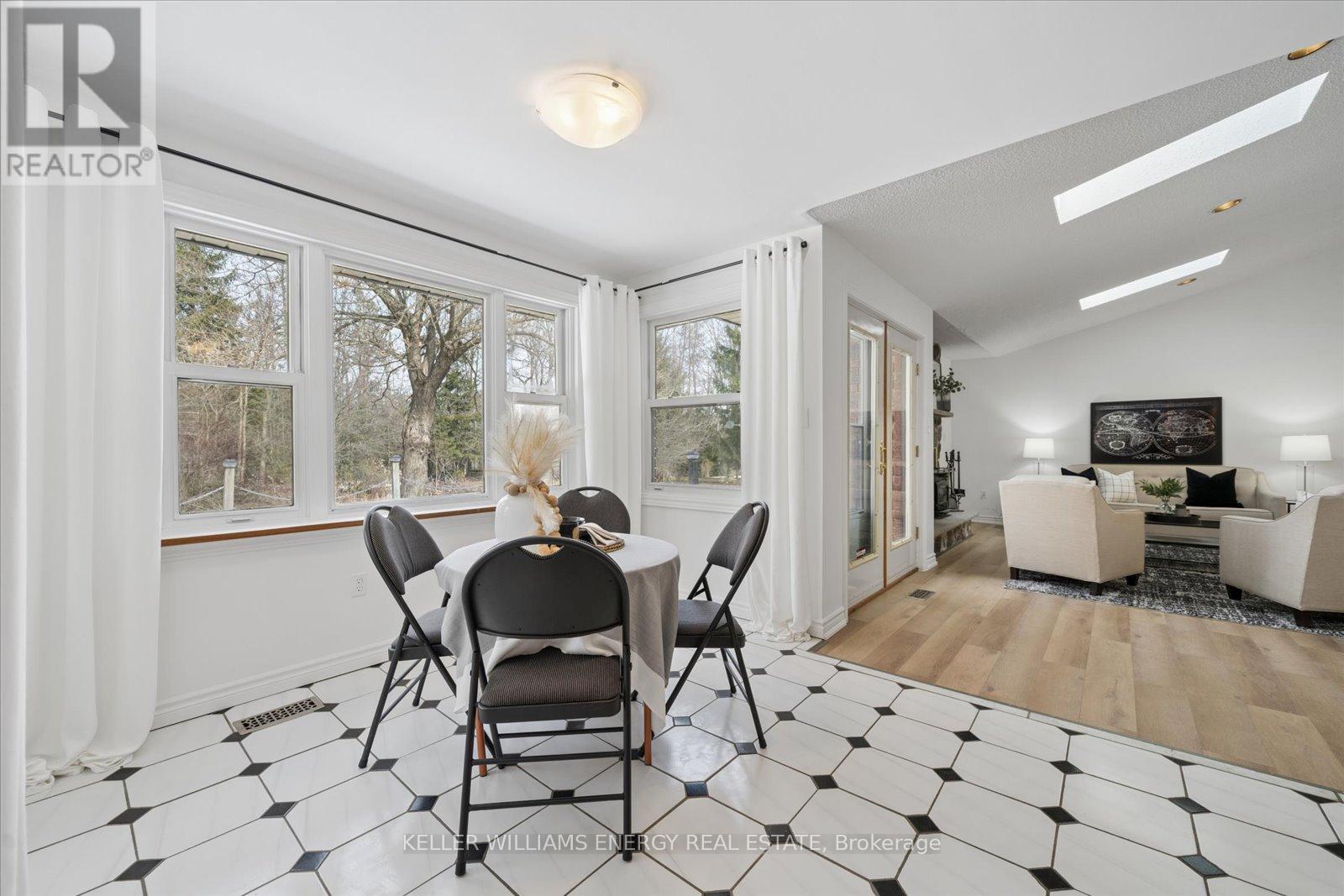 Welcome to 4248 Fourth Line - where the quiet beauty of country living meets the ease of thoughtful, bungalow living, just minutes from the heart of Port Hope. Set on a picturesque 2.4 acre property, this fully bricked and stone ranch bungalow offers the kind of space, privacy, and natural surroundings that are increasingly rare. Surrounded by mature trees and completely private from neighbours, the setting invites a slower pace - morning walks by the pond, evenings under open skies, and room to truly breathe. With over 2,200 sq ft of main floor living, the home is designed for comfort and functionality. A welcoming layout unfolds with a spacious living and dining room at the front of the home, ideal for gatherings both large and small. At the heart of the home, the kitchen opens to a warm and inviting family room with vaulted ceilings, sky lights, and a wood-burning fireplace - a space that feels both expansive and cozy, perfect for everyday living. Large windows throughout the home capture natural light and frame views of the surrounding landscape, enhanced by a desirable southern exposure. The kitchen features a bright eat-in nook overlooking the backyard, creating a natural place to start and end your day. All three bedrooms are generously sized, including a primary suite complete with a walk-in closet, additional closet space, and a private ensuite. New flooring in the family room and bedrooms, along with fresh paint throughout, adds a refreshed feel while still leaving room to personalize the kitchen and bathrooms over time. Practical features further enhance the home's appeal, including a durable metal roof, a new furnace (2025), natural gas heating, and fibre optic internet - blending rural tranquility with modern day comfort and connectivity. For those seeking one floor living, true privacy, and a connection to the outdoors without sacrificing proximity to town, 4248 Fourth Line offers a rare and rewarding lifestyle opportunity. (id:64974)