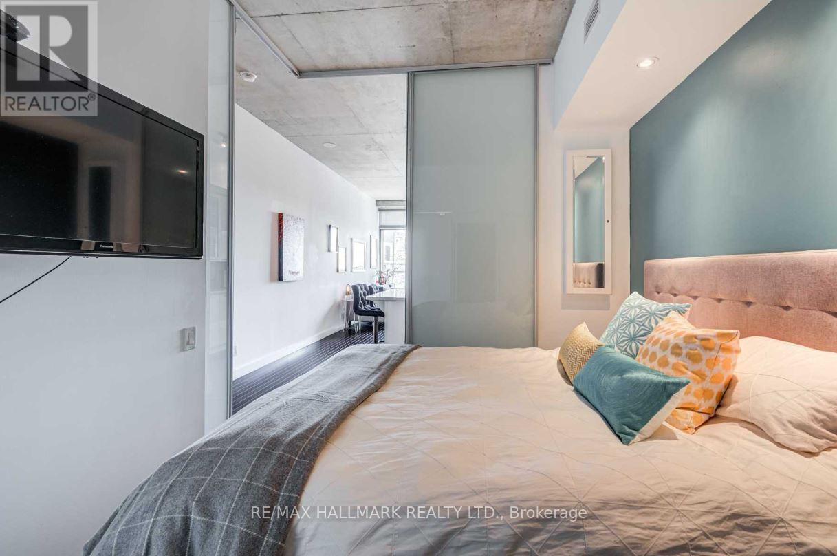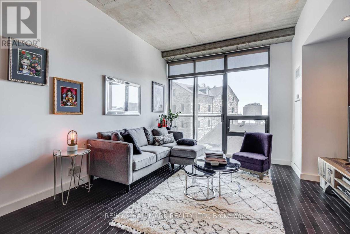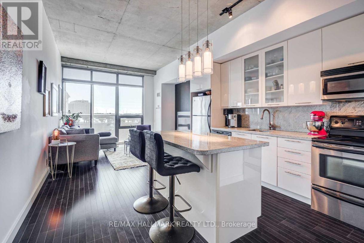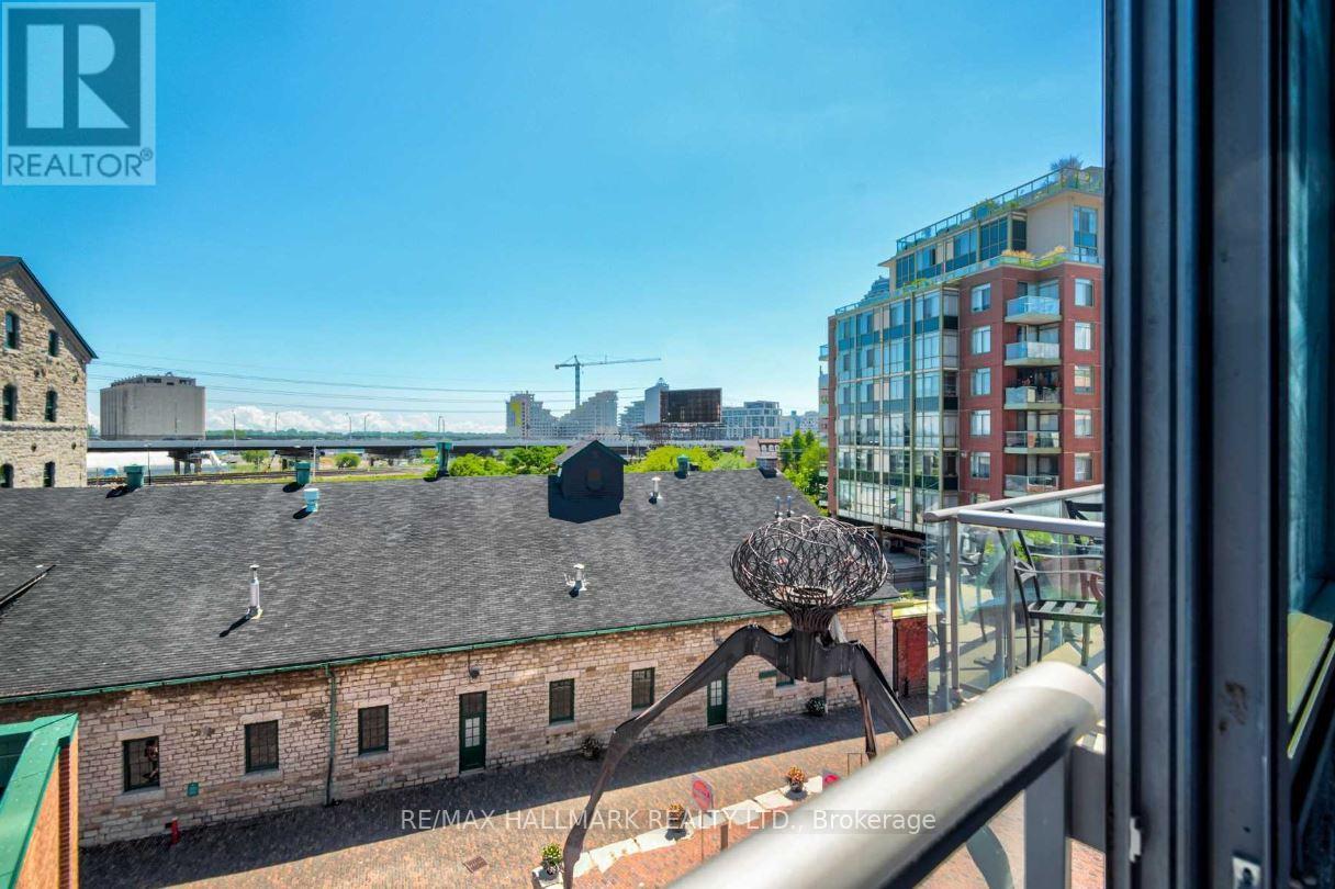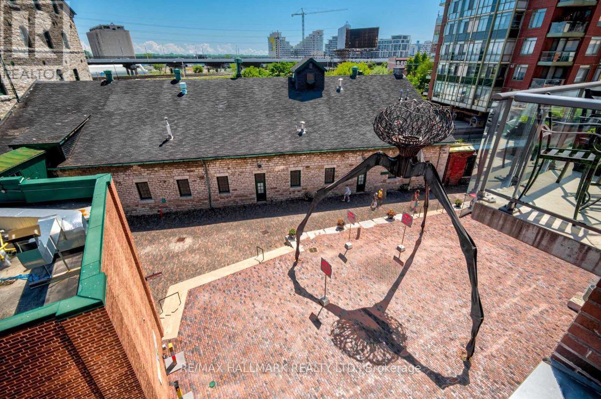 Stunning loft style 1-bedroom plus den with over 750 sq. ft. of upgraded living space with high ceilings, hardwood floors, and granite countertops. The kitchen features a large island, perfect for cooking or casual dining, and top-of-the-line stainless steel appliances. Enjoy an enviable south-facing view directly into the Distillery District, known for its charming Victorian architecture and cobblestone streets. Step outside and find yourself in one of Toronto's most vibrant and sought-after neighbourhoods. The Distillery District offers a pedestrian-only area filled with art galleries, boutique shops, trendy restaurants, and lively bars. Whether you're exploring local art, enjoying a meal at an upscale eatery, or relaxing in one of the many cafes, everything you need is right at your doorstep.This rare unit provides the perfect combination of modern comfort and a dynamic cultural scene, all in one of the best locations in the city. Dont miss out on this exceptional opportunity! (id:64974)