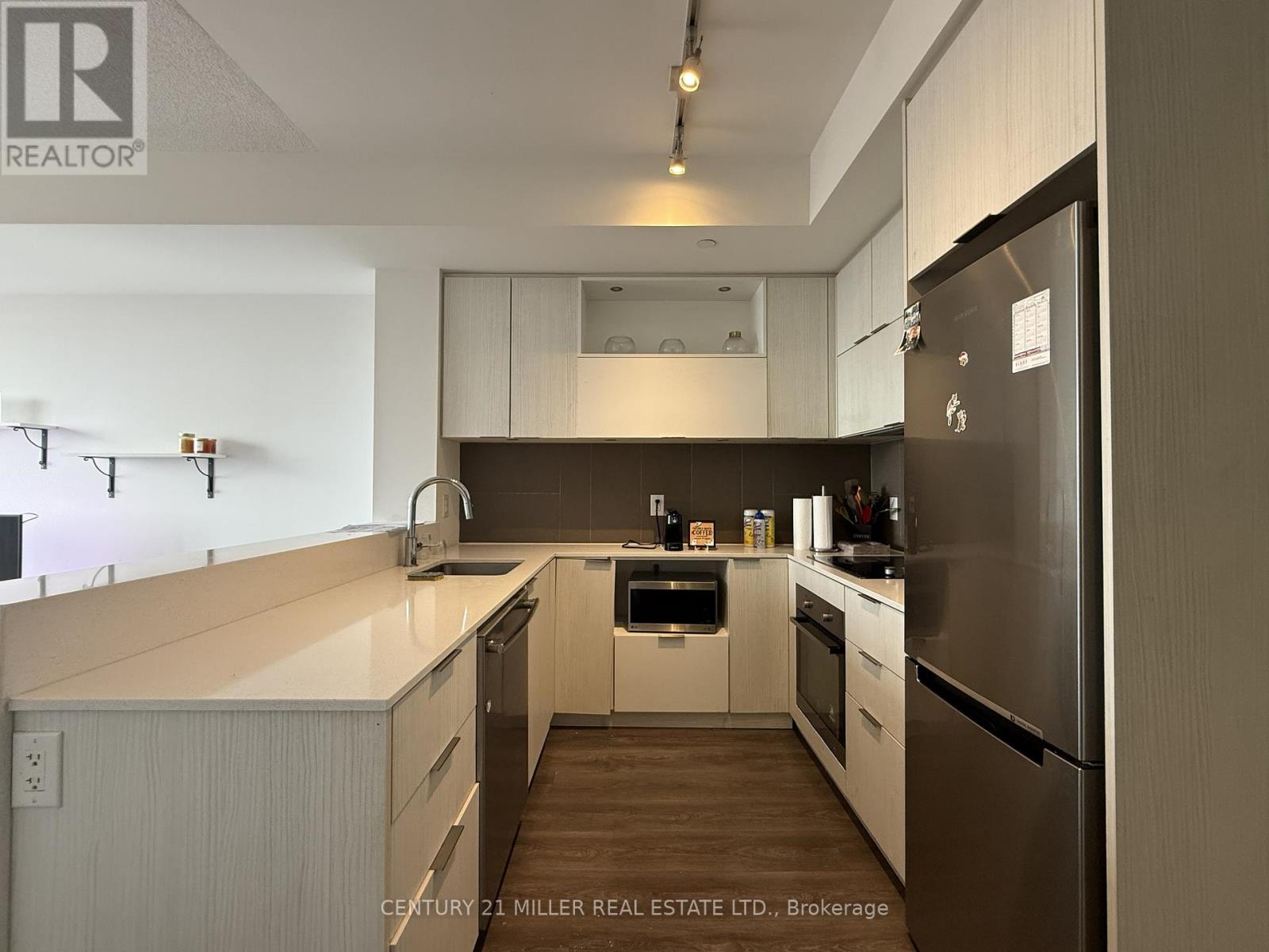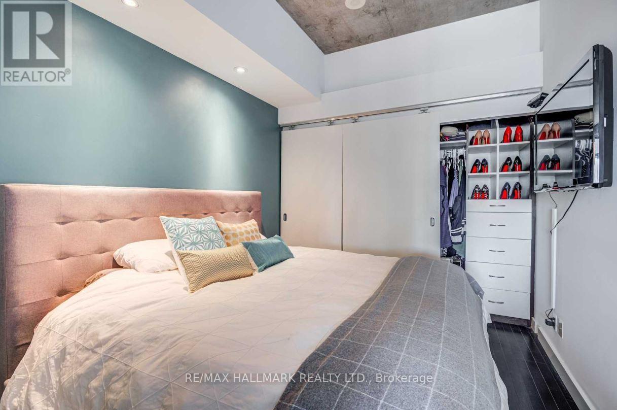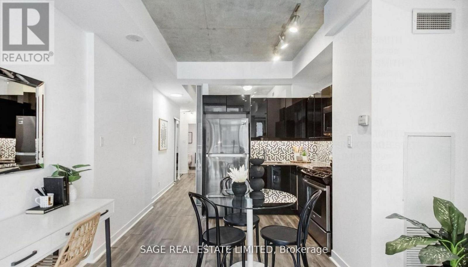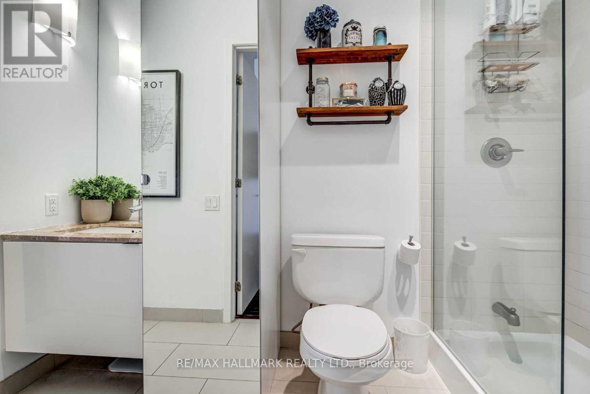 Stunning loft style 1-bedroom plus den with over 750 sq. ft. of upgraded living space with high ceilings, hardwood floors, and granite countertops. The kitchen features a large island, perfect for cooking or casual dining, and top-of-the-line stainless steel appliances. Enjoy an enviable south-facing view directly into the Distillery District, known for its charming Victorian architecture and cobblestone streets. Step outside and find yourself in one of Toronto's most vibrant and sought-after neighbourhoods. The Distillery District offers a pedestrian-only area filled with art galleries, boutique shops, trendy restaurants, and lively bars. Whether you're exploring local art, enjoying a meal at an upscale eatery, or relaxing in one of the many cafes, everything you need is right at your doorstep.This rare unit provides the perfect combination of modern comfort and a dynamic cultural scene, all in one of the best locations in the city. Dont miss out on this exceptional opportunity! (id:64974)