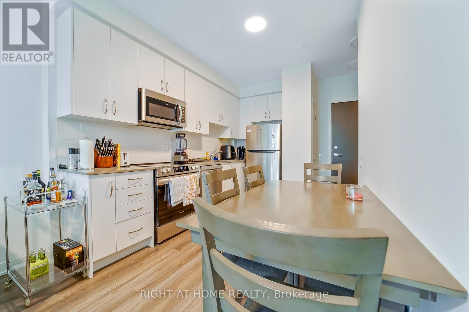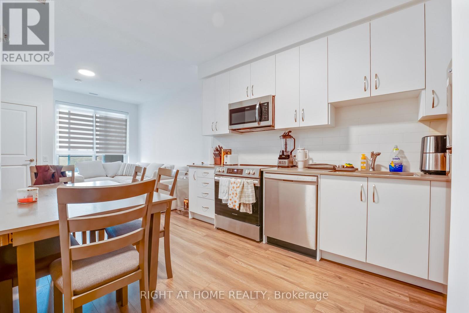 Attn first time buyer's and investors. Amazing unit with an unobstructed golf course view and an excellent layout can be yours to enjoy. Welcome to Charing Cross Condos an ultra modern boutique style residence perfectly situated alongside Kedron Dells Golf Club. The suite offers 9-ft ceilings, premium laminate floorings throughout, modern kitchen with quartz countertops, ceramic backsplash and stainless steel appliances, good sized living room with walk out to balcony and a large bedroom with closet and a Juliette balcony. Enjoy the convenience of ensuite laundry, underground parking and storage locker. Ideal location with quick access to Hwy 407, minutes to Hwy 401and close to big box stores, coffee shops, restaurants, schools, Ontario Tech University, Durham college and golf. EV charging stations on-site. Children's play area and park for residents to enjoy. (id:64974)