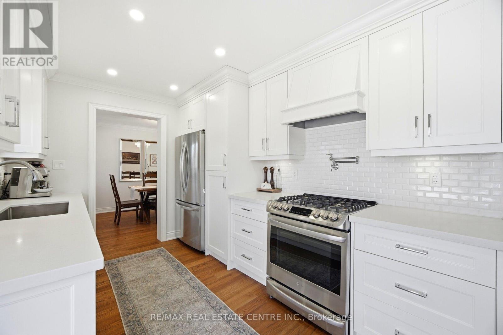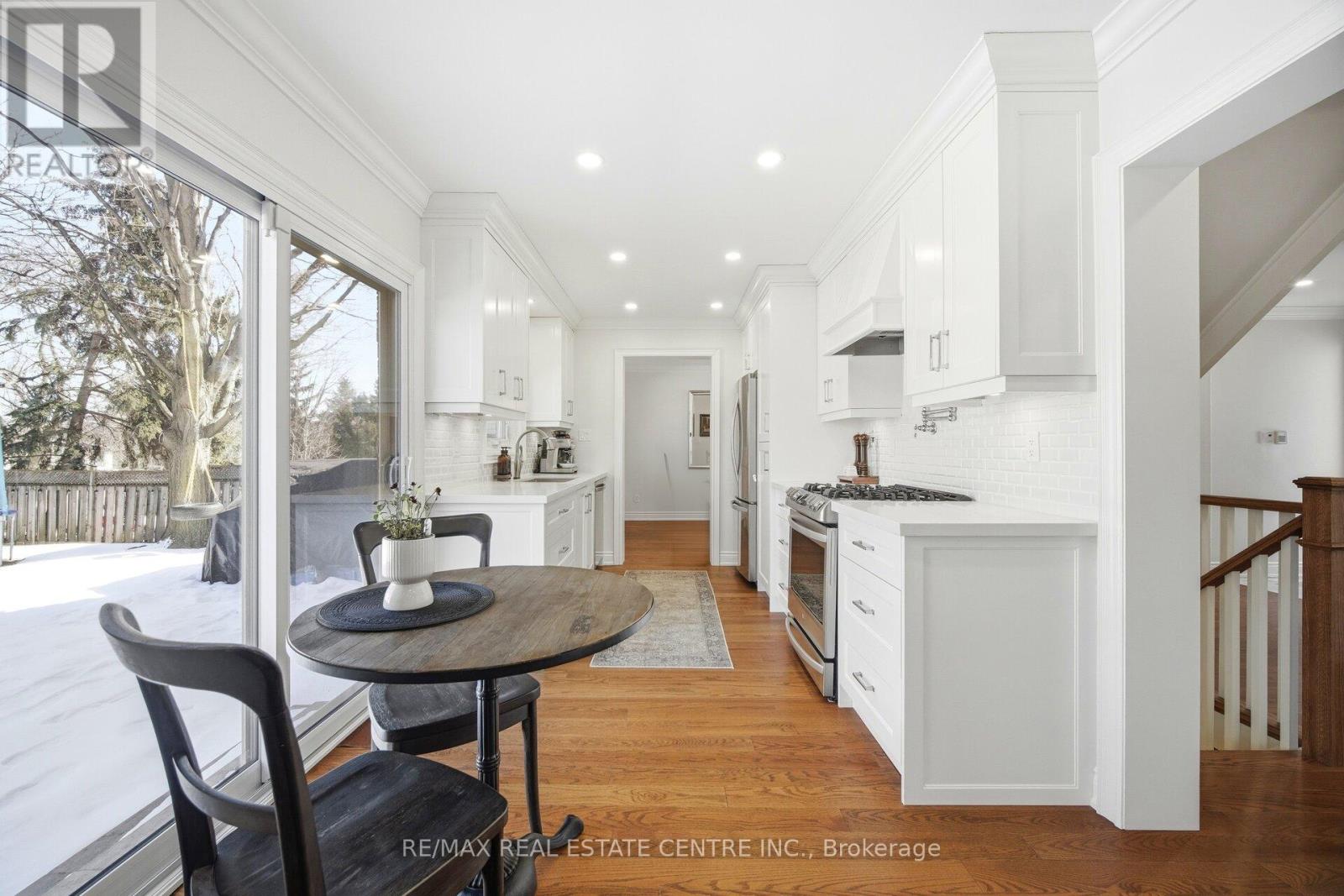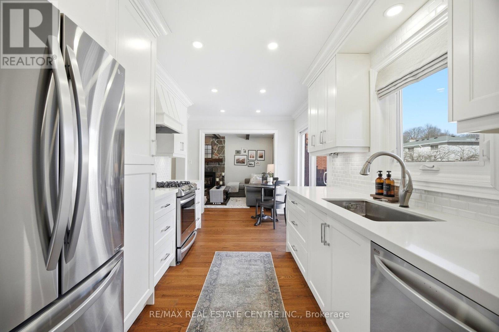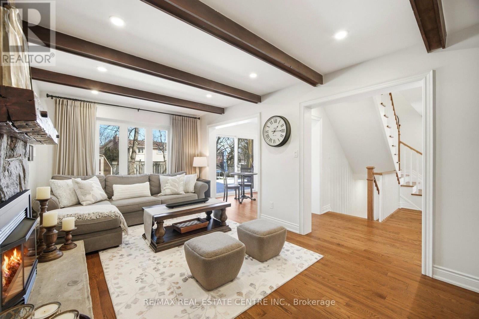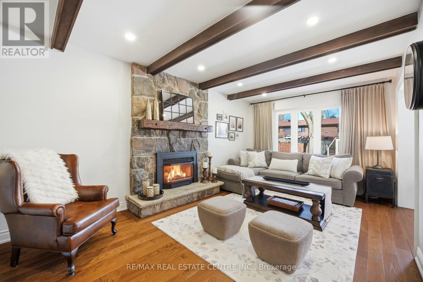 Nestled on a quiet street in the prestigious community known as Rockwood Village, 4253 Marblethorne Crt. is a must see. One of Mississauga's most desirable east-end neighbourhoods this beautifully re-imagined 4 Bedroom/Detached home showcases a complete, top-to-bottom renovation with exceptional attention to detail. Every element of the home has been thoughtfully updated to offer refined style & modern comfort. The designer kitchen features quartz counter-tops, S/S Appliances, seamlessly opening to the inviting family room with rich hardwood floors, a striking stone gas fireplace, an elegant beamed ceiling, & custom built cabinetry. In conjunction with a bright and spacious living/dining Rm combination, the main floor creates a warm yet sophisticated atmosphere where quality meets functionality. The second floor offers an elegant & inviting retreat, featuring 4 beautifully appointed bedrooms designed for comfort and relaxation. Each room provides generous space & natural light, creating a warm and cozy atmosphere throughout. The serene primary suite serves as a private haven, complete with a stunning three-piece en-suite & W/I Closet. The finished basement offers a versatile extension of the home, featuring a spacious rec room along with a dedicated playroom & 2-pc en-suite. With ample room & flexible layout options, there is obvious potential to create a fifth bedroom, making this lower level both practical and full of possibility. Outdoors, a private backyard sanctuary awaits, framed by mature trees and professional landscaping. This family friendly community is known for its great parks, the Etobicoke Creek Trail system, top-rated schools, everyday amenities just moments away, along with a short drive to HWY 401/403/427/410 & the DIXIE GO. If you are looking for a home, where neighbours connect, children thrive, & families grow... 4253 Marblethorne Crt. may be the home for you. (id:64974)