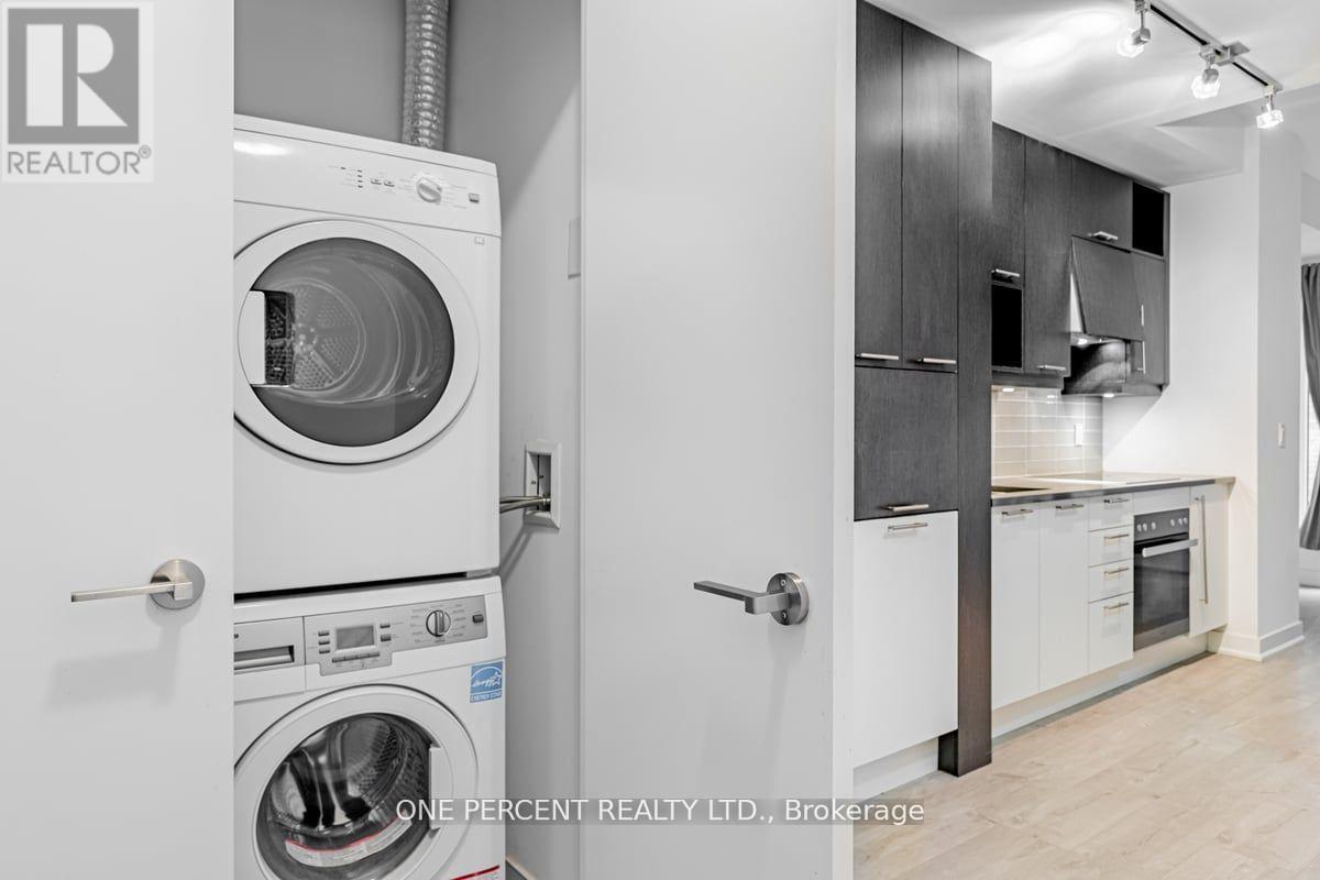 Do not miss this immediate possession 641 square-feet 1 bedroom + 1 den condo plus a balcony and one locker at the heart of the Financial District and the Entertainment District in the Downtown Toronto, and minutes to the Osgoode and the St. Andrew Subway Stations on the University Avenue. The condo is located close to the University of Toronto (St. George Downtown Campus), the OCAD University, schools, downtown hospitals, and restaurants. Groceries can be found at Rabba Fine Foods near the corner, Tim Horton is nearby, Rexall is at the next corner, Shangri-La Hotel is steps away, Canadian Tire and Eaton Centre are within walking distance. Neighborhood is Queen West and nearby neighborhoods include the Core, the Queen's Park, the Grange Park, the Chinatown, and the City Place. Lived by the owner since the condo was built. The den can hold a single/ twin/ bunk bed or can be used as a study room. Condo unit upgrades include ceilings, kitchen backsplash, kitchen countertop, and custom quality windows curtains. Modern kitchen with top-of-the-line appliances including ensuite Bloomberg front load washer and dryer, cabinets, high-end Miele built-in appliances including refrigerator/ freezer, stove/cooktop, dishwasher, oven, and a range hood. Easy access to elevators and quick walkable up and down stairs between the condo unit and ground level. Level 6 common areas include the state-of-the-art gymnasium, yoga room, sauna rooms, lounge, dining room w/kitchen, media/ party rooms, billiard room, a rooftop terrace with BBQ, seating areas, and an outdoor hot tub, and Level 3 common areas include rooftop gardens. Premium amenities include 24/7 security/concierge, security system, lobby areas, locker room, bike storage, parcel port smart lockers, fiber stream Internet, guest suites, and visitor parking. (id:64974)