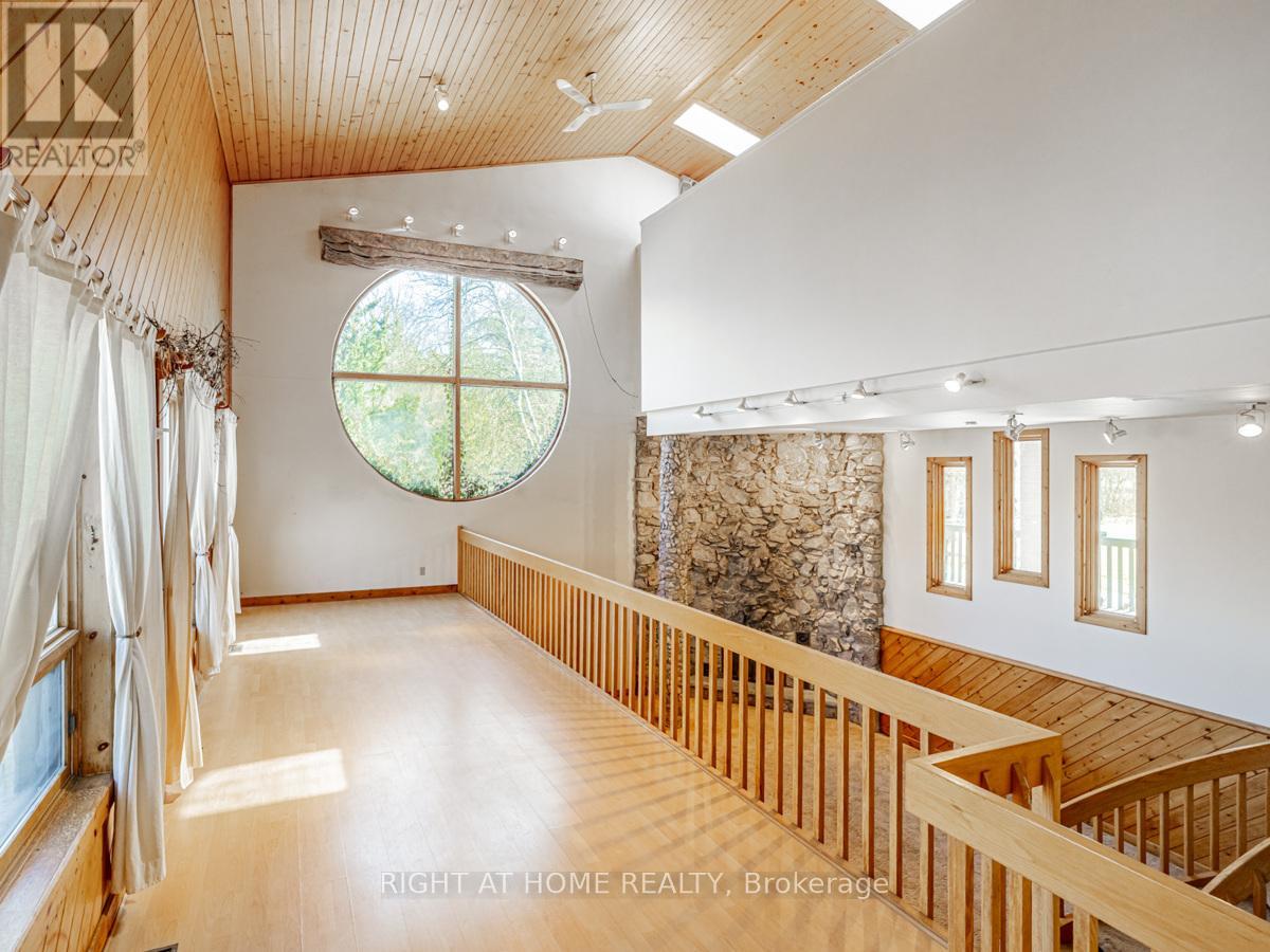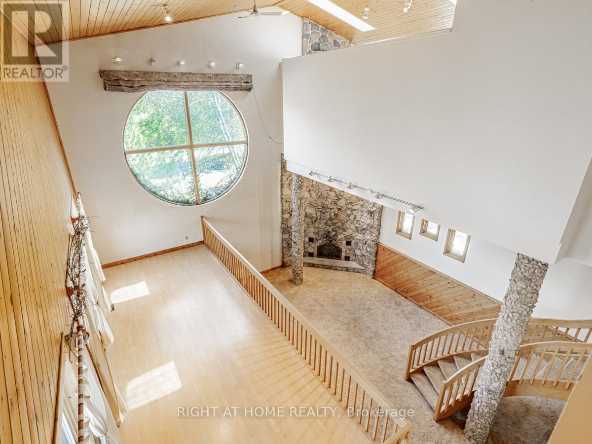 Nestled and tucked away, this 5 acre estate home is over 5000 sq feet and surely to impress. Complete privacy invites you to feel like you are away at the cottage, when you are only 7 min to Hwy 404. There is a large heated workshop with 4 stalls ideal for those looking for an equestrian focused property or a cottage feel near the city with an oil furnace. The home has 4 spacious bedrooms including one bedroom with walkout to stunning sun room to enjoy your morning cup of coffee or take in the beauty that surrounds you. Gourmet kitchen with built in appliances, breakfast room combined with mezzanine dining perfect for entertaining. Great room with adjacent room that can be used as another bedroom or office. Plenty of natural light throughout the home. Large swimming pool to enjoy summer days. 4 wood fireplaces to keep you warm in the colder months. High efficiency boiler. Primary bedroom features 4 pc ensuite with steam shower built in. Finished basement with den, common room, and 2 additional bedrooms. Plenty of storage space throughout. The property comes with a self contained coach house needing finishing touches, perfect for nanny quarters or income potential. (id:64974)