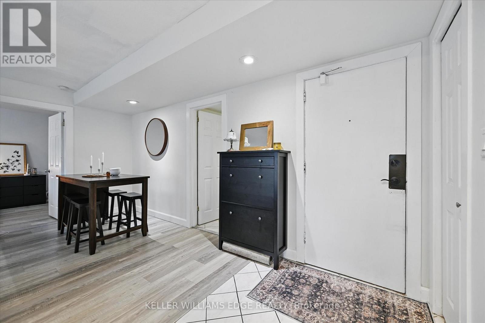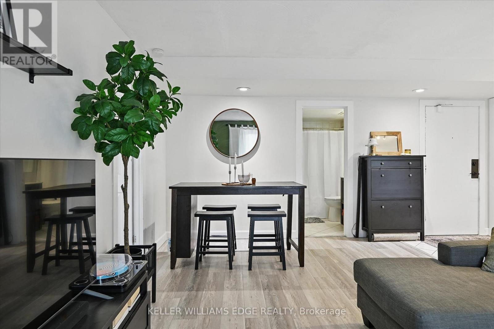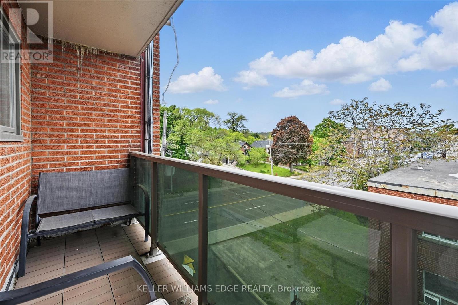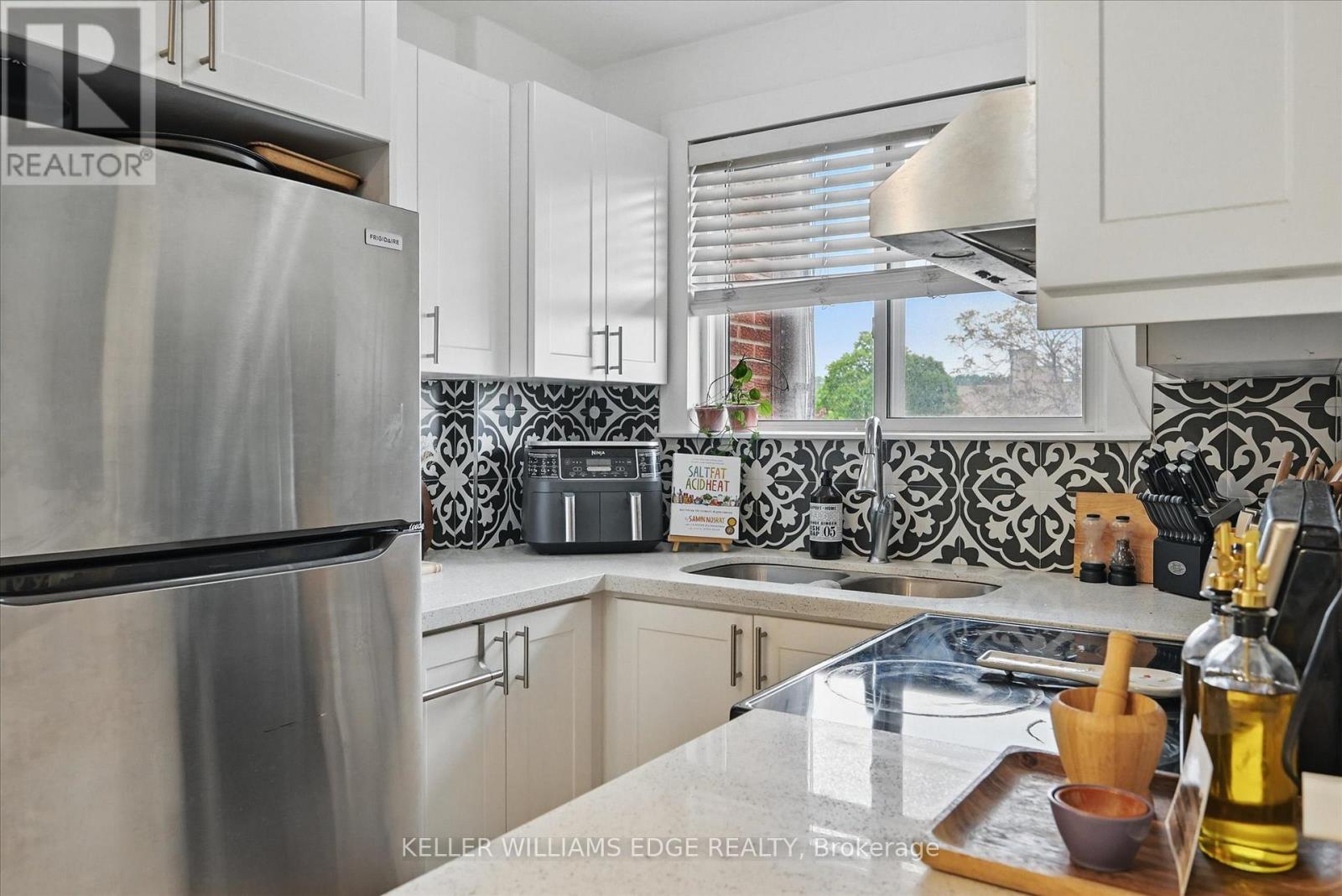 Welcome to this bright and stylish 1-bedroom, 1-bathroom condo offering 618 square feet of comfortable, well-designed living space on the forth floor of a quiet and well-maintained building in East Hamilton. The modern kitchen features quartz countertops, a double undermount sink, and a convenient breakfast bar, seamlessly opening into the living area. From here, step out onto your private balcony-an ideal spot to enjoy your morning coffee or unwind while taking in the evening sunset. The generously sized bedroom and windows provide an abundance of natural light throughout. Additional features include secure building entry, elevator access, low monthly condo fees, a clean and well-kept on-site laundry room, one dedicated parking space, and a storage locker conveniently located just steps from the unit. The building is surrounded by mature trees and green space, with plenty of visitor parking available. Located just minutes from the Red Hill Valley Parkway, the Lincoln Alexander Parkway, and the QEW, this location is ideal for commuters. Outdoor enthusiasts will appreciate the close proximity to Red Hill Bowl Park and direct access to the Red Hill Valley Trail, providing easy opportunities to enjoy nature close to home. A fantastic opportunity for first-time buyers, downsizers, or anyone seeking move-in-ready, low-maintenance living in a connected and welcoming neighbourhood. (id:64974)