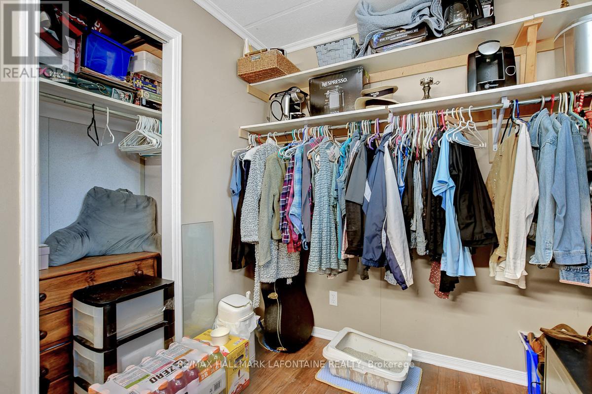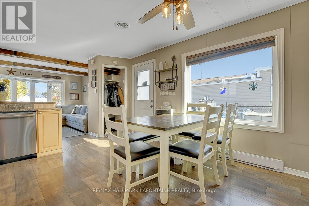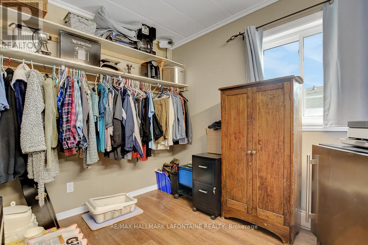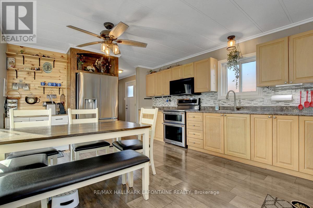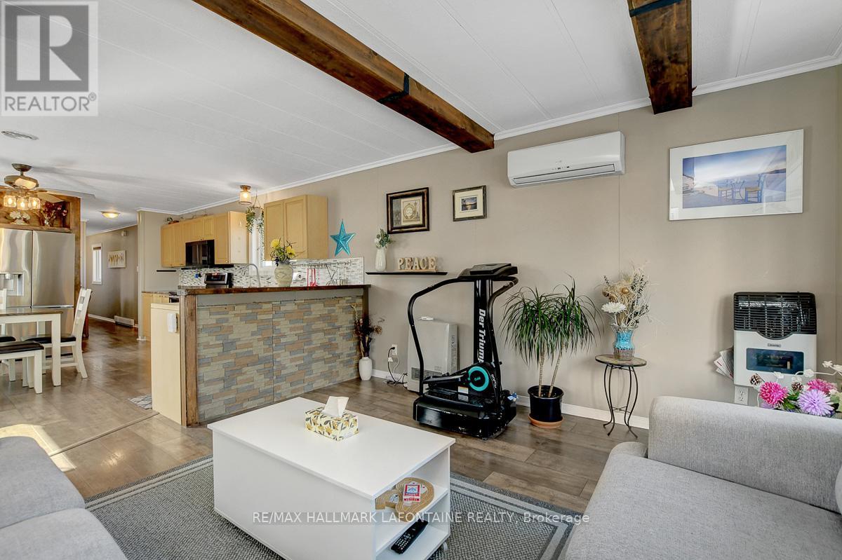 Beautifully updated home on one of the largest lots in the park! This home is a manufactured home built in 1988 and not a mobile home. Great room features a bright spacious lounging area with open kitchen featuring lots of counter area. Coffee bar and undercounted lighting add to the space. There is room for a table or even an island if you prefer. Two good sized bedrooms. Large laundry room with storage, converted from the third bedroom which could easily be converted back. Big traditional bathroom with closet. No carpet in the home. All appliances come with the home including the Weber BBQ! There are two wall mounted air conditioning units for those hot summer days. Two propane furnaces with fans and two back ups in case the power goes out! Out back is a 20'x12' workshop/storage shed that is insulated and has power. The yard is fully fenced with a double gate at the front and also some raised garden beds. Lots of updates since 2021 include: Owned hot water tank 2025, laundry room with storage conversion 2025, kitchen updates 2024, freshly painted 2024, 8'x8' and metal shed 2024. In 2018 the shingles were replaced with the 40 year architectural ones. 220 amp service. Parking for three cars. Public transit and the 174 are close by. Monthly Park fee of $386 which includes park maintenance, garbage pick up, snow removal, grass cutting and water/sewer. Hydro was $1600 and Propane was $450 in 2025. Lots to like about this package! (id:64974)
