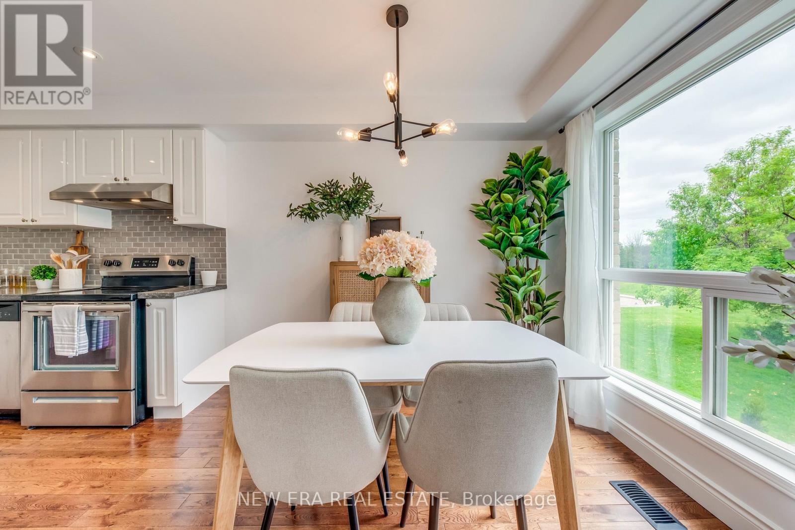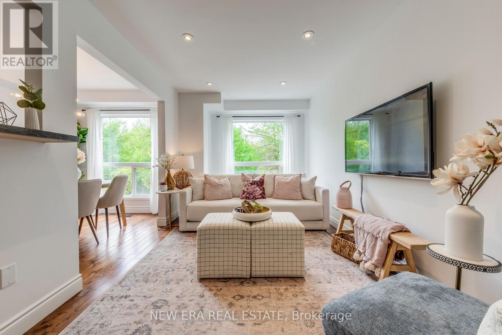 Welcome to this stunning end-unit townhouse situated on a premium ravine lot. This property is located in the desirable Meadowvale Village conveniently located close to all amenities, parks, walking trails, Meadowvale Conservation, Hwy 401, 407, public transit, Meadowvale GO, and minutes to Heartland Town Centre. This two-storey, newly renovated home has been beautifully updated and is in a family-friendly peaceful neighbourhood backing onto Levi Creek. The main floor open-concept design features a modern kitchen with quartz countertops, breakfast bar, and stainless steel appliances. The main living and dining area features hardwood floors, smooth ceilings, pot lights, modern light fixtures and large windows providing an abundance of natural light. This 3 bedroom, 3 bathroom home has a spacious second floor with 6" engineered oak hardwood flooring throughout, custom oak staircase with wrought iron pickets, and custom built-in closets are just a few of this home's incredible features. The spacious primary bedroom feels like a true retreat with a walk-in closet and a 2nd custom closet for ample storage, a spa-like ensuite with an oversized shower with rain-fall shower head. The other two bedrooms boast a generous size and custom closets. The basement is finished with a built-in wet bar, mini fridge, and plenty of storage. Walk-out access to an expansive, private backyard with a large stone patio area and gas line for BBQ. The picturesque views and privacy of this property makes this home spectacular for entertaining. Very low maintenance fees include lawn maintenance, snow removal, common areas, parking and insurance. A/C & Humidifier ('24), Newer furnace, Energy Efficient refrigerator ('24) (id:64974)