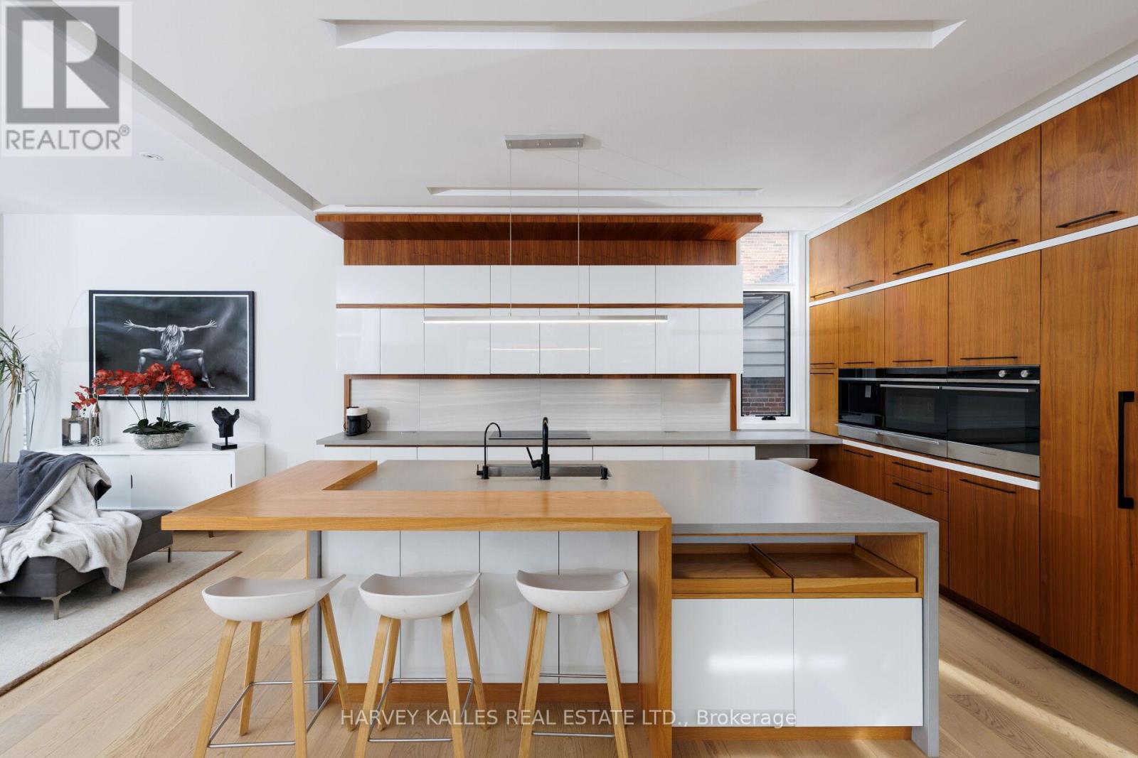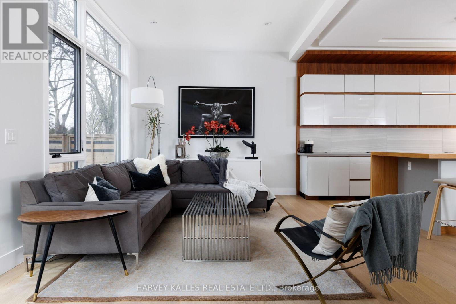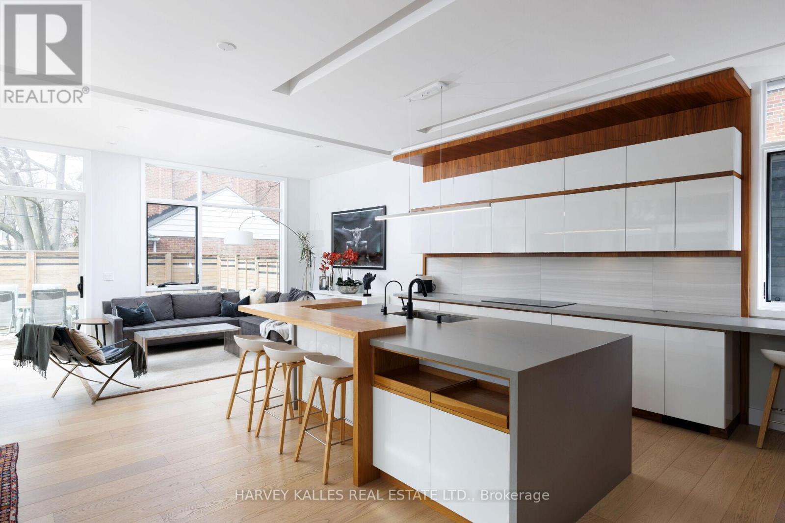 David Small Designs Newly built custom modern home in prime Sunnylea community, nestled within natural canopy and captivating walkways and tree lined streets .. an oasis of calm, peace and quiet mere steps to parks and walking trails, exceptional public and catholic schools and the hustle bustle of Shops on the Kingsway on Bloor West. Preferred 4+1 Bedrooms with 5 Bathrooms crafted in a stunning modern aesthetic designed for the discriminating buyer. 6 car parking with attached 2 car heated garage, fully fenced yard with landscaping, and nearly 5,000 square feet of fully finished living space across 3 levels. Light filled architecture design with multiple corner windows, art gallery style 2nd floor foyer area and generous room sizes throughout. Open concept family room with gas fireplace overlooking modern kitchen with eat in counter top space and formal dining room, with den office and large laundry room completing the main level with finished carpentry and foyer shelving. Lower level features a large multiple purpose recreational room with finished shelving and cabinetry with 5th bedroom featuring walk in closet and ensuite private bath, and enclosed work crafts room. Finished home throughout with exceptional storage design. Designed and built by one of Toronto's most accomplished builders and a truly beautiful, nuanced design. (id:64974)