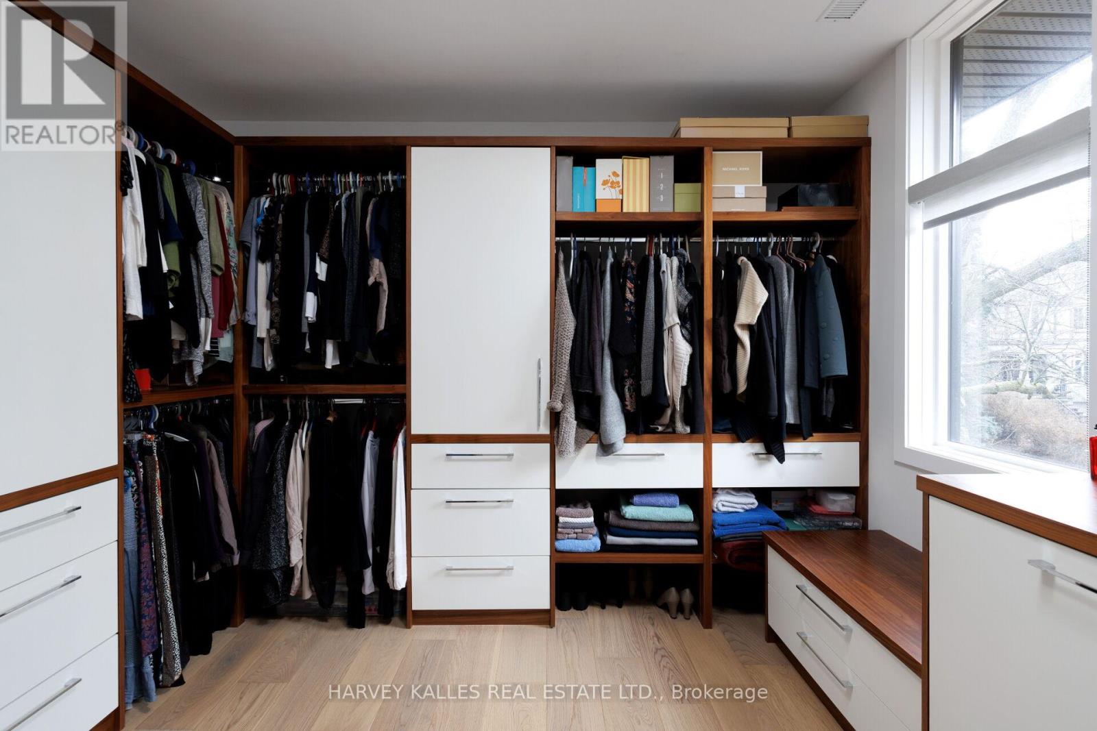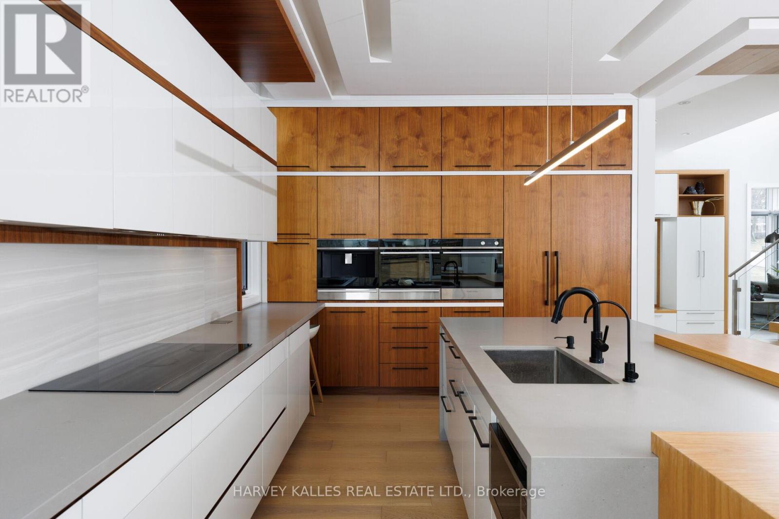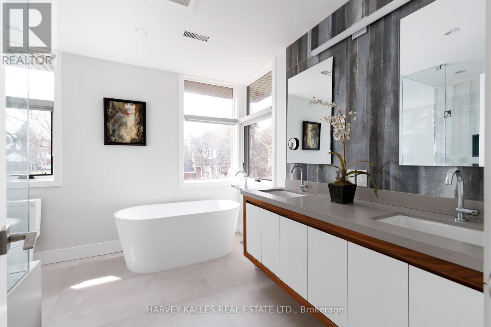David Small Designs Newly built custom modern home in prime Sunnylea community, nestled within natural canopy and captivating walkways and tree lined streets .. an oasis of calm, peace and quiet mere steps to parks and walking trails, exceptional public and catholic schools and the hustle bustle of Shops on the Kingsway on Bloor West. Preferred 4+1 Bedrooms with 5 Bathrooms crafted in a stunning modern aesthetic designed for the discriminating buyer. 6 car parking with attached 2 car heated garage, fully fenced yard with landscaping, and nearly 5,000 square feet of fully finished living space across 3 levels. Light filled architecture design with multiple corner windows, art gallery style 2nd floor foyer area and generous room sizes throughout. Open concept family room with gas fireplace overlooking modern kitchen with eat in counter top space and formal dining room, with den office and large laundry room completing the main level with finished carpentry and foyer shelving. Lower level features a large multiple purpose recreational room with finished shelving and cabinetry with 5th bedroom featuring walk in closet and ensuite private bath, and enclosed work crafts room. Finished home throughout with exceptional storage design. Designed and built by one of Toronto's most accomplished builders and a truly beautiful, nuanced design. (id:64974)