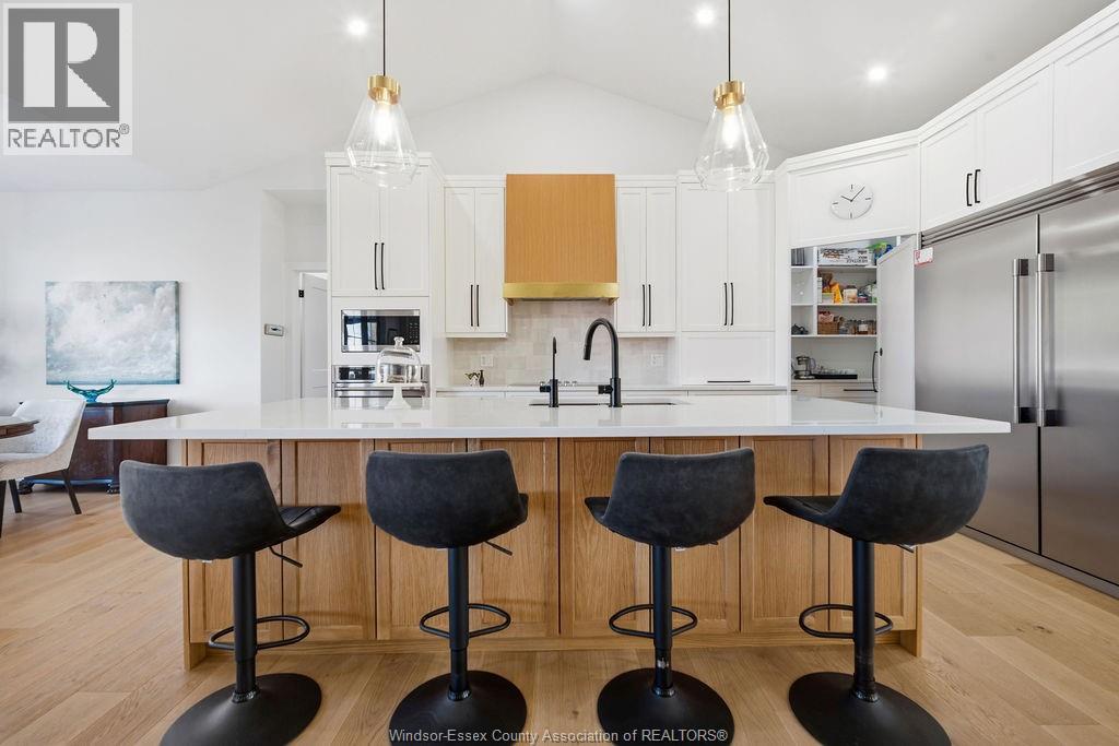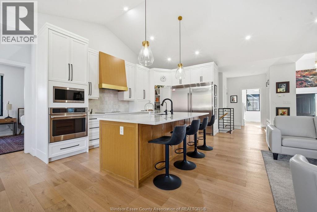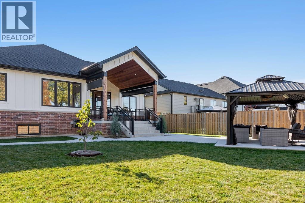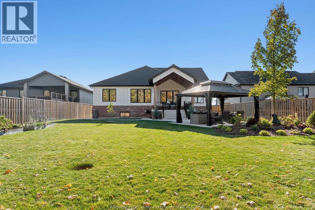 5 bedroom executive ranch in the heart of Essex County within the municipality of Kingsville. Experience the perfect blend of small-town serenity and high end modern design in this 5 yr young custom ranch. Spanning approx 1900 sq ft of main floor luxury, this home is defined by its black windows, custom mill work and warm wide plank wood floors. Designed for accessibility and ease, this home features main-floor laundry and a specialized Bruno lift in the garage. The primary level offers 3 spacious bedrooms, while the finished lower level provides 2 additional bedrooms, perfect for a secluded home office or guest wing. With 170ft deep lot the backyard offers an outdoor oasis with a covered back porch and a massive, meticulously landscaped yard featuring a private gazebo. Situated halfway between the Town of Kingsville and Windsor with immediate access to Highway 3, you are minutes from world-class wineries, the new EV Battery Plant, and the US border, all while enjoying the unmatched quiet of Cottam. (id:64974)
