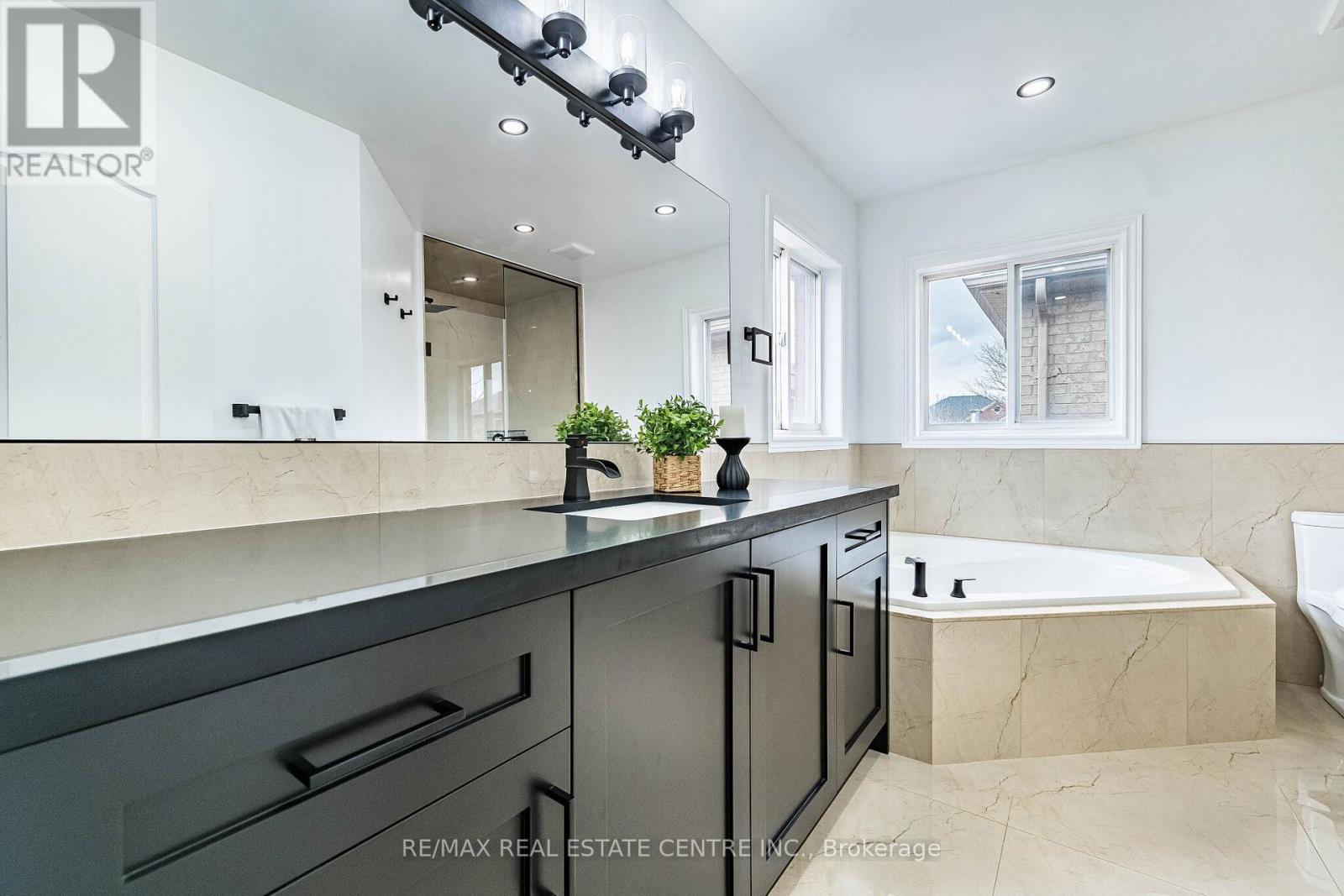 Welcome to 43 Briarcroft Rd!! This beautifully upgraded detached 2-storey home is located in the highly desirable Fletchers Meadow community of Brampton. Offering 2,154 sq ft (not including basement) of thoughtfully designed living space, this home showcases extensive renovations and quality finishes throughout. From the moment you enter, you're greeted by elegant granite flooring in the foyer, kitchen, and powder room, complemented by rich oak hardwood flooring across the main level, second-floor hallway, and all bedrooms. The modern kitchen features quartz countertops, a sleek glass backsplash, and stainless steel appliances-perfect for both everyday living and entertaining. Additional highlights on the main floor include: open to above ceiling in the living room area, pot lights throughout, wiring completed for home theatre system in family area, California shutters, and a stunning upgraded staircase that adds to the home's refined feel. Upstairs, the spacious primary bedroom offers a beautifully renovated ensuite complete with quartz countertops, 24x24 porcelain tile, and a rain shower for a spa-like experience. The main bathroom is equally impressive, finished with a marble countertop and upscale details. The Second floor is completed by two additional generous sized bedrooms, laundry room, and access to a spacious balcony. The finished basement includes a full kitchen, providing excellent flexibility for extended family or potential in-law living along with a full bathroom featuring a stand-up shower. Step outside to a low-maintenance, fully concrete backyard with a gazebo included-ideal for relaxing and entertaining during the warmer months. Situated on a quiet, family-friendly street and conveniently located close to schools of all levels, grocery stores, and public transit. A true turn-key home offering style, comfort, and versatility. Move in and enjoy! (id:64974)