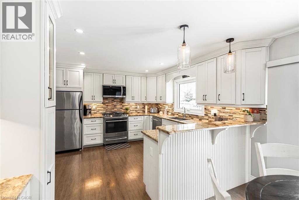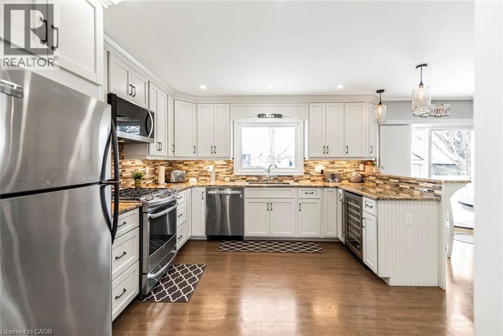 Lovely curb appeal awaits at 43 Buchanan Drive. Located in a quiet, south side neighbourhood, this 4 bedroom home is a delight. The main floor features a beautiful and bright eat in kitchen, including all appliances, even a wine fridge, sunken living room with wood burning fireplace and a separate dining room. A 2piece bath is featured here, along with inside entry from the garage. Patio doors off the kitchen welcome you to a lovely landscaped rear yard with a patio built for entertaining, including a natural gas hook up for your bbq. The upper level features, the main bath and 4 good sized bedrooms- the main bedroom offers double closets and a large ensuite bath. The lower level is partially finished with a rec room and loads of storage and a convenient 2 piece bath. The laundry room is also on the lower level. Notable items: The driveway and curbs were completed in 2022. Air conditioner replaced in 2023. Shingles replaced in 2022. Washer and dryer, both new within the last year. (id:64974)
