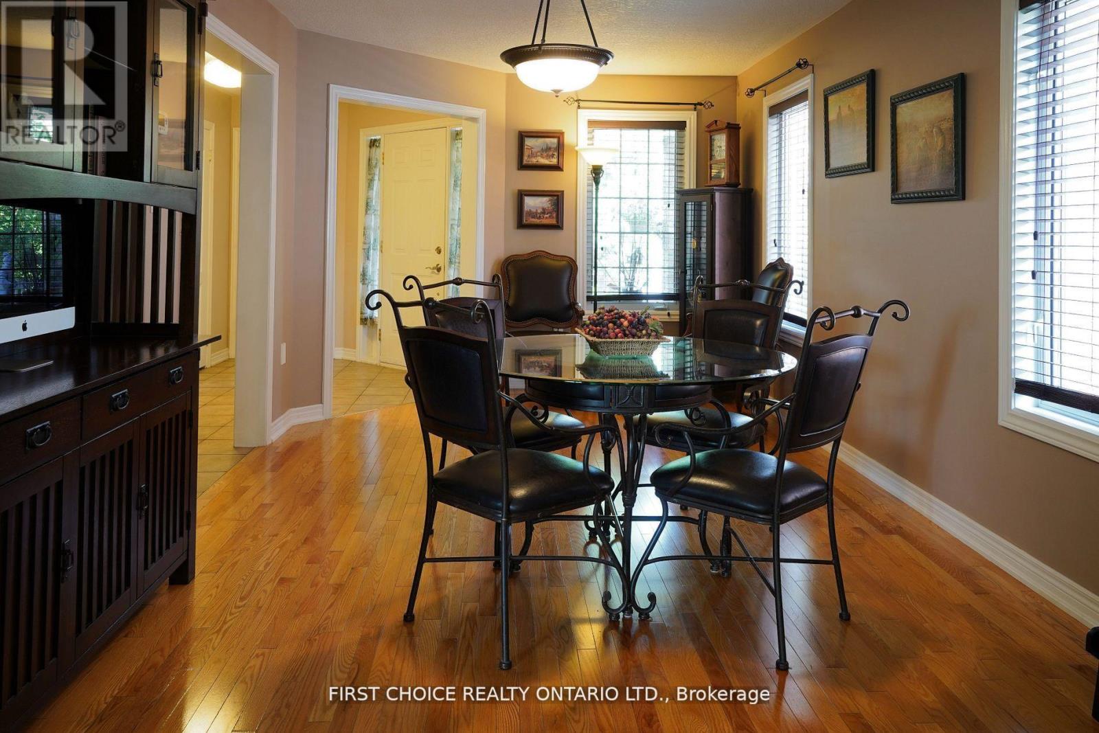 Room to grow for your family. All brick, 1670 sq ft, home with an actual double garage & double drive. Tastefully finished with designer colors. Newly painted kitchen with upgraded hardware, plus ceramic floors. The separate living and dining rooms feature gleaming Oak hardwood (not laminate). New ELF in bathrooms. Large Primary features a full ensuite, large walk-in closet. Soak away your stress in the Whirlpool tub. Enjoy family time in the spacious, fenced yard, perfect for kids and pets, with a slab patio, trellis, and mature greenery. Mechanically cared for with newer shingles (2018), garage door openers, and annual appliance maintenance, 4 new window cells, newer sump pump. The unspoiled basement features mechanicals fit into one corner, affording more efficient use for future rec room, etc. The spacious Cantina will accommodate your spirits and preserves. This home is a short stroll to schools, parks, and downtown Alliston shopping, pharmacy, library, theater, and dining & a short drive to Stevenson Memorial Hospital and commute corridors, hwy 400, 27 & 50. All on a friendly, family street with minimal. Freshly painted kitchen and 3rd bedroom. Note. Some of the foliage in the exterior images has been pruned down. Note: Certain wall colors have changed since listed (living and dining rooms are now neutral). (id:64974)