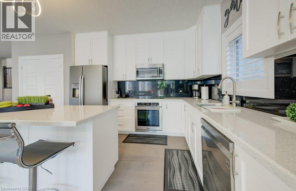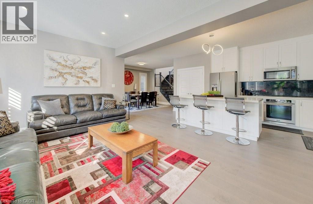 Welcome to Your Dream Home in Prestigious Kiwanis Park! Built in 2018 and located in one of Kitchener's most desirable neighbourhoods, this beautifully designed home offers an exceptional layout, premium finishes, and unbeatable access to both nature and city conveniences. A concrete driveway and striking curb appeal welcome you into a spacious front foyer, setting the tone for the impressive interior. The main floor features a sun-filled open-concept living space with a custom media wall and sleek gas fireplace—perfect for relaxing or entertaining. The modern kitchen is loaded with quartz countertops, stainless steel appliances, a pantry, and an oversized island with seating. A convenient 2-piece bath and main-floor laundry add ease to everyday living. Upstairs, enjoy a large family room—ideal for a playroom, media lounge, or home office. The primary suite is a true retreat, featuring a spacious walk-in closet and a luxurious 5-piece ensuite complete with a separate tiled shower with glass doors, a soaker tub, and a double vanity. Two additional bedrooms share their own spacious 5-piece bathroom, thoughtfully designed with a vanity and sink on each side, and a separate door leading to the toilet and shower area—ideal for shared use and added privacy. Step outside to a covered deck that extends your living space into the backyard—perfect for outdoor dining and lounging. The large unfinished basement offers endless potential for future development. All of this within walking distance to Kiwanis Park, scenic trails, expansive green spaces, and the Grand River. You're just minutes from both universities, Conestoga Mall, Highway 85, and with quick access to the 401. This is your chance to own a modern, move-in-ready home in one of Waterloo’s most family-friendly and nature-rich communities—don’t miss it! (id:64974)