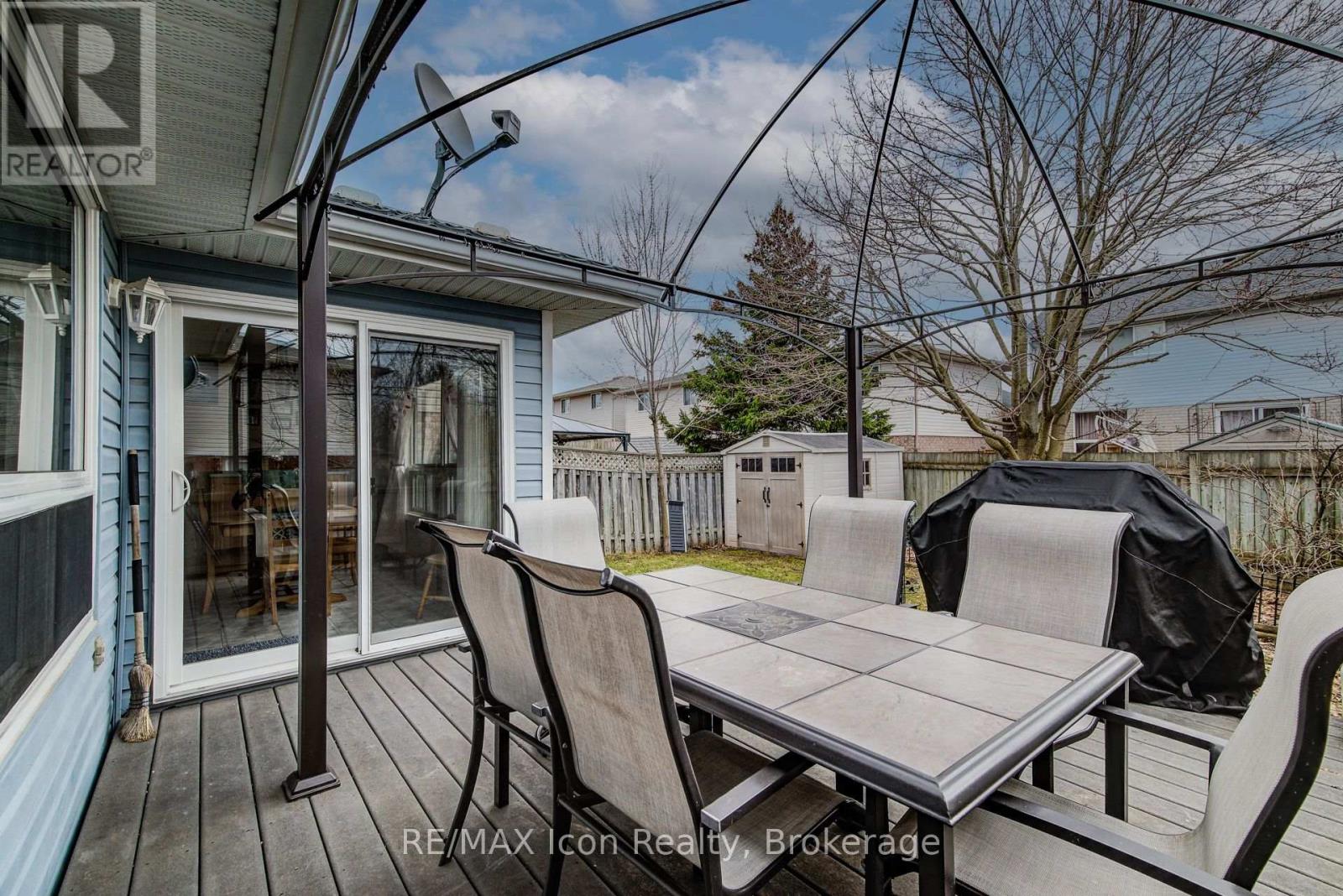 Welcome to this well-maintained move-in ready 2-storey home tucked on a sought-after family-friendly street in northeast Guelph. The main floor offers a bright and functional layout, featuring a spacious living area and a beautifully updated eat-in kitchen (2020) with modern finishes and direct access to a maintenance-free deck with gazebo - perfect for outdoor dining and relaxing in the fully fenced backyard. Upstairs, you'll find three well-sized bedrooms, including a relaxing primary suite complete with its own 3-piece ensuite, along with a full main bathroom. The finished lower level adds valuable living space with a bright rec room, a fourth bedroom, and an additional 3-piece bathroom - ideal for guests, teens, or a home office. Key updates include double-hung windows (2014), steel roof (2013), insulated garage door (2020), and updated flooring (2020). An ideal home offering space, flexibility, and a great location for growing families. (id:64974)