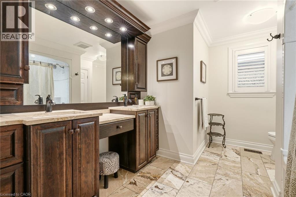 Nestled on the highly sought-after Stoney Creek Plateau, 43 Maple Drive is a warm and welcoming family home with beautiful views of the escarpment. Spanning a generous 2,642 square feet on the main level, the heart of the home is the bright open-concept kitchen and family room, featuring a sprawling island, plenty of pantry space, a built-in gas cooktop, wall oven, and modern stainless steel appliances — ideal for casual family meals and effortless entertaining. The main floor also includes formal living and dining rooms, a convenient two-piece bathroom, and a laundry room. The primary suite offers a peaceful retreat with a spacious walk-in closet and luxurious three-piece ensuite, while two additional bedrooms and a five-piece bathroom provide comfortable space for family or guests. The fully finished basement adds an additional 2,200 square feet of versatile living space, complete with two extra bedrooms, a three-piece bathroom, a gym, a large rec room with a wet bar, and a convenient walkout to the backyard. A workshop and ample storage complete the lower level. The lower level is ideally suited for conversion into a granny suite, making this home perfect for multi-generational living. Outside, you’ll appreciate the professional landscaping, stamped concrete driveway and walkways, and double-car garage with inside access. Just steps from John Santarelli Park and direct access to the Bruce Trail, this move-in-ready home sits on a quiet, tree-lined street and is only minutes from excellent schools, shopping, and highway access. If you’re looking for a spacious, comfortable, and warm home in one of Stoney Creek's most desirable neighbourhoods, this is it! (id:64974)