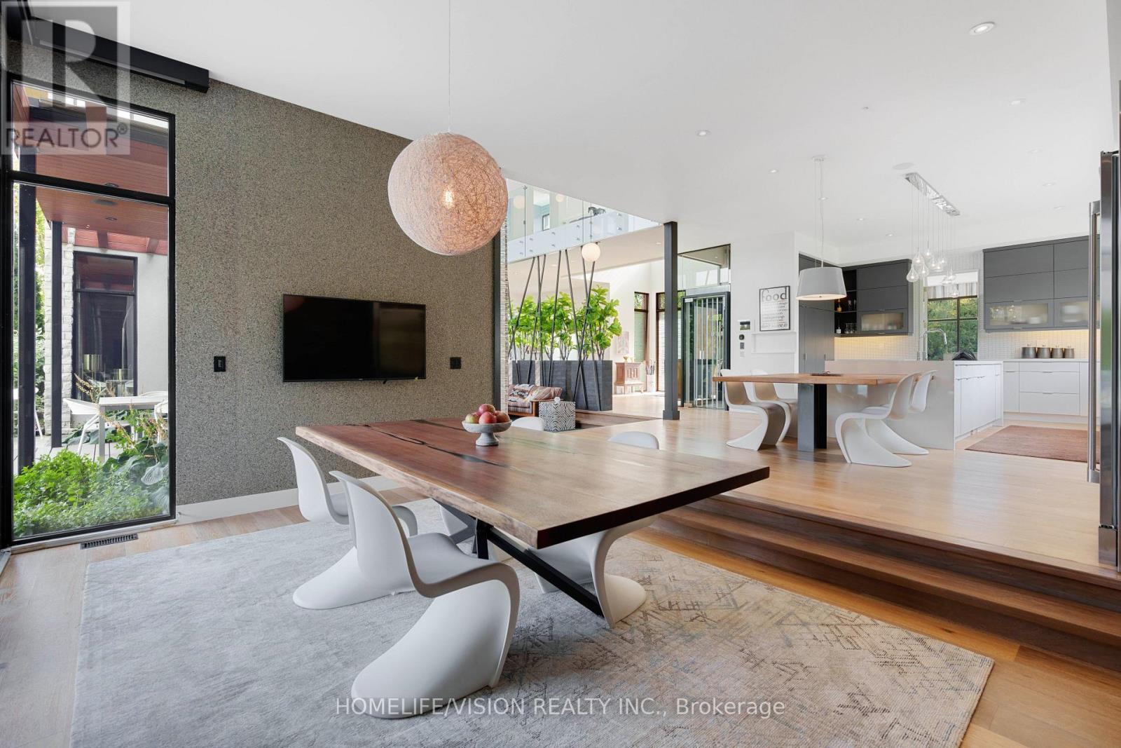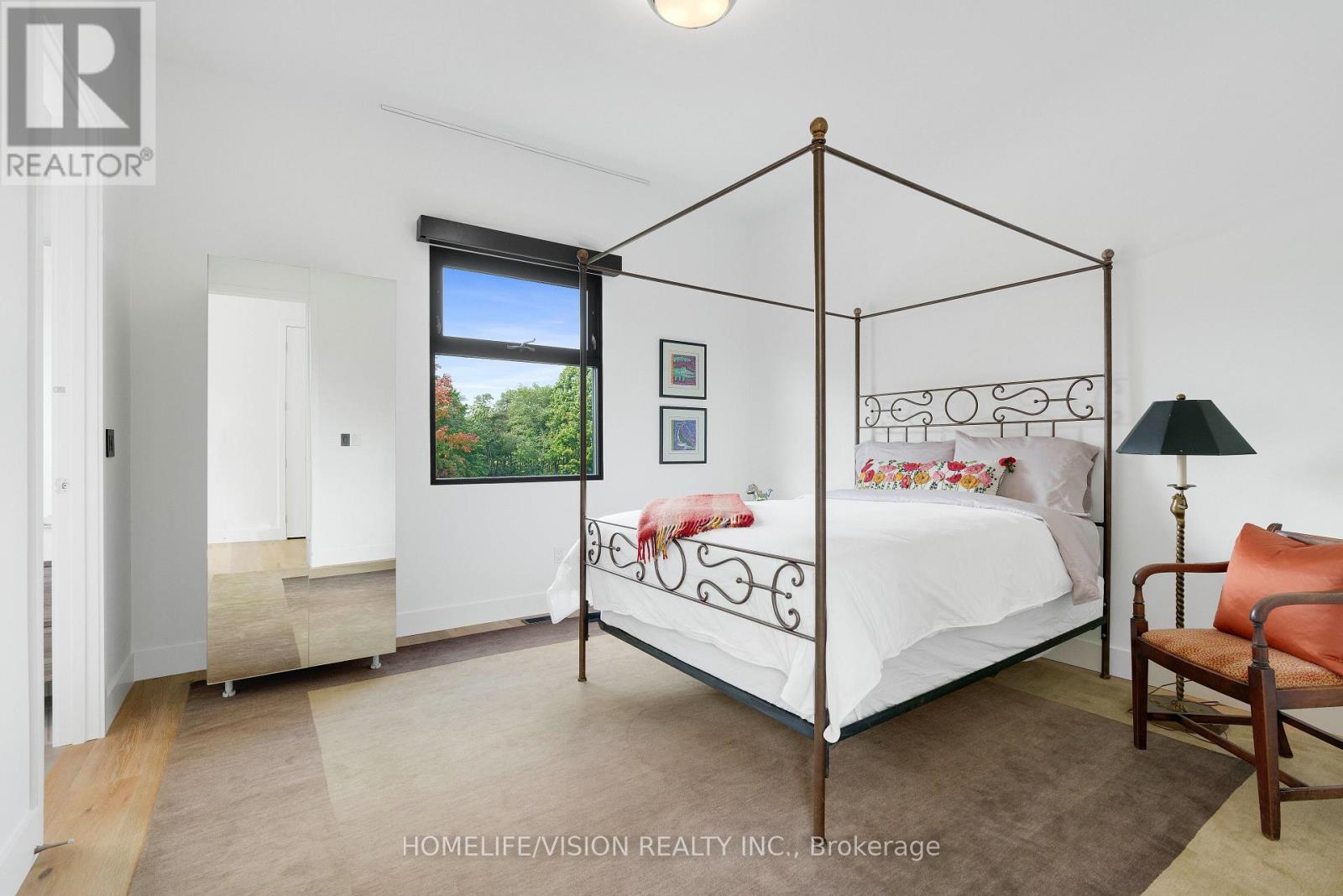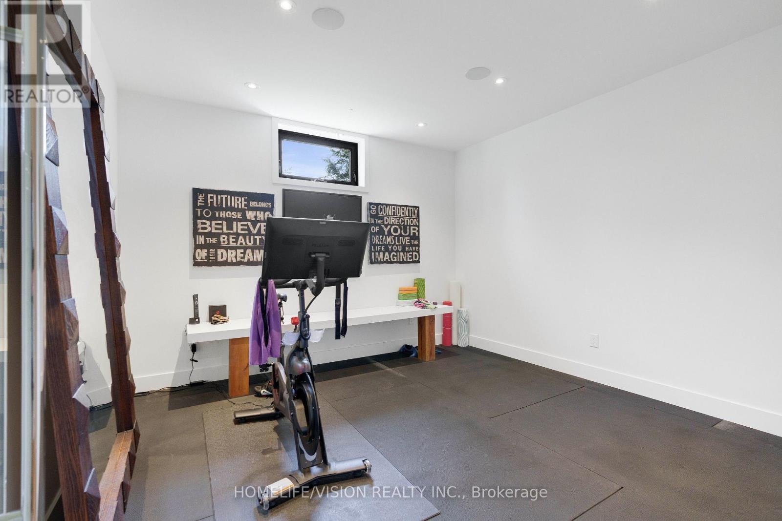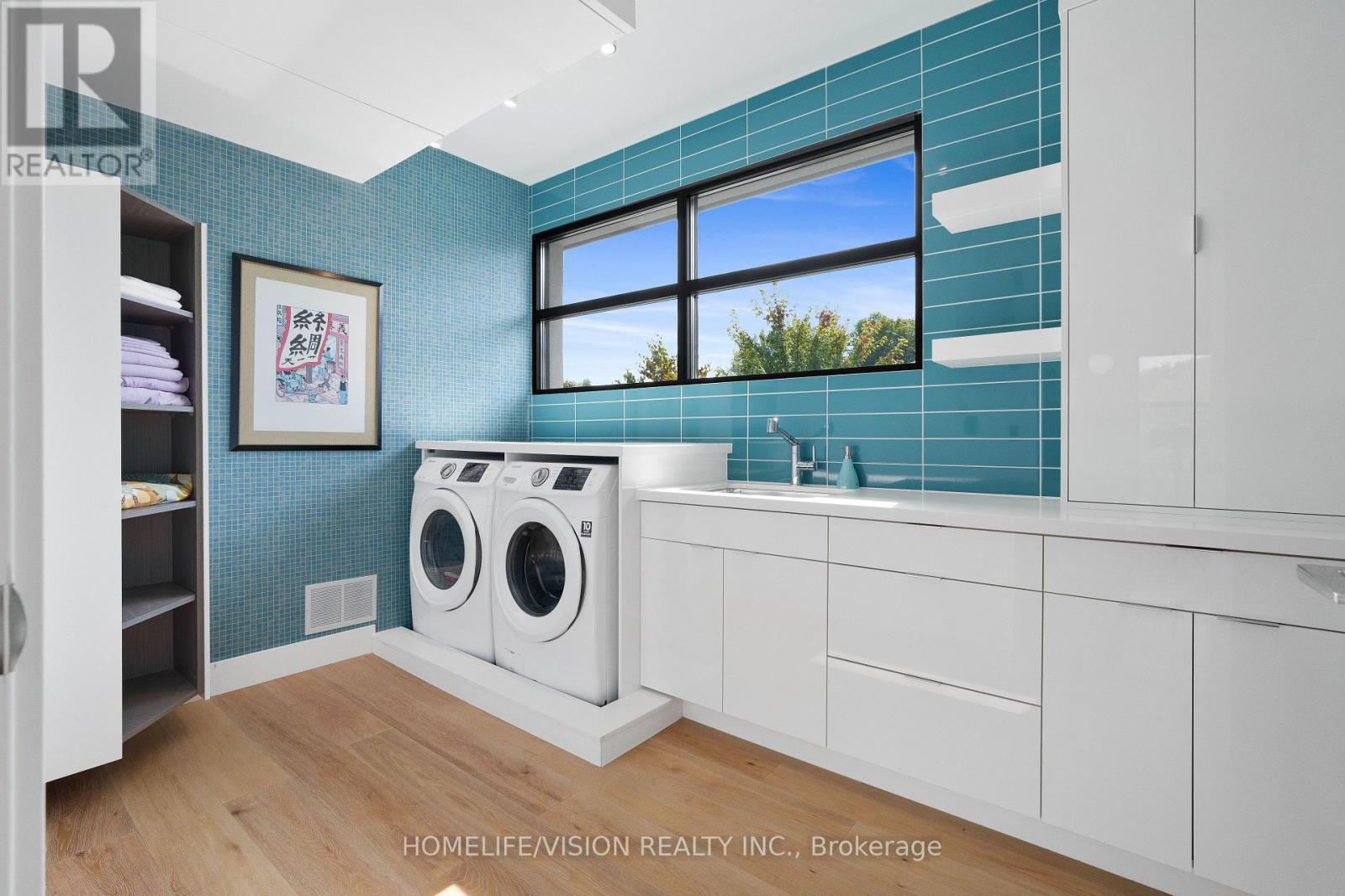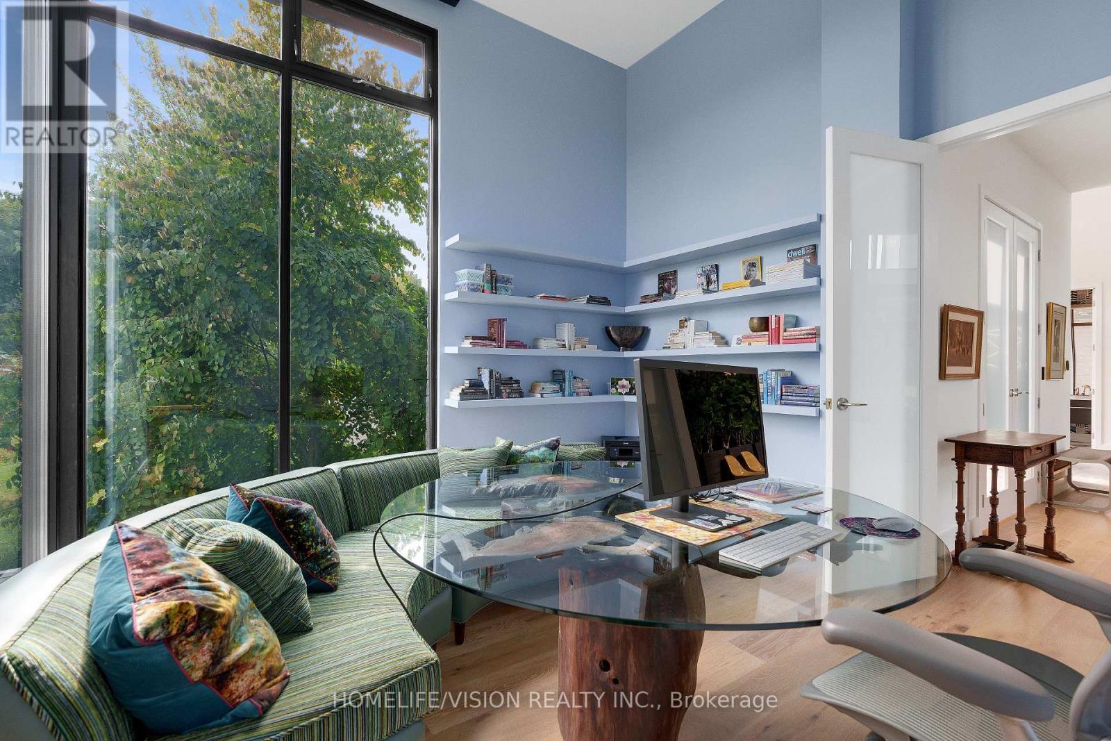 Experience luxury living at this breathtaking modern estate on 2 acres! Portions of interior masterfully designed by award winning interior designer Eric McClelland of Fleur-de-lis Interior Design Inc. The main floor boasts a contemporary kitchen with with custom cabinetry and eat in kitchen, sunken dining room with walkout to backyard, living room with floor to ceiling windows and walkout to patio, family room overlooking the garden with gas fireplace and a sun filled office with built in shelving. Master bedroom oasis with a balcony overlooking the backyard, custom built-in cabinetry and custom 6 piece ensuite with steam shower. All bedrooms have an ensuite and large windows. Meticulous maintained stone, stucco and cedar exterior with professionally landscaped gardens, outdoor saltwater pool, fire pit and cabana. Perfect for entertaining indoors and out. Spectacular basement with home theatre with full projection system, wine fridge, workout room, kitchenette and bar space. 5th bedroom in basement with custom cabinetry and ensuite as well. Elevator gives access to all floors. Dog wash station in mudroom with sink and built in cabinetry. Radiant floor heating through much of home. Automated shades in most rooms, custom lighting system with pot lights, Sonos sound system throughout! Exterior repainted and stained (2023), Outdoor decking (2023), Roof (2016), Windows (2016), A/C (2016), Furnace (2016), Sump pump (2017). (id:64974)