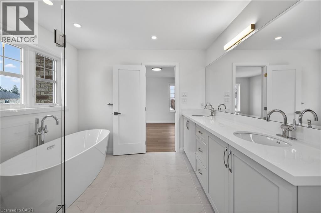 An exceptional opportunity awaits in Eden Park, a vibrant new community by award-winning builder Spallacci Homes. Ideally located on Hamilton’s highly desirable West Mountain, this thoughtfully planned neighborhood offers the perfect setting for young families — just steps from scenic parks, top-rated schools, walking trails, and a community recreation centre, with convenient highway access for an easy commute. This brand-new, sun-filled 4-bedroom home — The Lily model — offers approximately 2,400 sq. ft. of beautifully designed living space on a premium 35 ft. x 98 ft. lot. Crafted with Spallacci’s signature quality and attention to detail, this home seamlessly blends style and function to meet the needs of modern family life. The bright, open-concept main floor is ideal for both everyday living and entertaining. The chef-inspired eat-in kitchen features quartz countertops, an oversized island with an upgraded waterfall edge, premium appliances, and engineered hardwood flooring throughout. A separate main-floor den provides the perfect space for a home office, study area, or playroom, while the custom rear deck extends your living space outdoors — ideal for summer barbecues and family gatherings. Upstairs only gets better.. the spacious primary suite offers a private retreat complete with a spa-inspired 5-piece ensuite. Three additional generously sized bedrooms and a convenient upper-level laundry room provide the comfort and practicality every growing family needs. With $93,000 in professionally selected upgrades already included, along with an impressive collection of luxury standard features, this home is move-in ready and designed to grow with your family for years to come. Don’t miss your opportunity to settle into one of the Mountain’s most sought-after communities — where comfort, convenience, and community come together beautifully. (id:64974)