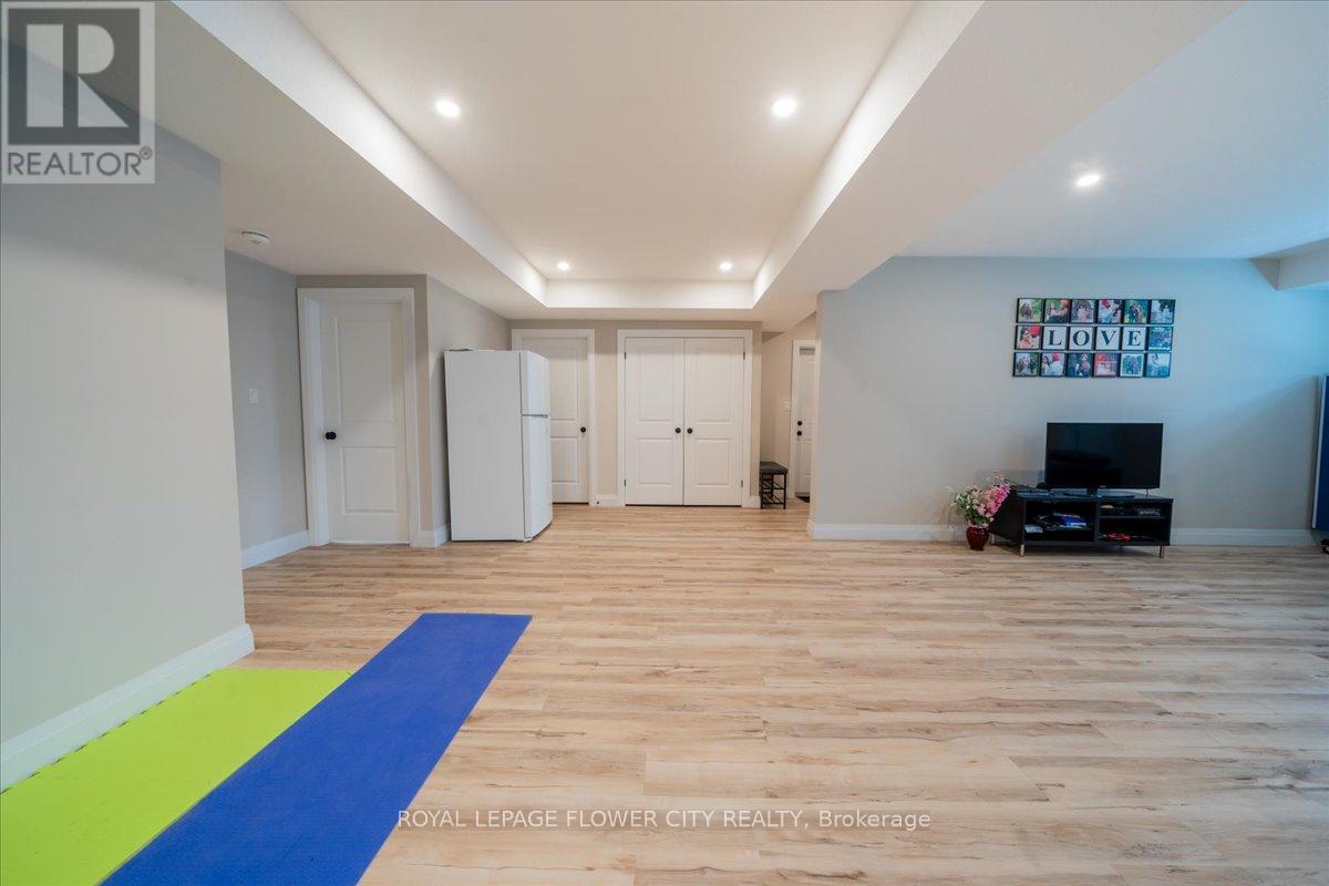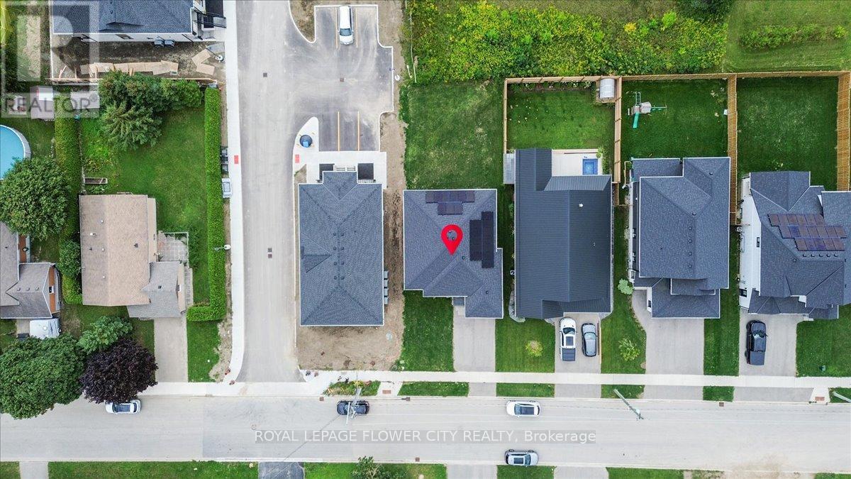 Charming 4-bedroom detached bungalow, featuring a warm and functional layout. The open-concept kitchen boasts granite countertops and stainless-steel appliances, flowing seamlessly into a bright and spacious great room highlighted by a built-in wall fireplace perfect for relaxing or entertaining. The main floor offers hardwood flooring throughout, a private primary bedroom with ensuite, an additional bedroom, and a full bathroom. Downstairs, the fully finished basement is flooded with natural light thanks to large windows and includes two extra bedrooms, a full bathroom, and a generous recreation room. With a separate entrance from the garage, there's excellent potential for an in-law suite. The basement is finished with durable plank laminate flooring. Set on a deep lot, this home also features solar panels to help lower hydro bills an eco-friendly and cost-saving bonus. A must-see property with versatility, charm, and smart upgrades. (id:64974)