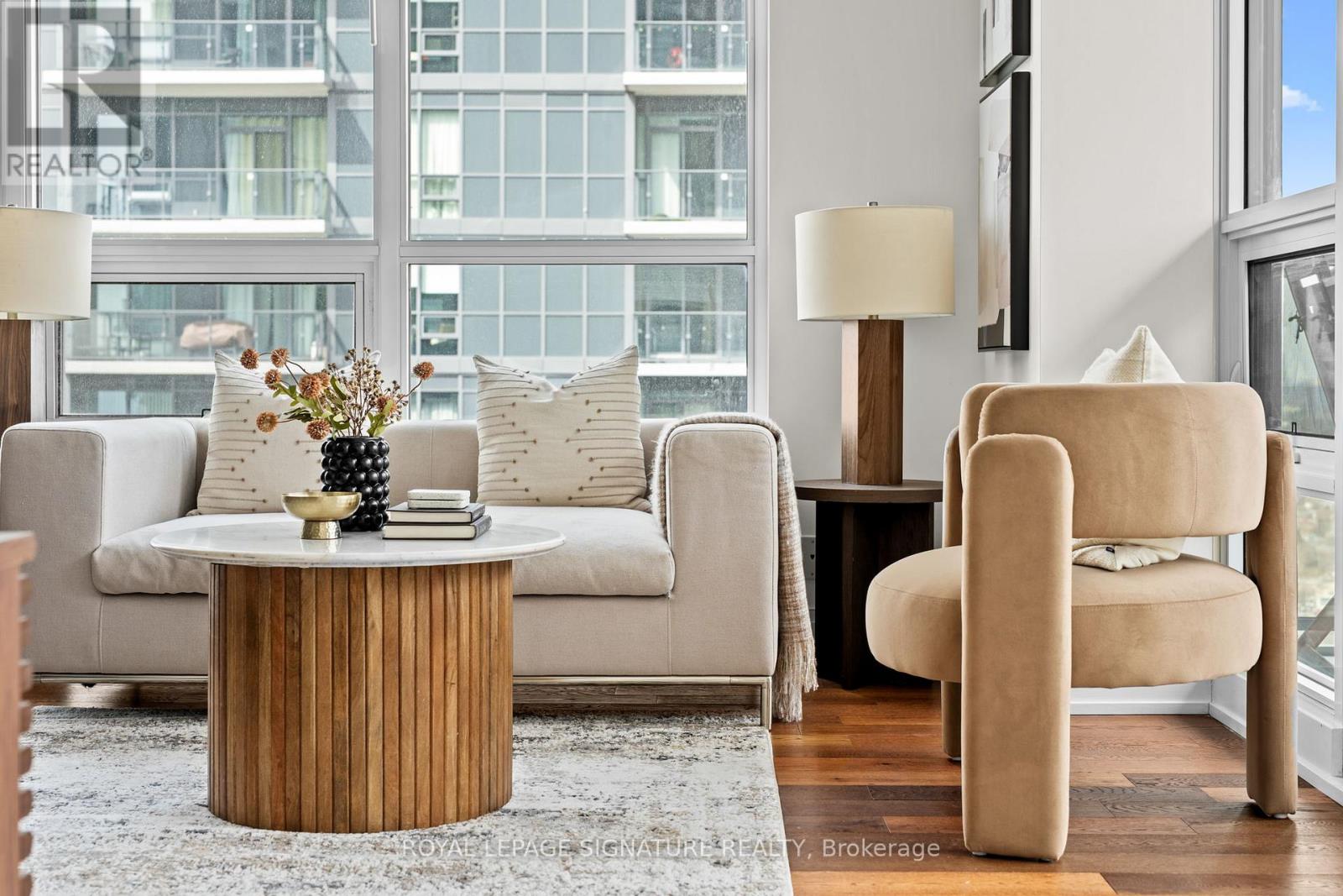 Perched high on the 43rd floor this sun filled corner unit offers a rare blend of light, space, and breathtaking views. This beautifully maintained 2 bedroom plus den, 2 full bathroom residence is thoughtfully designed with a split bedroom layout creating both comfort and privacy. Modern finishes elevate the space from quartz countertops and quality appliances to elegant flooring throughout while the den provides the perfect setting for a quiet, work from home space. Both bedrooms are generously sized offering a sense of calm and separation from the main living area. The primary bedroom offers it's own ensuite bathroom and walk in closet. Located in an exceptionally convenient waterfront community everything you need is just steps away including Metro, cafés, restaurants, LCBO, fitness studios, parks, and scenic lakefront trails.Residents enjoy access to an impressive collection of amenities including an indoor pool, sauna, jacuzzi, fully equipped gym, guest suites, party and meeting rooms, rooftop deck, and ample visitor parking to name a few! Effortless, elevated living in one of the city's most vibrant pockets..grab it before it's gone! Includes parking and locker. (id:64974)