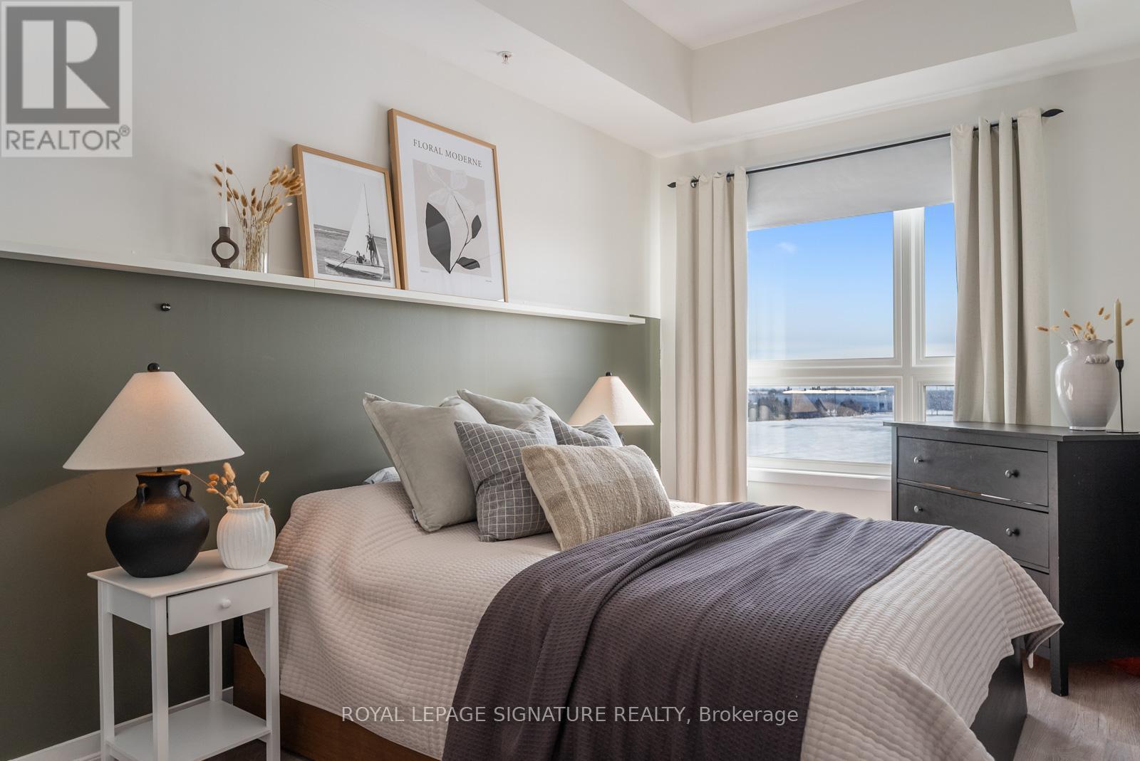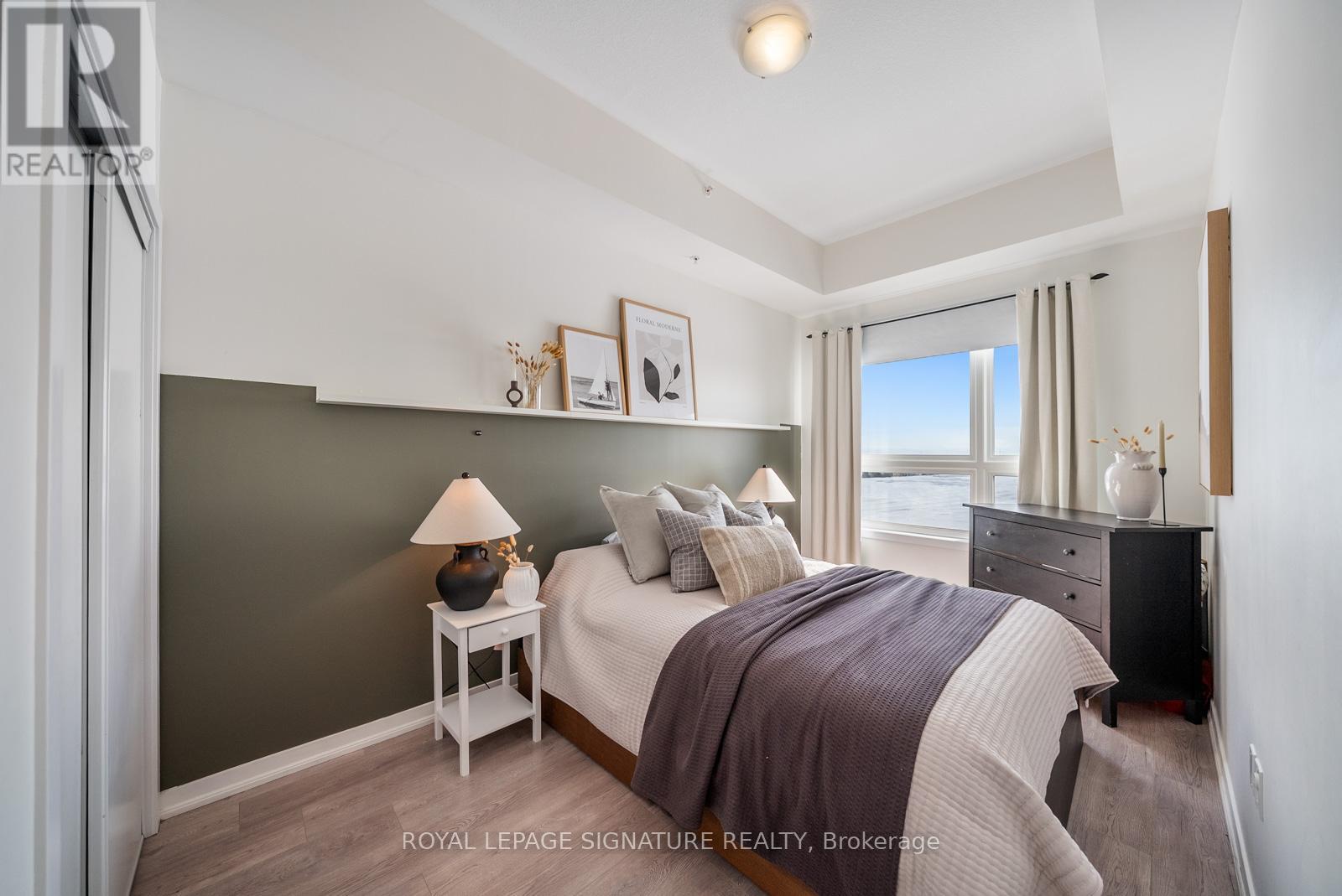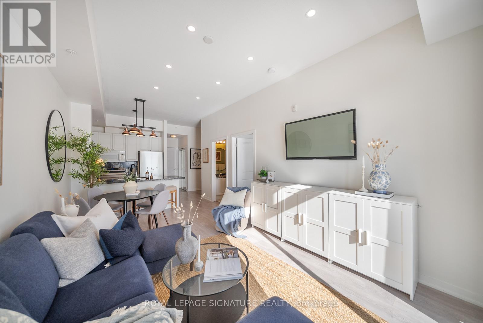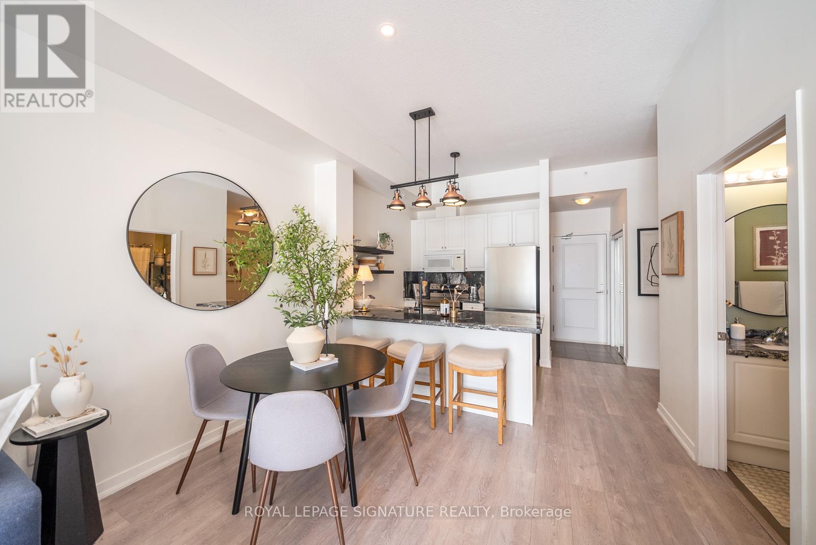Welcome to this bright and stylish 1-bedroom + large den condo in one of Burlington's most convenient and sought-after communities. Enjoy unobstructed south-facing views that fill the space with natural light and create a warm, inviting atmosphere throughout. The open-concept layout features a modern kitchen complete with brand new stainless steel appliances, contemporary finishes and trendy light fixtures. The spacious den offers incredible versatility, perfect for a kids bedroom, work from home office, or bonus living space to suit your lifestyle. The building features a movie/games room, gym and beautiful rooftop patio, perfect for those sunny days. Conveniently located, allowing you to be just minutes from the QEW and Hwy 407, with shopping, restaurants, parks, schools, and the community centre all within walking distance, making everyday living effortless. (id:64974)