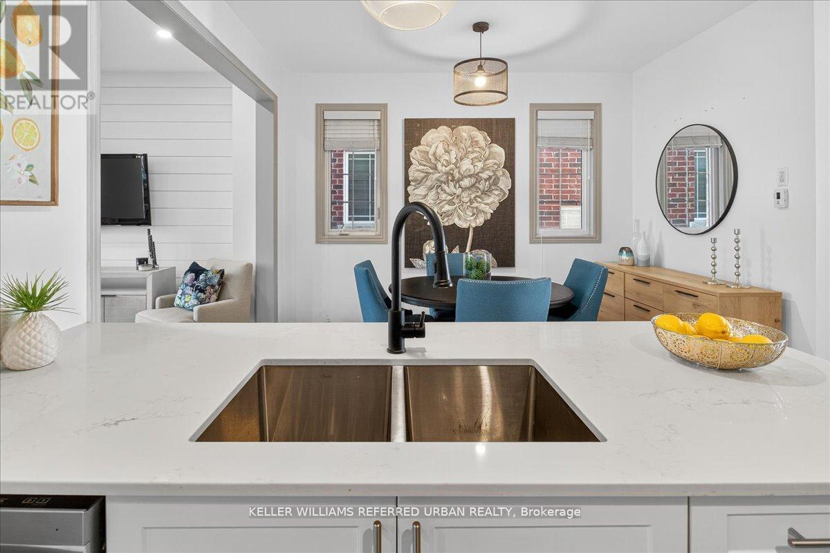 Check out this 6-year-old, 2,005 sq. ft. detached 4-bedroom home offers 2.5 bathrooms and modern finishes throughout. The inviting front foyer with wainscoting leads into a bright, thoughtfully designed main floor combining style, comfort, and functionality. The upgraded kitchen is a chef's dream, featuring stainless steel appliances, quartz countertops, a ceramic backsplash, centre island, and oversized pantry. The dining area flows into a large living room with a shiplap feature wall and a walk-out to the back deck. Upstairs, the spacious primary suite includes a walk-in closet and a luxurious 5-piece ensuite with freestanding tub and glass shower. Three additional bedrooms, all boasting closets with organizers, provide ample space for family or guests.The unfinished basement with bathroom rough-in provides excellent potential for a recreation room, home office, or additional living space. The home offers direct access to the single-car garage and parking for two additional vehicles in the driveway. Enjoy a fully fenced yard backing onto a park with no neighbours behind. Located close to excellent schools, parks, walking trails, Upper Canada Mall, dining, transit, a quick drive to the 404 & 400 highways and the GO. This move-in ready home combines privacy, modern design and convenience. Come Fall in Love! (id:64974)