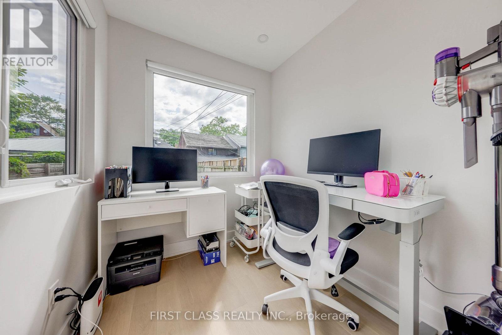 Welcome to this true architectural nested in the Toronto heart Little Italy. A family home w/nearly 3000 sq. ft. of living space on 4 levels. The open concept Main floor comes with a custom chief kitchen, with beautiful central island and B/I appliances. Main floor also offers all functional area, your in-home office, powder room, laundry site, mud area. Upstairs offers 4 well design bedrooms, which have 3 en-suites. The Primary Bedroom land on 2nd floor have a beautiful 4PC en-suites, showroom W/I closet and picture window to your lovely back yard. The Primary Bedroom land on 3rd floor have the most functional layout in downtown Toronto. 5PC En-suites, W/I closet, Floor to Ceiling Sliding Doors walk to your private Balcony with a CN-Tower view. Your basement comes with 2nd kitchen, 2nd laundry and other two rooms. You can use basement as your entertainment area, which one room be your gym and other room be your guest bedroom. Or, if needed, this is a legal 2 bedroom basement apartment with separate W/O entrance. Then, we walk into your quite back yard, the huge deck comes with BBQ gas supply, the little Green Area design for your pets and a Double Car laneway garage with separate electric panel supply a Tesla Universal Wall Connector Hardwired Electric Vehicle (EV) Charger. (id:64974)