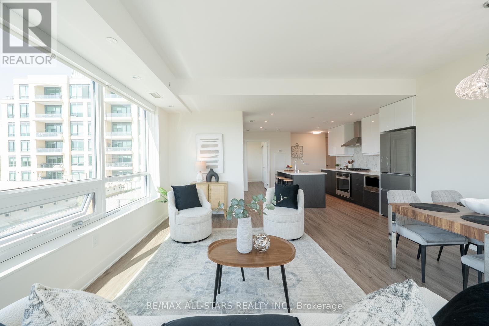 This unit is a Rare, Oversized Corner Suite Offering 1,245 sq. ft. of Living Space, 2 Bedrooms, 3 Bathrooms, and Two Private Balconies for Extended Outdoor Living. With Windows on Two Sides, this Home is Filled with Natural Light and Offers Beautiful Views of Surrounding Greenspace. The Thoughtfully Designed Layout Features an Upgraded Kitchen with Quartz Countertops, Stainless Steel Appliances, Sleek Cabinetry, and a Large Island Perfect for Cooking, Entertaining, or Casual Dining. The Open-Concept Living and Dining Areas Flow Seamlessly, Creating a Bright and Inviting Atmosphere. Both Bedrooms are Generously Sized, Each with a Walk-in Closet and Ensuite, While the Primary Suite has 4-Piece Bathroom. A Stylish Powder Room, In-Suite Laundry, Same-Floor Locker, and One Conveniently Located Parking Spot Add Everyday Comfort and Practicality. Ninth & Main is a Pet-Friendly Community with Concierge Service, Modern Amenities, and Enhanced Security. Ideally Located in the Heart of Stouffville, You'll Enjoy Easy Access to Shops, Restaurants, GO Transit, Schools, and Historic Main Street, with Nearby Trails, Parks, and Farmers Markets Just Minutes Away. This Spacious 1,245 sq. ft. Corner Suite Combines Modern Design, Functionality, and a Prime Location. (id:64974)