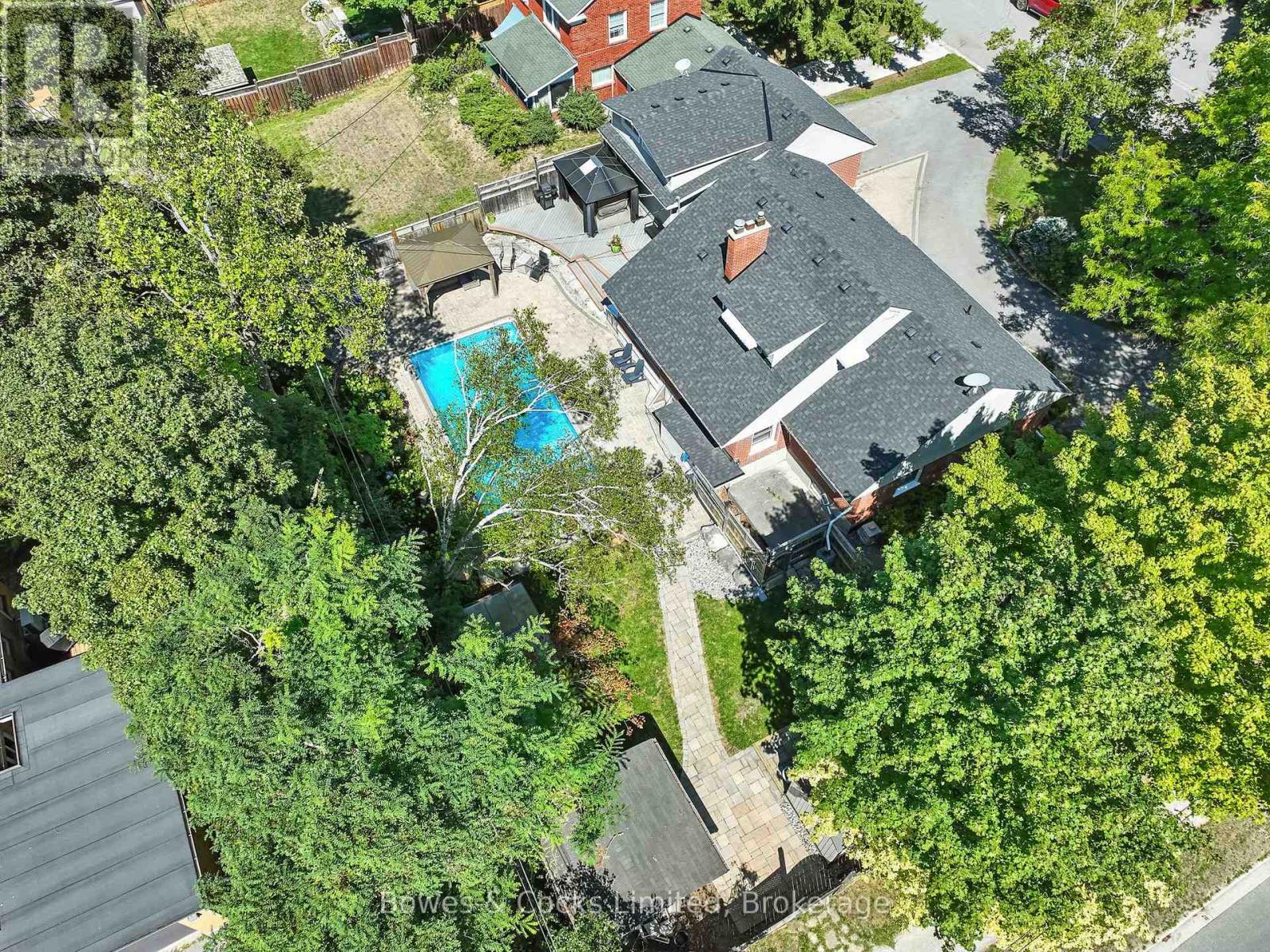Welcome to 433 Manorhill Avenue. This expansive, solid-brick home is set on a double-wide corner lot with mature trees, offering a serene, country-like feel in Peterborough's highly desirable Old West End. The main floor welcomes you with comfort and elegance, featuring two bedrooms, a full bathroom, a formal living and dining room, an updated kitchen and a lovely sunroom. With engineered hardwood floors throughout, a cozy brick fireplace, and large windows overlooking the pool and gardens, creating a perfect space to relax. Upstairs, you'll find two additional spacious bedrooms and another full bathroom. The lower level offers excellent potential for multigenerational living or guest accommodations, complete with its own separate entrance, a bedroom, kitchenette, bathroom, and a cozy living room with a welcoming brick fireplace. The fully fenced backyard is a private retreat, professionally landscaped with raised garden beds, perennial flower beds, and interlocking stone surrounding the large inground pool. Multiple gazebos, a hot tub, and generous patio space provide the perfect setting for entertaining or unwinding. The oversized attached two-car garage includes a workshop and a loft designed as a mancave-complete with a pool table and lounge space. Ideally located within walking distance to Peterborough Regional Health Centre, shopping, schools, and amenities, this home truly offers it all: space, character, privacy and a lifestyle you'll love. (id:64974)