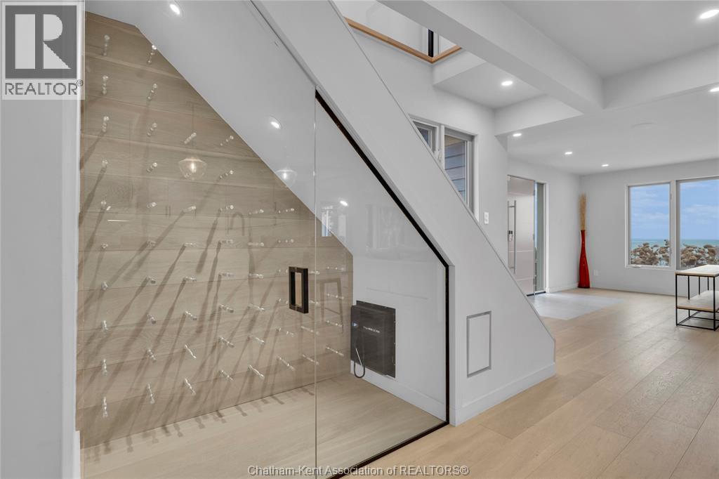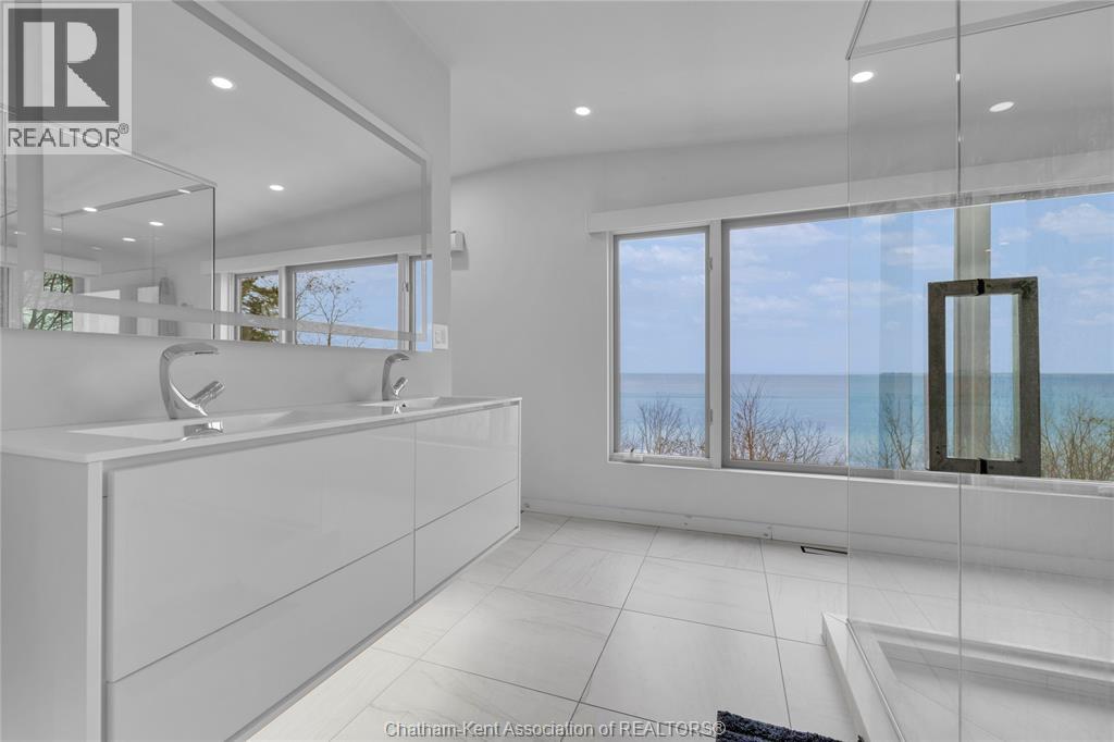 Welcome to your waterfront retreat on 4.4 acres along the shores of Lake Erie. This impressive 3,000 sq. ft. smart home offers 4 bedrooms, 3 bathrooms, and a bright open-concept layout designed to maximize natural light and breathtaking lake views. Enter through secure smart gates to beautifully landscaped grounds featuring a full irrigation system and over 1,500 sq. ft. of patio space, including a covered outdoor kitchen—ideal for entertaining while overlooking the water. The luxurious primary suite showcases panoramic lake views, a spacious walk-in closet, automatic blinds, and a spa-inspired ensuite featuring a double rain shower and heated floors. A private bunkie tucked among the trees offers high-speed internet and is perfect as a home office or guest space. Enjoy private water access with room for a dock, providing direct entry to Lake Erie. This area of Lake Erie is great for duck hunting and ice fishing that you can can do right from your own property.This fully integrated smart home allows control of lighting, music, media, and security, with modern upgrades including built-in appliances, a wine cellar, and extensive renovations (main floor 2017, upper level 2020). Turnkey Income property potential as this property was previously run as an Airbnb and is fully equipped. Additional features include 200 amp electrical service, proximity to conservation areas and hiking trails, approximately 20 minutes to Simcoe, and 10 minutes to gas and grocery amenities. VTB available for qualified buyers. (id:64974)