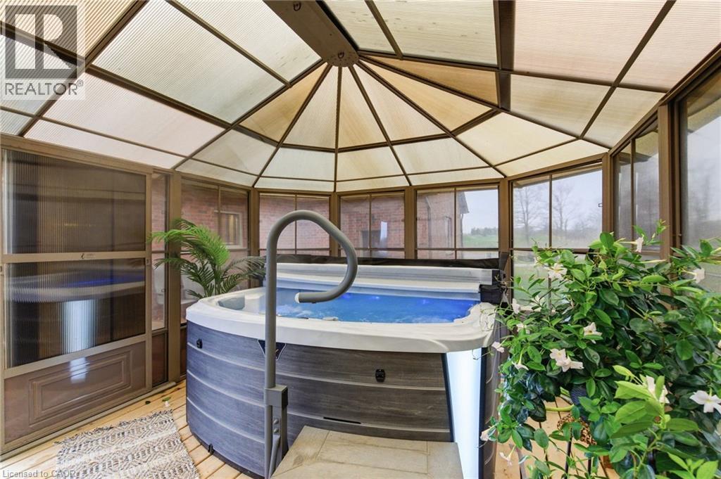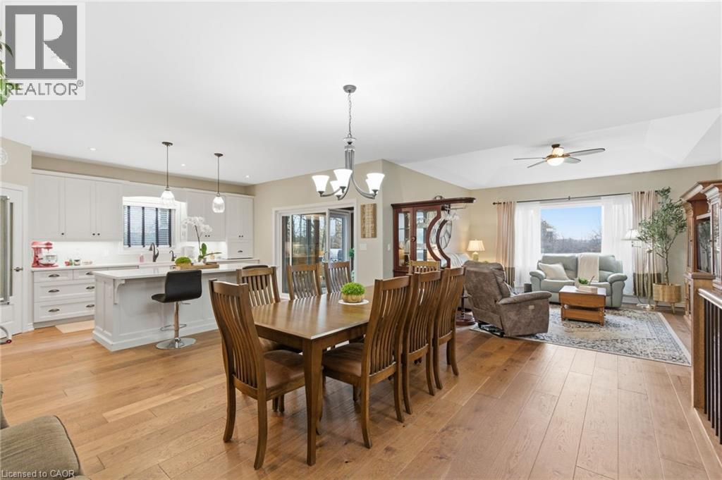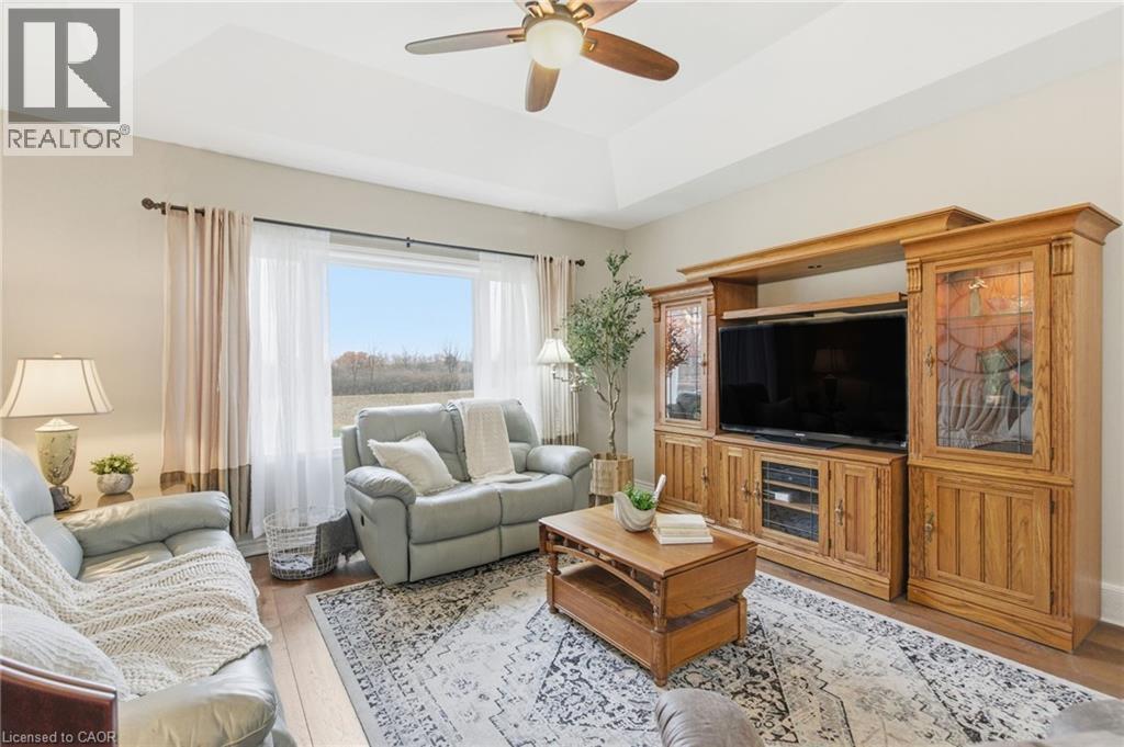Looking for modern, one level living? Need highway exposure for a home biz? Want a beauty view from a GOLFER'S prime property? Host a 2026 wedding on your sprawling property! 5 year new, custom beauty bungalow by Prominent Homes in 2020, on 1 acre. 3 bedrooms on the main level + a 4th + possible 5th and 6th in the professionally finished basement w/all egress windows. Plenty of flex space in this expansive bungalow. 6” walls throughout. Accessible doorway widths.10’ ceilings on both levels. Convenient main floor laundry. Primary bedroom w/ensuite + main full bath + full bath in basement. Insulated sunroom off the kitchen, perfect for entertaining! Leading to a beautiful poured concrete patio, w/gazebo and hot tub! Professionally installed patio includes combo grass/concrete, fully fenced area to keep your fur babies and little humans safe. Parking for 10+ on the impressive concrete driveway, room for 3 more in the dreamy attached 3 car garage or enjoy the extra storage space! Country living close to town for all your shopping needs. Surrounded by farm fields, nature, and directly across from the 16th hole of Cayuga Golf Club! Convenient Highway 3 access and visibility, be among the first to be plowed out! This property has it all! (id:64974)