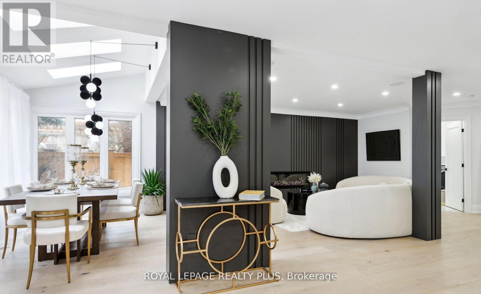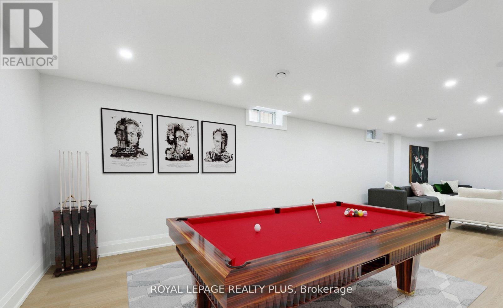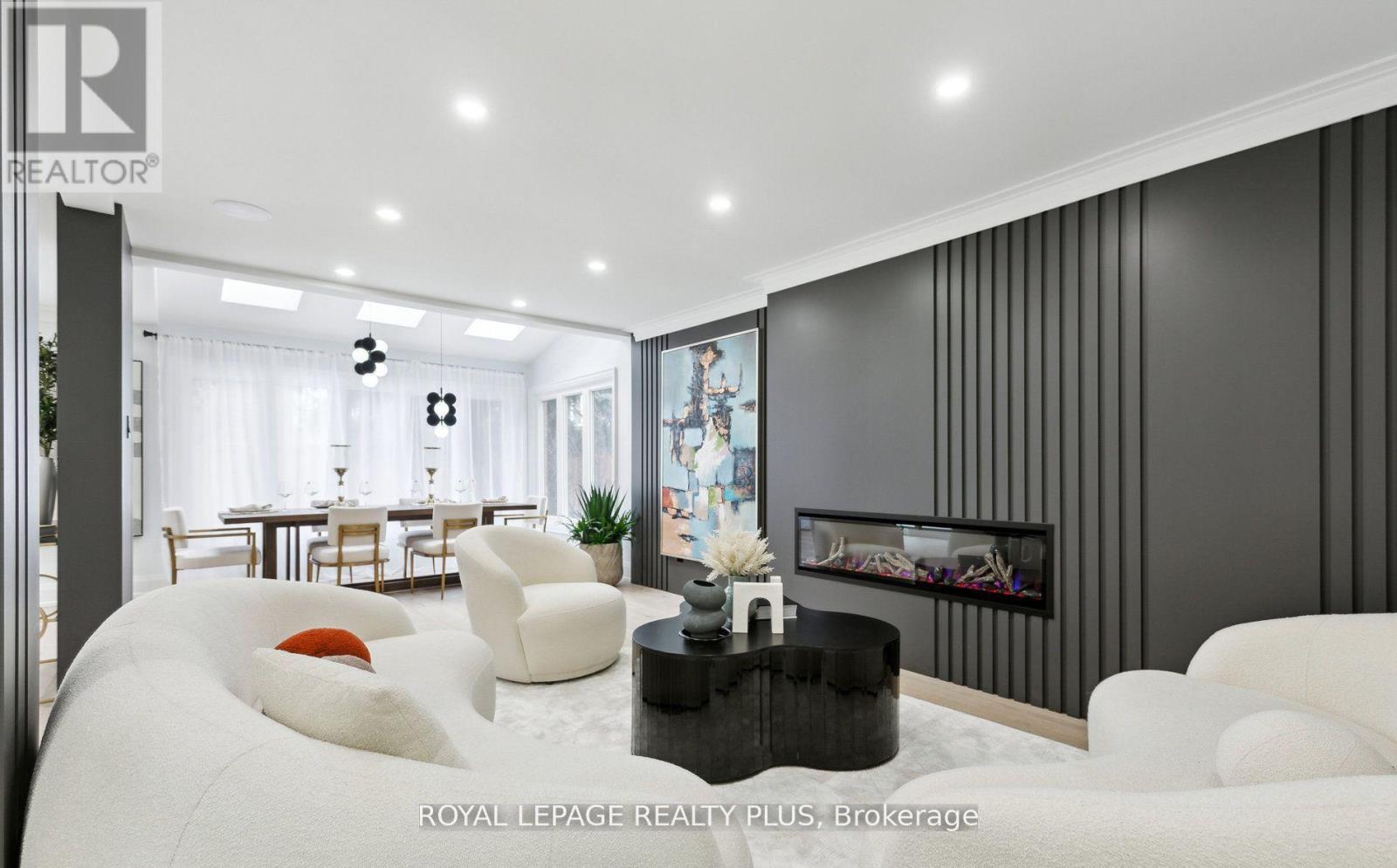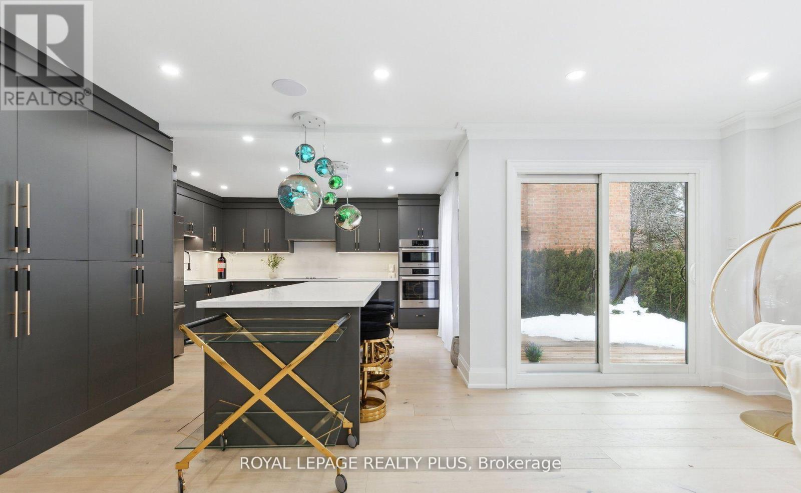 Nestled in a prestigious cul-de-sac, this stunning home boasts a grand entrance, 9.5-inch natural oak floors, an open-concept design, and a chefs dream kitchen with an oversized island. Skylights and floor-to-ceiling windows flood the space with natural light, while a cozy fireplace, custom feature wall, and built-in speakers create a warm and inviting family room with walkout access to a fully fenced backyard featuring mature trees and a patio. The spacious primary suite offers a bay window, open walk-in closet, and a luxurious en-suite with heated floors. All bedrooms are generously sized with custom-built closets. The fully finished lower level includes a wine cellar, an additional bedroom with a walk-in closet or office space, a three-piece en-suite, and potential for a second kitchen or bar. Completing this home is a double car garage, an extended four-car driveway with no sidewalk, and professional landscaping all combining elegance, comfort, and practicality in one remarkable property. (id:64974)