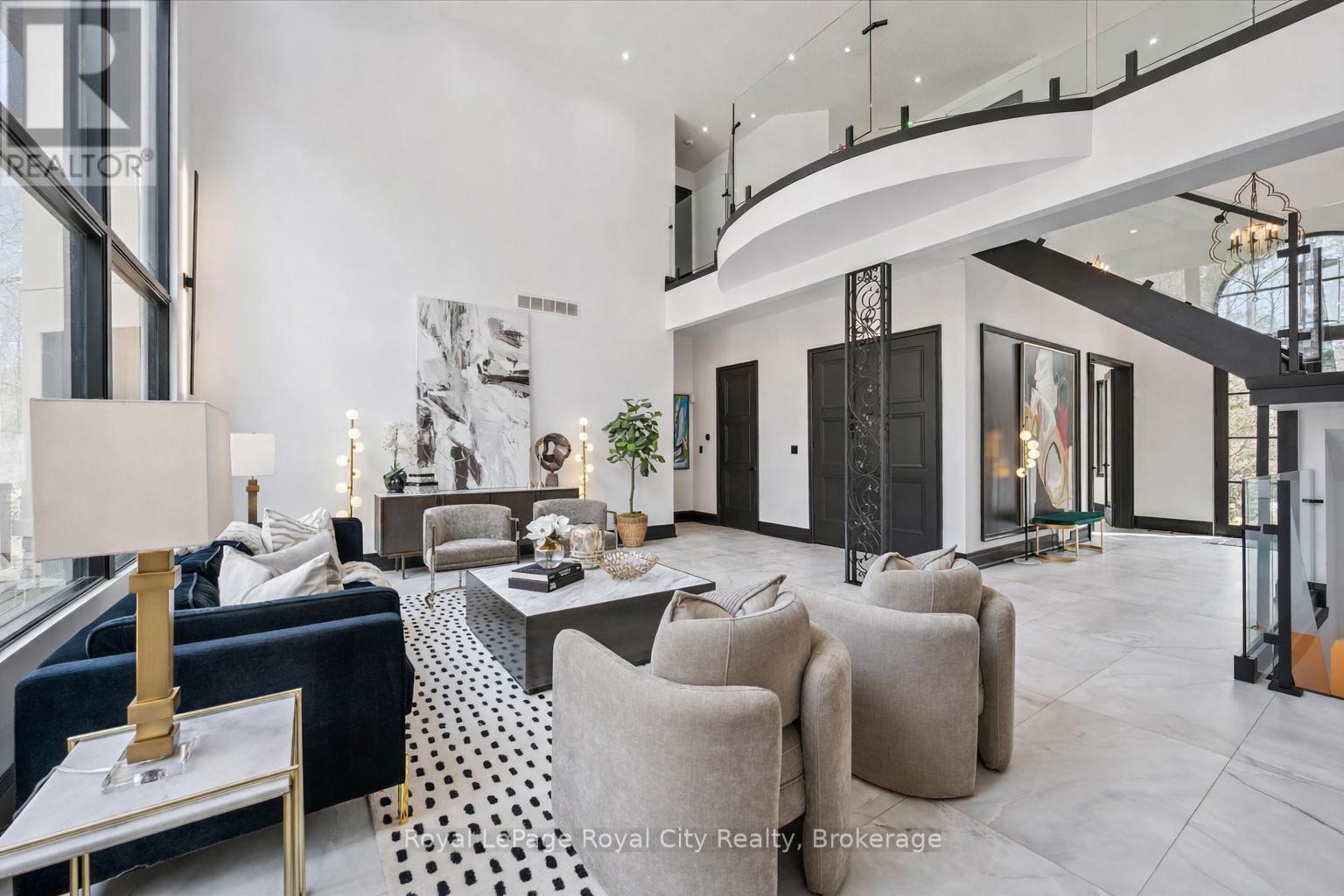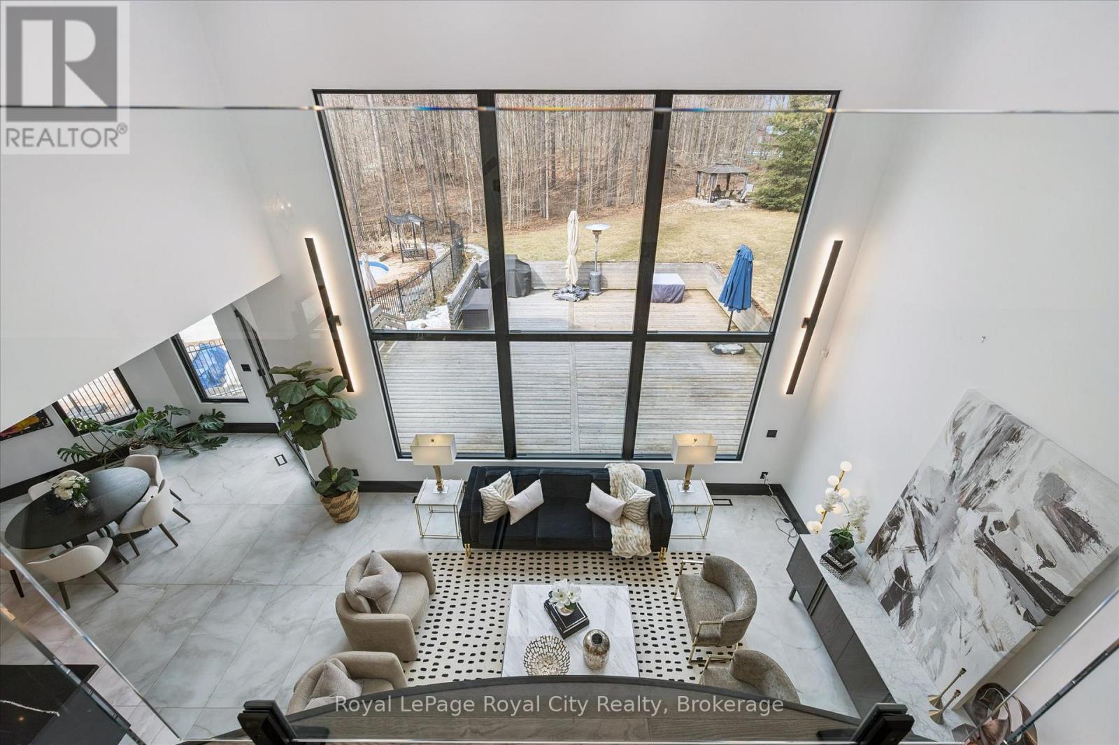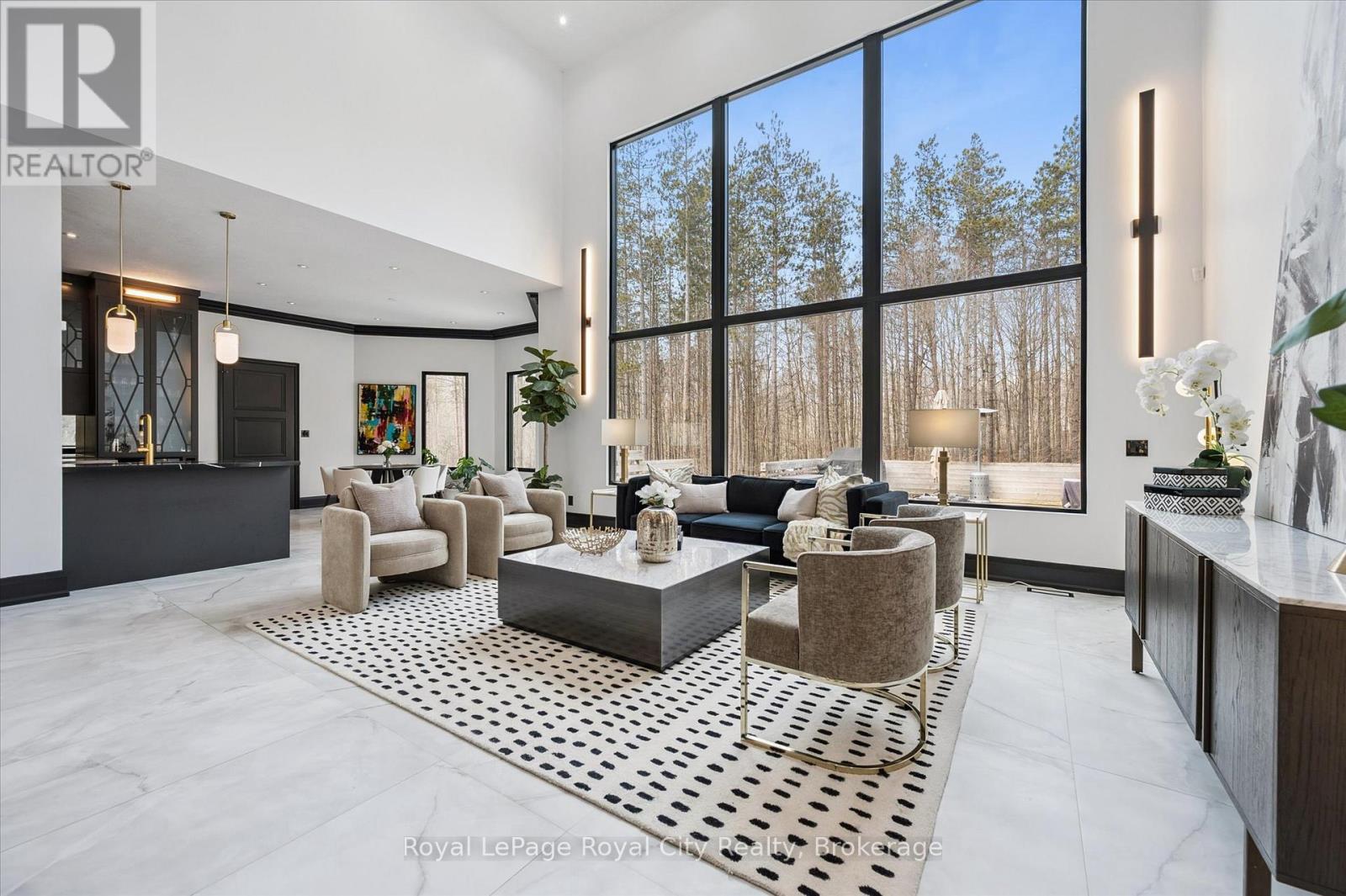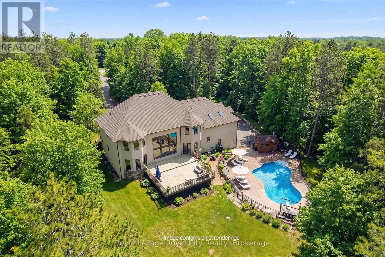 Welcome to a home where country serenity meets contemporary elegance. Set on just over 2 acres of lush, tree-lined property, this exceptional 5-bedroom, 6-bath residence offers a rare blend of modern luxury and natural beauty-creating a truly private and picturesque retreat. Thoughtfully designed with clean architectural lines and an open-concept layout, the home is filled with natural light, seamlessly connecting the indoors with the surrounding landscape. Every detail has been carefully considered to enhance both everyday living and effortless entertaining. At the heart of the home, the gourmet kitchen is a true showpiece-featuring top-of-the-line appliances, abundant storage, and a striking waterfall island that invites gathering and connection. The living area is equally impressive, with soaring ceilings and expansive windows that frame breathtaking views of the backyard oasis. Whether hosting guests or enjoying a quiet evening in, this space offers warmth, comfort, and a constant connection to nature. Step outside to the expansive deck-perfect for morning coffee or long summer evenings under the open sky. The heated saltwater pool introduces a resort-like feel, creating the ultimate setting to relax and unwind. Surrounded by mature trees and open green space, the property offers a sense of peace and privacy that is truly unmatched. Beautiful in every season, the landscape transforms throughout the year-from vibrant autumn colors to peaceful winter snowfall, and the lush greenery of spring and summer. Thoughtfully designed to suit every stage of life, the home features a stunning main floor primary suite, along with four generously sized bedrooms on the second level. Ideally located just minutes from two world-class equestrian facilities and some of the most scenic hiking trails in Southwestern Ontario, this property also offers convenient access for commuters, with easy routes to Pearson International Airport and GO Transit connections to downtown Toronto. (id:64974)