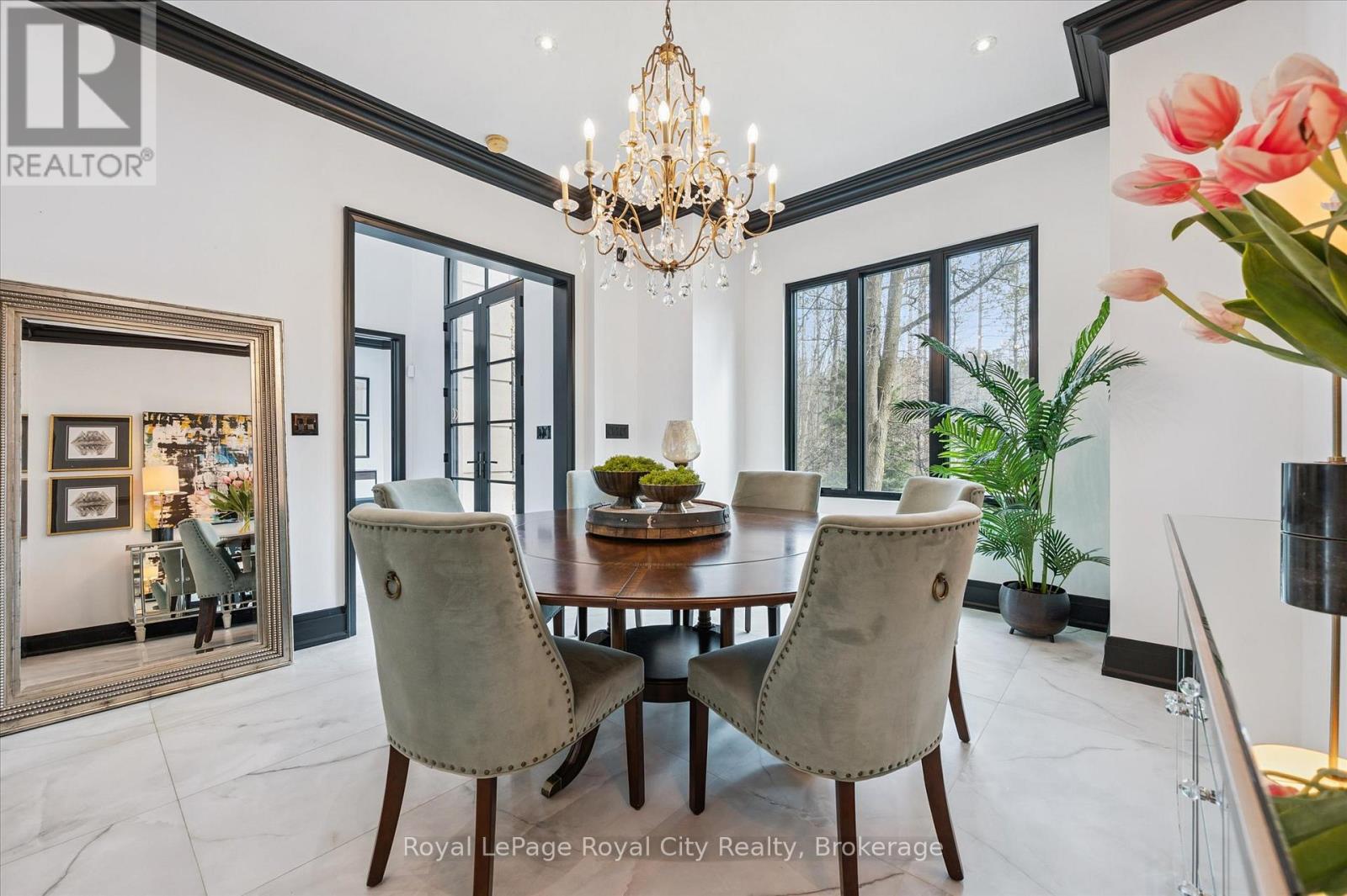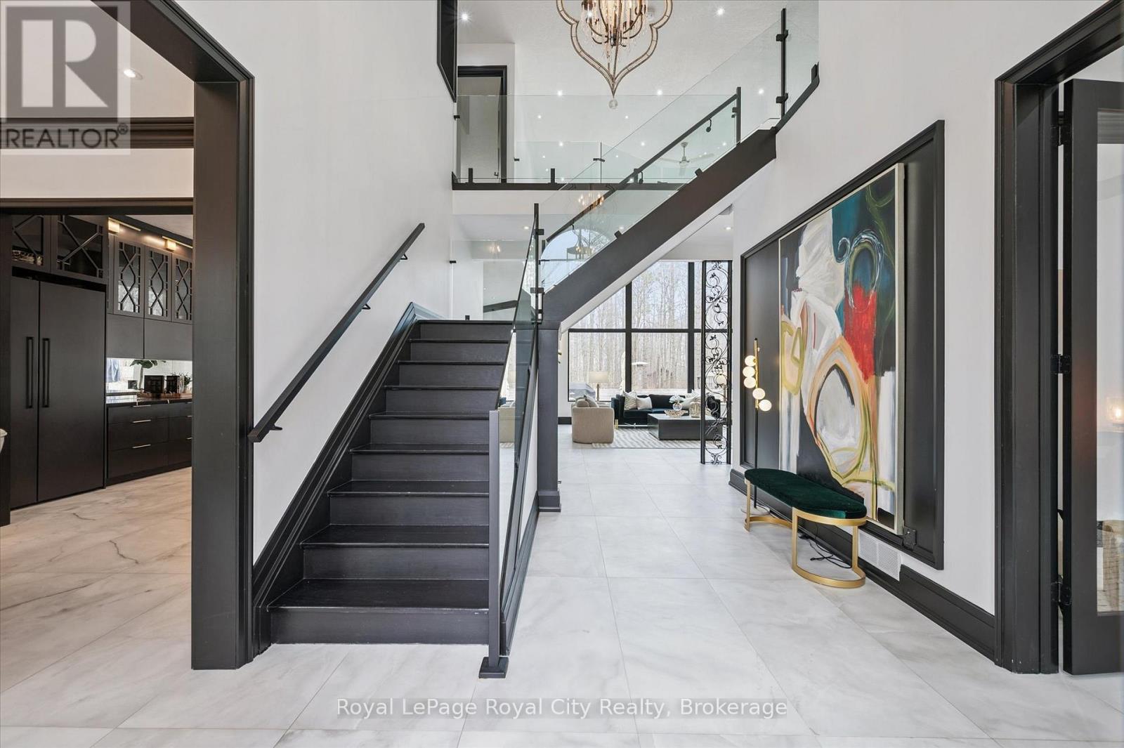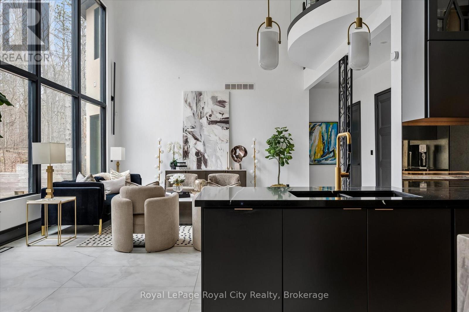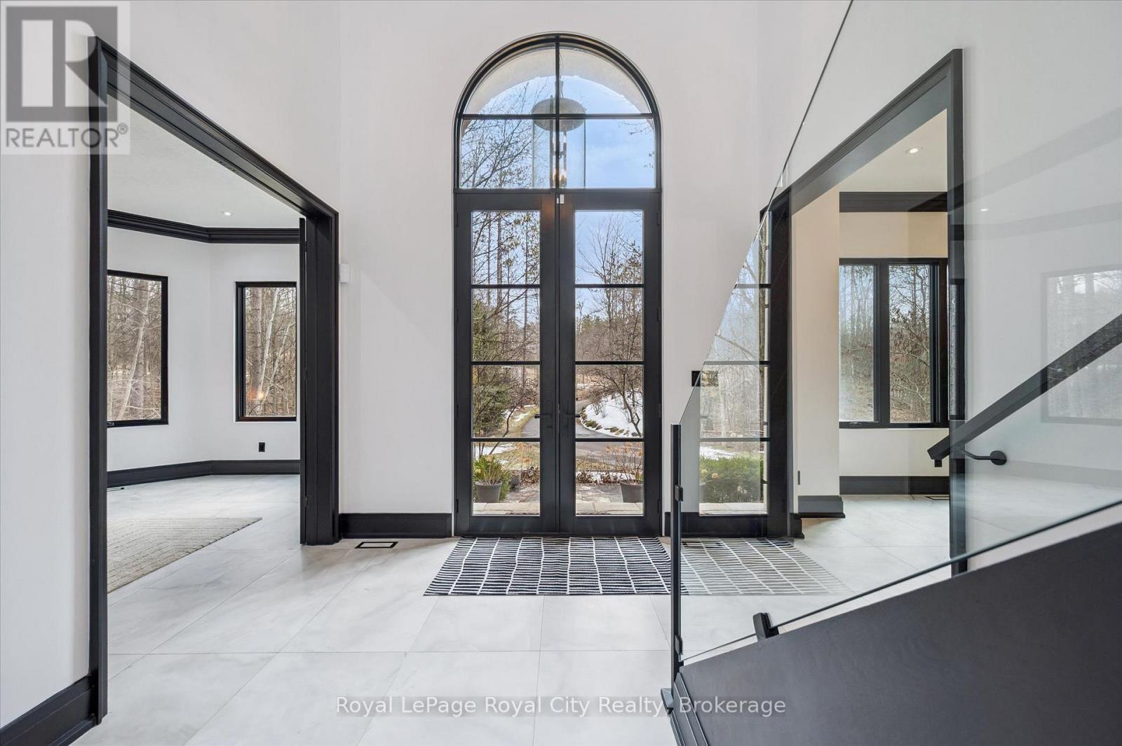 Welcome to a home where country serenity meets contemporary elegance. Set on just over 2 acres of lush, tree-lined property, this exceptional 5-bedroom, 6-bath residence offers a rare blend of modern luxury and natural beauty-creating a truly private and picturesque retreat. Thoughtfully designed with clean architectural lines and an open-concept layout, the home is filled with natural light, seamlessly connecting the indoors with the surrounding landscape. Every detail has been carefully considered to enhance both everyday living and effortless entertaining. At the heart of the home, the gourmet kitchen is a true showpiece-featuring top-of-the-line appliances, abundant storage, and a striking waterfall island that invites gathering and connection. The living area is equally impressive, with soaring ceilings and expansive windows that frame breathtaking views of the backyard oasis. Whether hosting guests or enjoying a quiet evening in, this space offers warmth, comfort, and a constant connection to nature. Step outside to the expansive deck-perfect for morning coffee or long summer evenings under the open sky. The heated saltwater pool introduces a resort-like feel, creating the ultimate setting to relax and unwind. Surrounded by mature trees and open green space, the property offers a sense of peace and privacy that is truly unmatched. Beautiful in every season, the landscape transforms throughout the year-from vibrant autumn colors to peaceful winter snowfall, and the lush greenery of spring and summer. Thoughtfully designed to suit every stage of life, the home features a stunning main floor primary suite, along with four generously sized bedrooms on the second level. Ideally located just minutes from two world-class equestrian facilities and some of the most scenic hiking trails in Southwestern Ontario, this property also offers convenient access for commuters, with easy routes to Pearson International Airport and GO Transit connections to downtown Toronto. (id:64974)