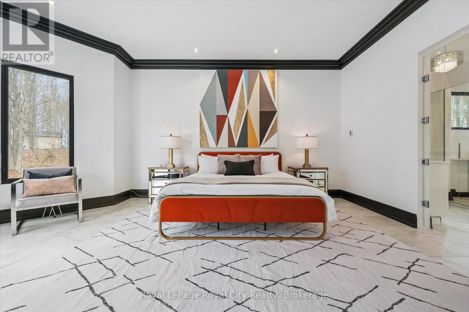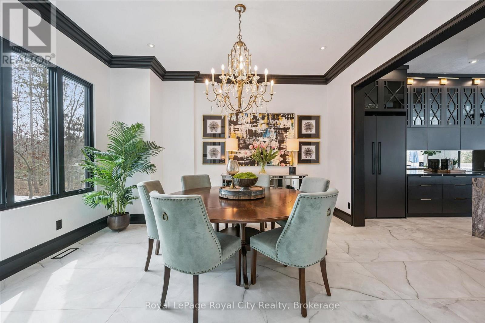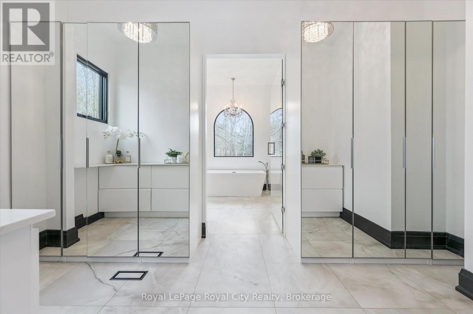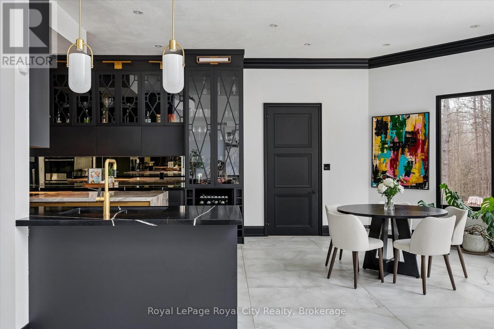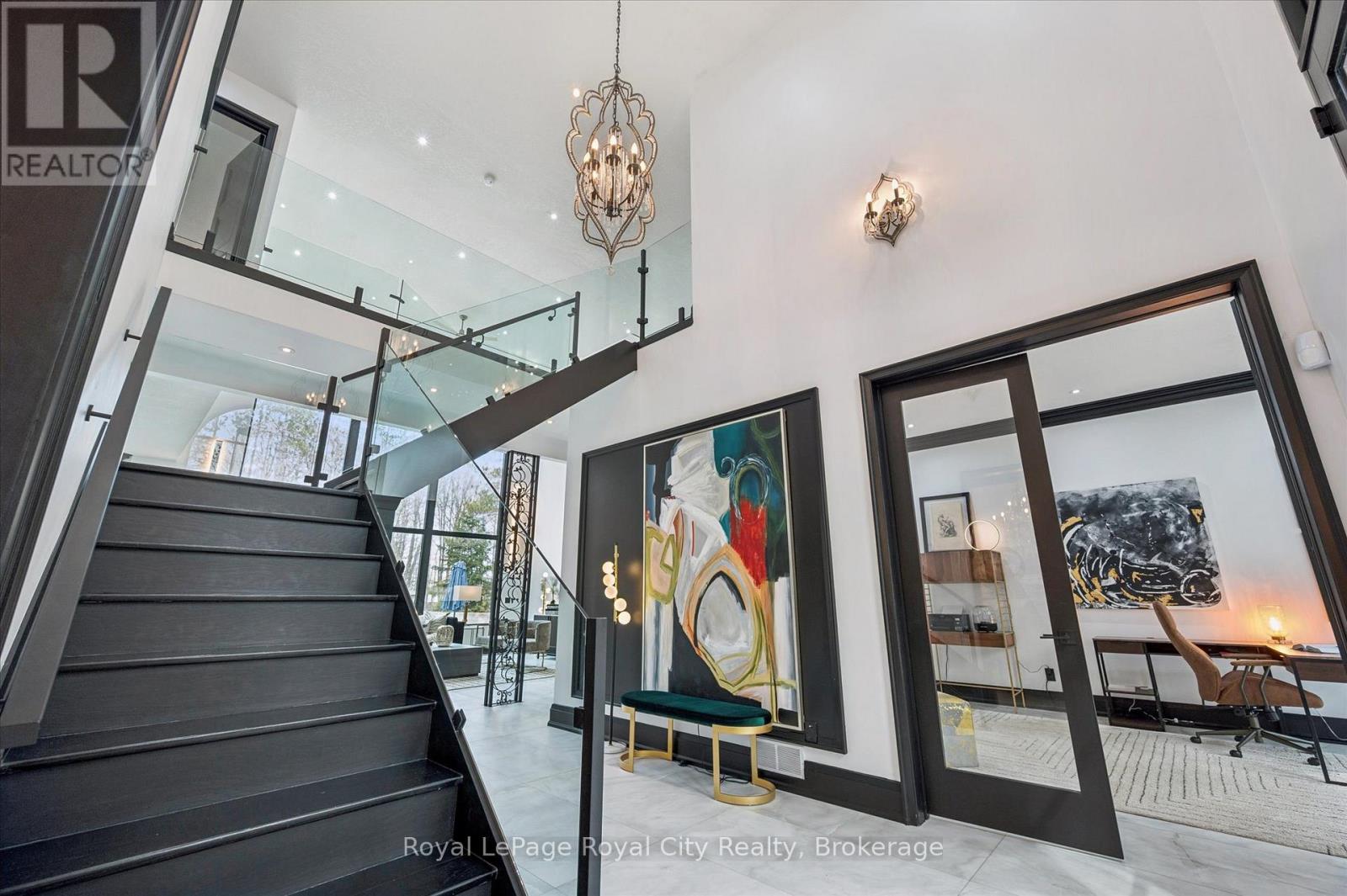 Welcome to a home where country serenity meets contemporary elegance. Set on just over 2 acres of lush, tree-lined property, this exceptional 5-bedroom, 6-bath residence offers a rare blend of modern luxury and natural beauty-creating a truly private and picturesque retreat. Thoughtfully designed with clean architectural lines and an open-concept layout, the home is filled with natural light, seamlessly connecting the indoors with the surrounding landscape. Every detail has been carefully considered to enhance both everyday living and effortless entertaining. At the heart of the home, the gourmet kitchen is a true showpiece-featuring top-of-the-line appliances, abundant storage, and a striking waterfall island that invites gathering and connection. The living area is equally impressive, with soaring ceilings and expansive windows that frame breathtaking views of the backyard oasis. Whether hosting guests or enjoying a quiet evening in, this space offers warmth, comfort, and a constant connection to nature. Step outside to the expansive deck-perfect for morning coffee or long summer evenings under the open sky. The heated saltwater pool introduces a resort-like feel, creating the ultimate setting to relax and unwind. Surrounded by mature trees and open green space, the property offers a sense of peace and privacy that is truly unmatched. Beautiful in every season, the landscape transforms throughout the year-from vibrant autumn colors to peaceful winter snowfall, and the lush greenery of spring and summer. Thoughtfully designed to suit every stage of life, the home features a stunning main floor primary suite, along with four generously sized bedrooms on the second level. Ideally located just minutes from two world-class equestrian facilities and some of the most scenic hiking trails in Southwestern Ontario, this property also offers convenient access for commuters, with easy routes to Pearson International Airport and GO Transit connections to downtown Toronto. (id:64974)