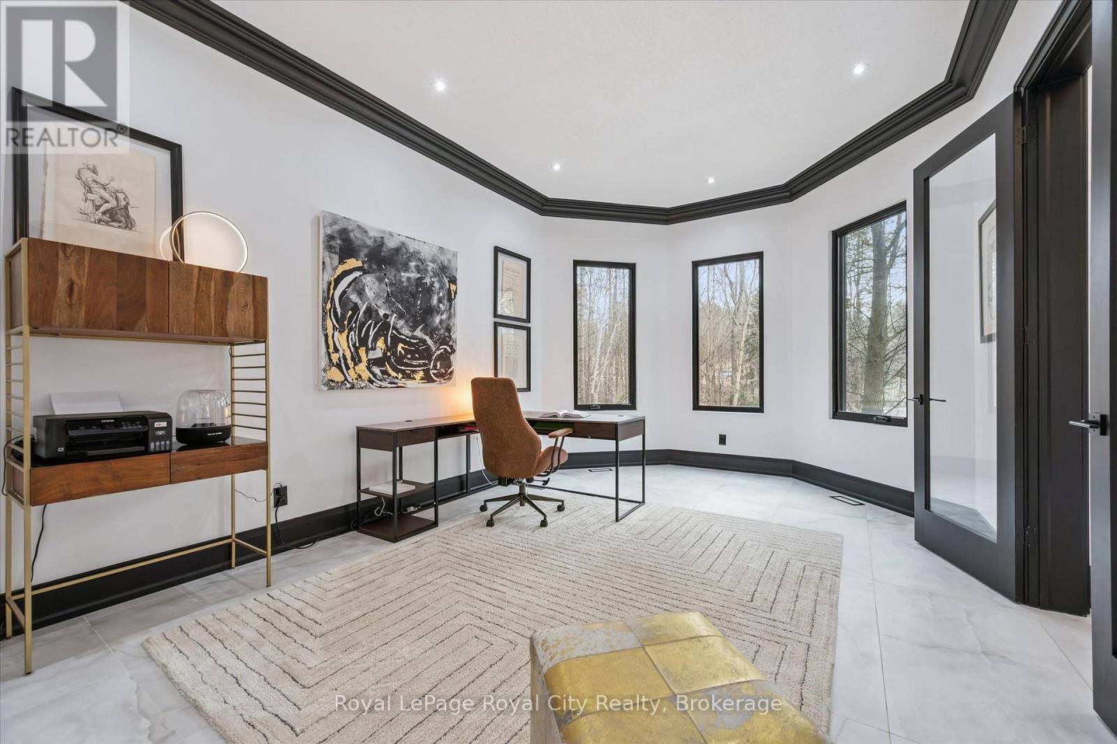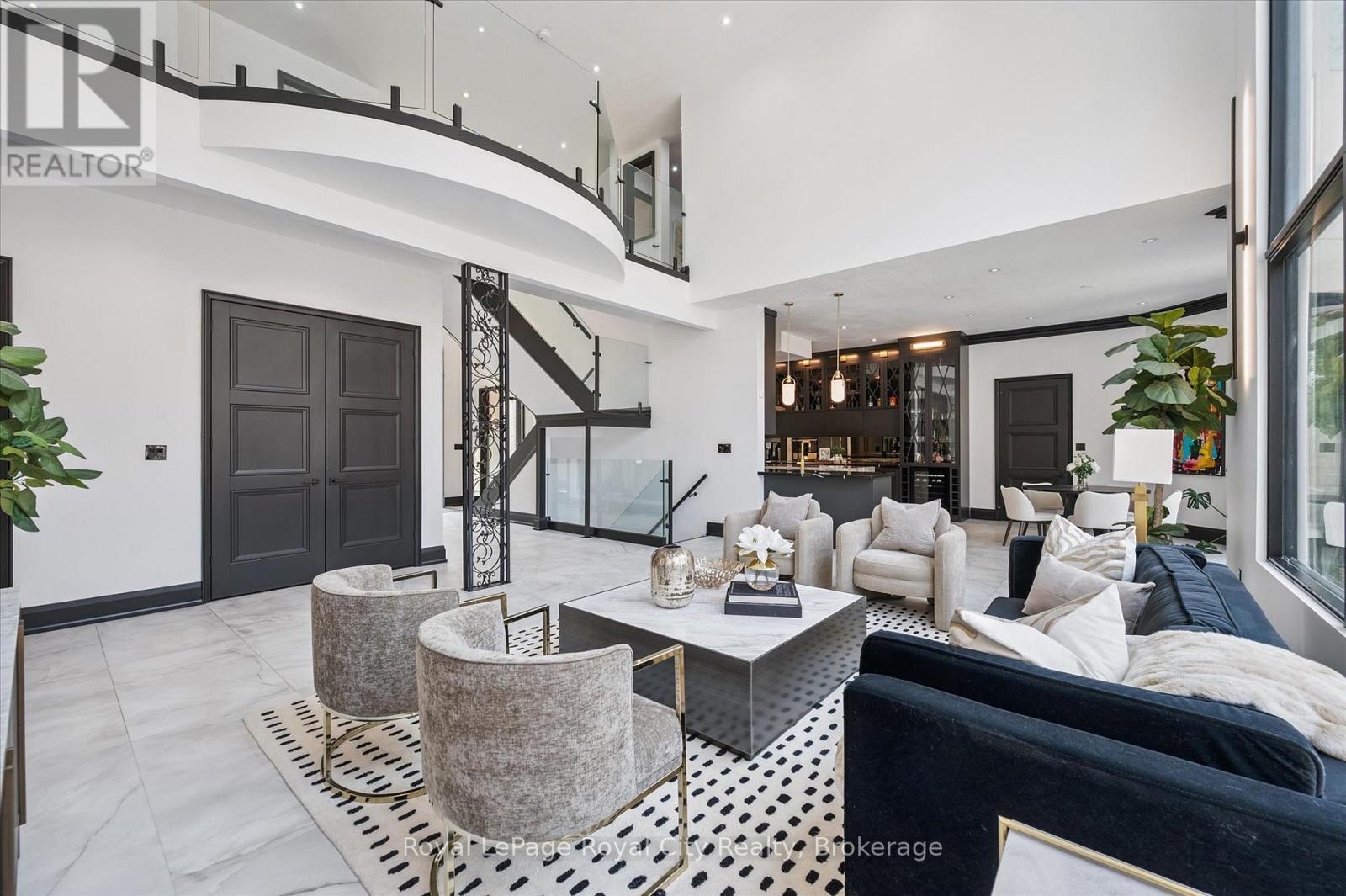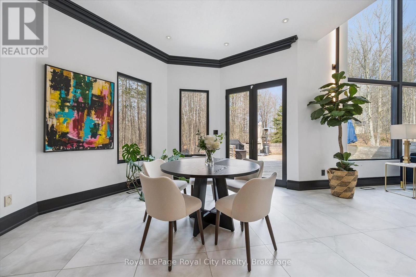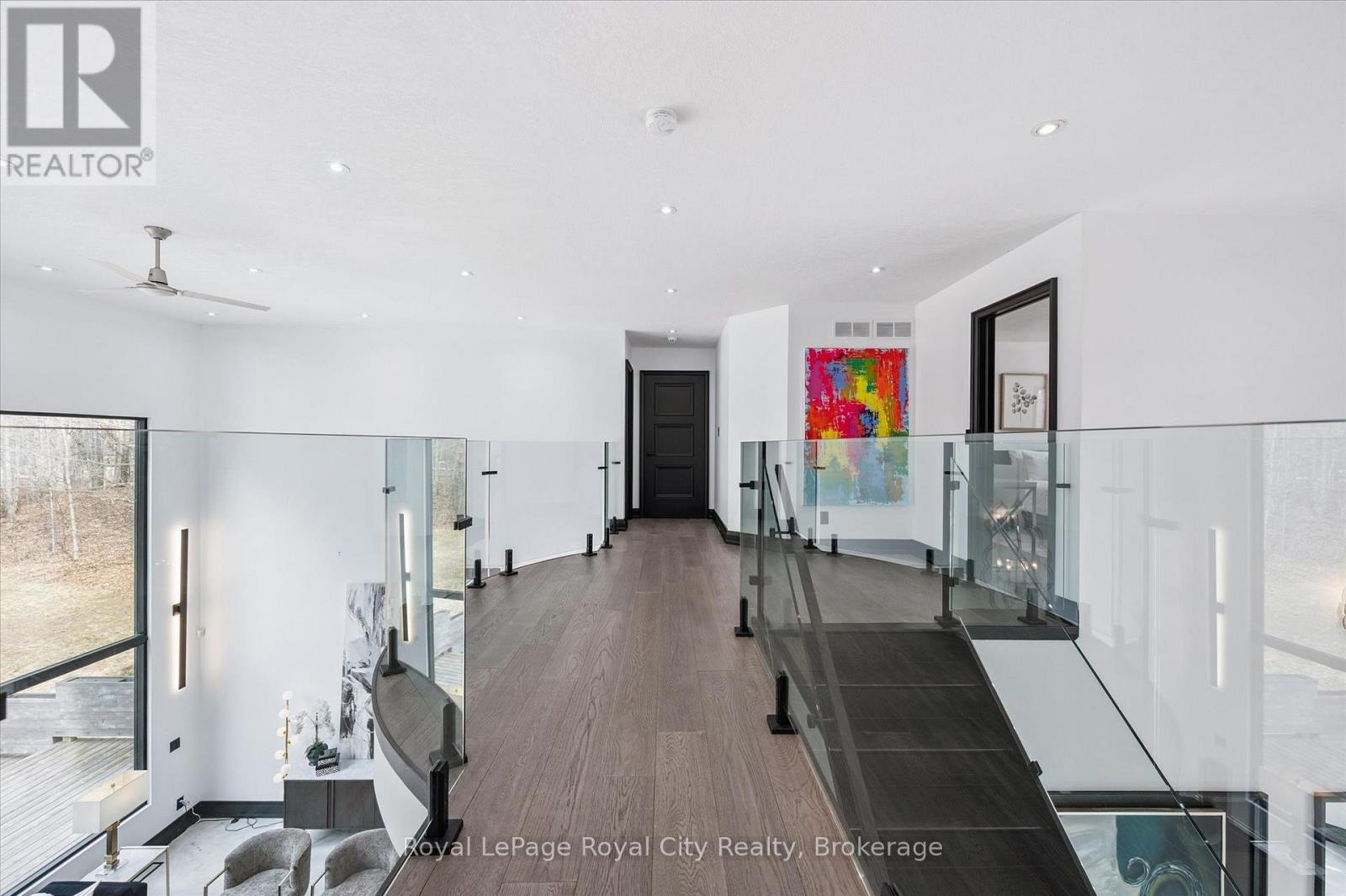 Welcome to a home where country serenity meets contemporary elegance. Set on just over 2 acres of lush, tree-lined property, this exceptional 5-bedroom, 6-bath residence offers a rare blend of modern luxury and natural beauty-creating a truly private and picturesque retreat. Thoughtfully designed with clean architectural lines and an open-concept layout, the home is filled with natural light, seamlessly connecting the indoors with the surrounding landscape. Every detail has been carefully considered to enhance both everyday living and effortless entertaining. At the heart of the home, the gourmet kitchen is a true showpiece-featuring top-of-the-line appliances, abundant storage, and a striking waterfall island that invites gathering and connection. The living area is equally impressive, with soaring ceilings and expansive windows that frame breathtaking views of the backyard oasis. Whether hosting guests or enjoying a quiet evening in, this space offers warmth, comfort, and a constant connection to nature. Step outside to the expansive deck-perfect for morning coffee or long summer evenings under the open sky. The heated saltwater pool introduces a resort-like feel, creating the ultimate setting to relax and unwind. Surrounded by mature trees and open green space, the property offers a sense of peace and privacy that is truly unmatched. Beautiful in every season, the landscape transforms throughout the year-from vibrant autumn colors to peaceful winter snowfall, and the lush greenery of spring and summer. Thoughtfully designed to suit every stage of life, the home features a stunning main floor primary suite, along with four generously sized bedrooms on the second level. Ideally located just minutes from two world-class equestrian facilities and some of the most scenic hiking trails in Southwestern Ontario, this property also offers convenient access for commuters, with easy routes to Pearson International Airport and GO Transit connections to downtown Toronto. (id:64974)