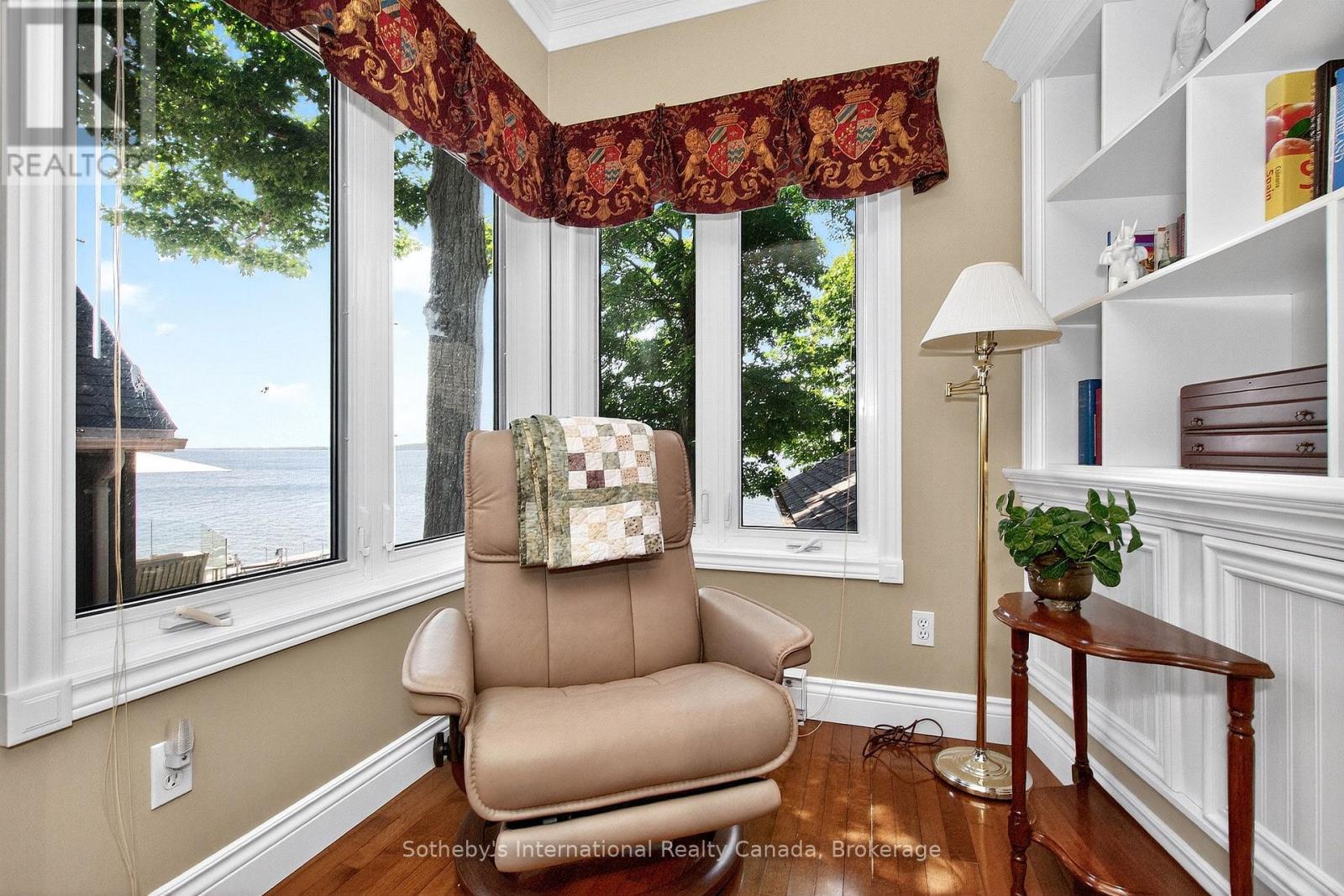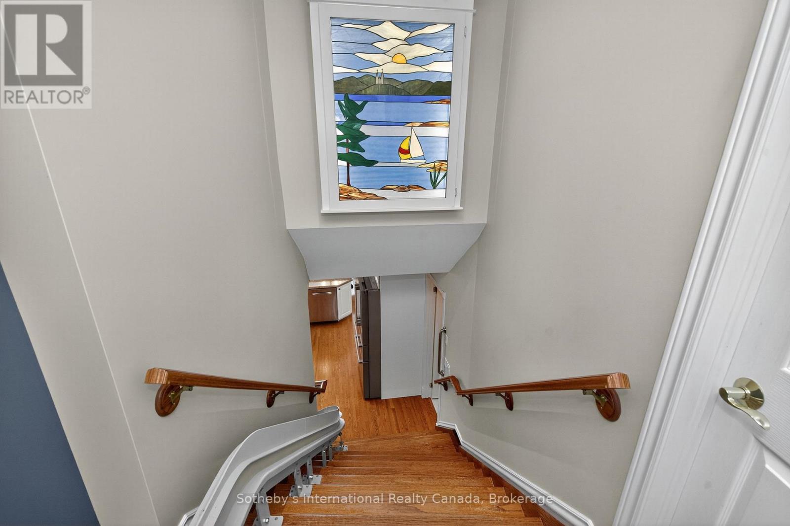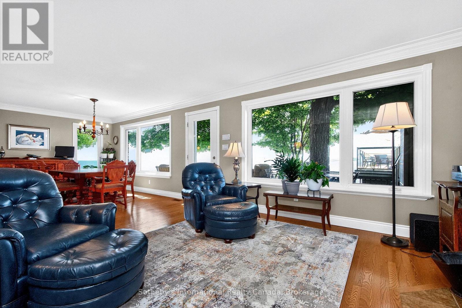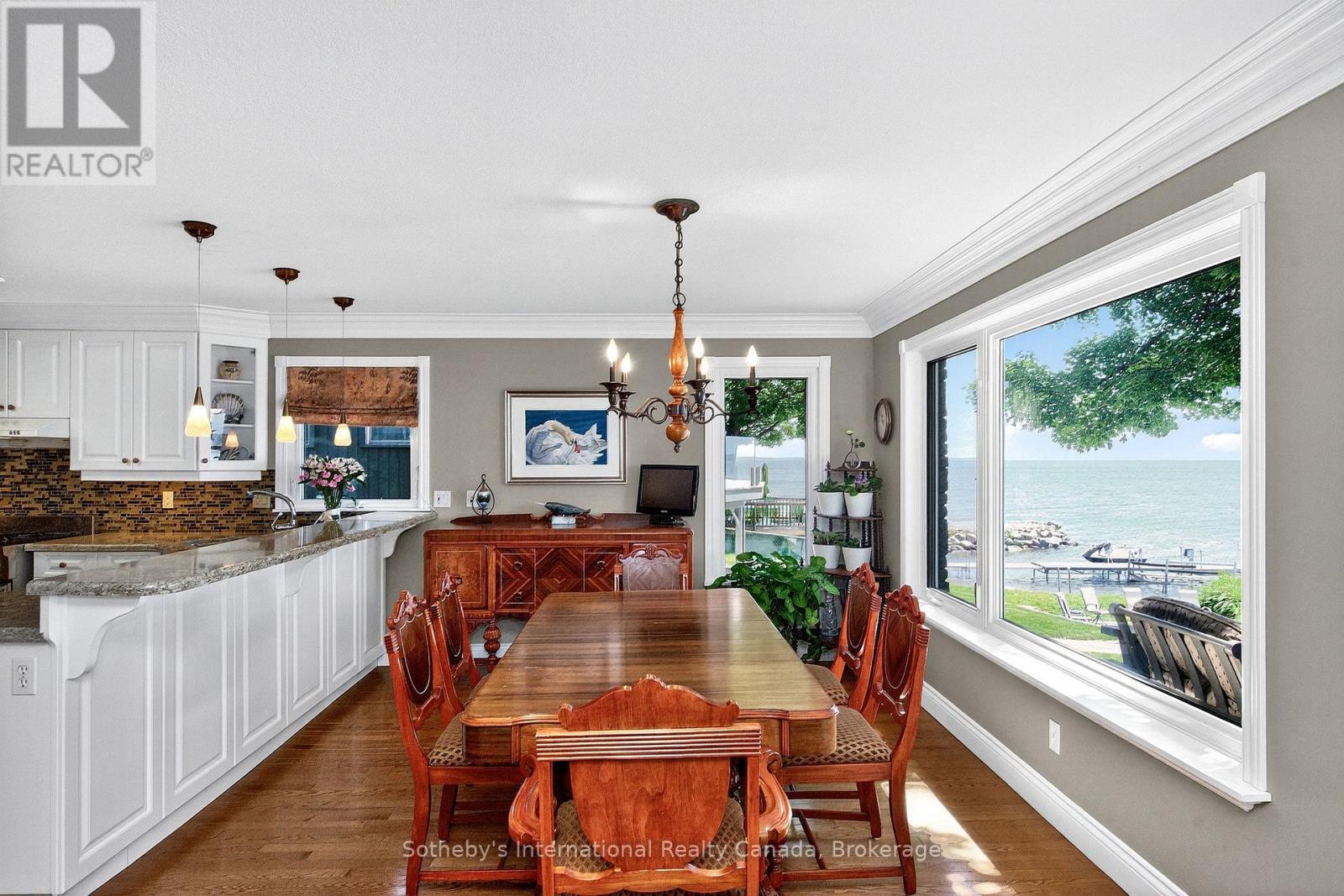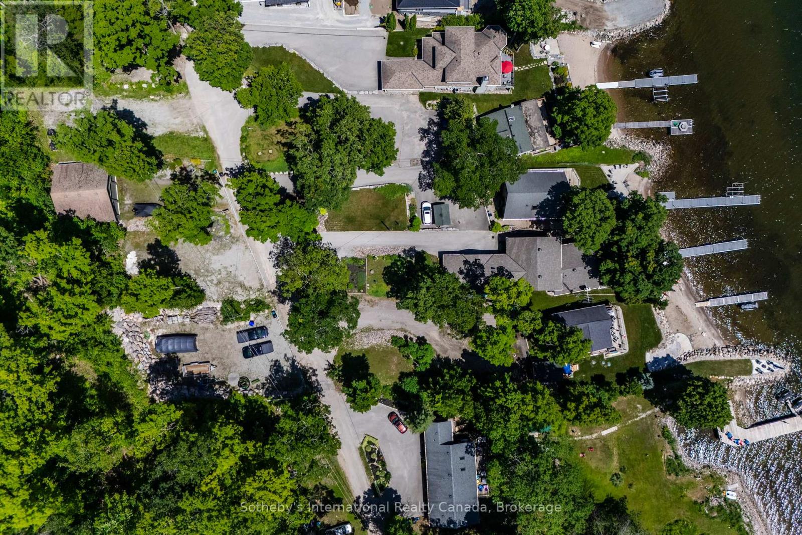 This beautifully maintained waterfront home showcases true pride of ownership. Originally redeveloped, expanded, and customized in 2004, it was thoughtfully designed with large families and entertaining in mind. Spanning three spacious levels - approx 3400 sqft, the home offers 4 bedrooms, 3 bathrooms, 2 full kitchens, 1 Dining Room, 2 family rooms, wine cellar and multiple entrances, along with a versatile office/guest space with a day bed ideal for hosting extended family or visitors. Enjoy panoramic big-water views from several outdoor living areas, including a rooftop sitting area above the large dry-dock boathouse. The waterfront features 48 feet of south-facing shoreline with a renovated concrete pier, a newer 50-foot post dock system, and generous seating zones some shaded with retractable awnings for effortless outdoor entertaining. Set on a deep 48' x 694' lot, this property also includes a serviced back lot with hydro and water perfect for parking an RV or trailer. Accessibility is a priority with wide hallways, handicap-friendly bathrooms and doors, and a high-capacity stair lift. The attached 1.5 garage plus carport, and garden shed offer ample storage and convenience. Modern utilities include natural gas, high-speed internet, a partial backup 20 KW generator. Situated on prestigious Midland Point Road, you're just 8 minutes from downtown Midland and close to shopping, dining, and local attractions. (id:64974)