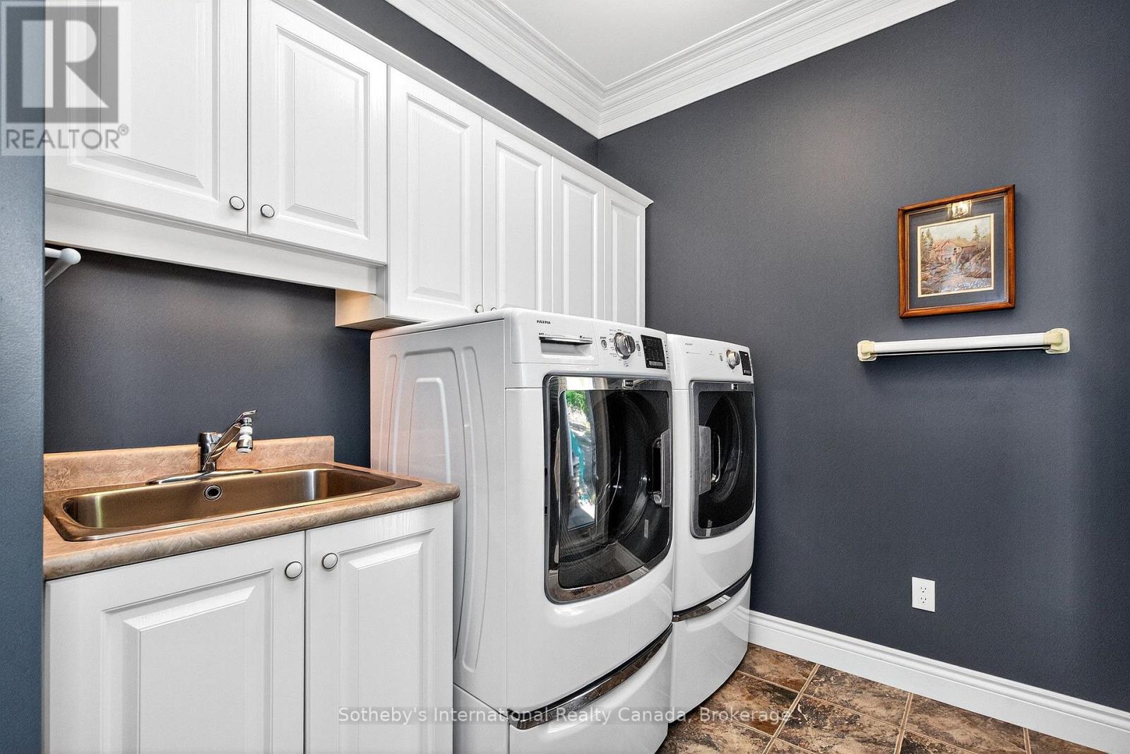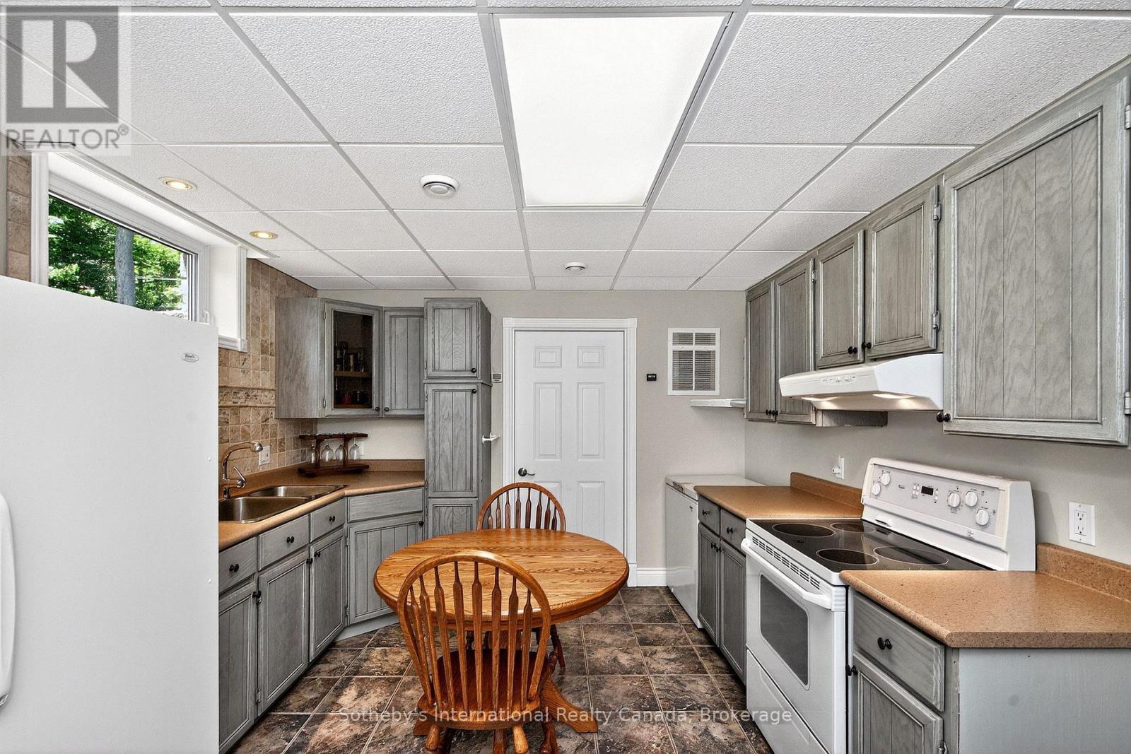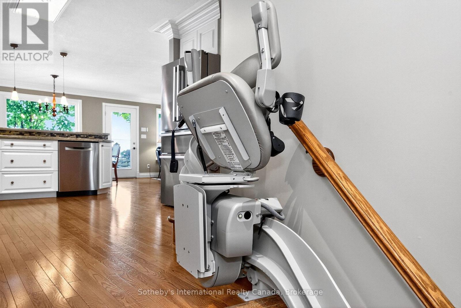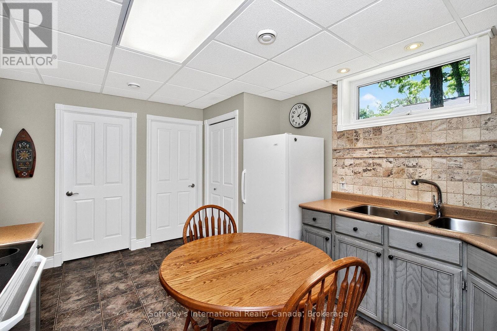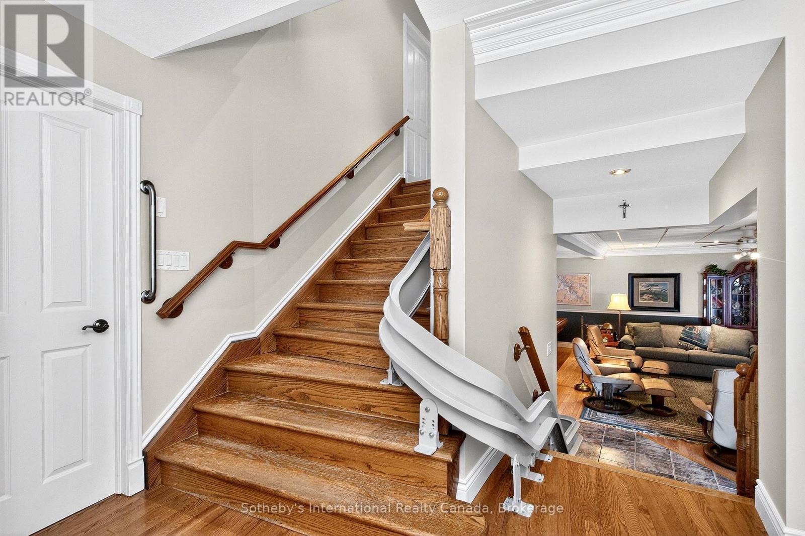 This beautifully maintained waterfront home showcases true pride of ownership. Originally redeveloped, expanded, and customized in 2004, it was thoughtfully designed with large families and entertaining in mind. Spanning three spacious levels - approx 3400 sqft, the home offers 4 bedrooms, 3 bathrooms, 2 full kitchens, 1 Dining Room, 2 family rooms, wine cellar and multiple entrances, along with a versatile office/guest space with a day bed ideal for hosting extended family or visitors. Enjoy panoramic big-water views from several outdoor living areas, including a rooftop sitting area above the large dry-dock boathouse. The waterfront features 48 feet of south-facing shoreline with a renovated concrete pier, a newer 50-foot post dock system, and generous seating zones some shaded with retractable awnings for effortless outdoor entertaining. Set on a deep 48' x 694' lot, this property also includes a serviced back lot with hydro and water perfect for parking an RV or trailer. Accessibility is a priority with wide hallways, handicap-friendly bathrooms and doors, and a high-capacity stair lift. The attached 1.5 garage plus carport, and garden shed offer ample storage and convenience. Modern utilities include natural gas, high-speed internet, a partial backup 20 KW generator. Situated on prestigious Midland Point Road, you're just 8 minutes from downtown Midland and close to shopping, dining, and local attractions. (id:64974)