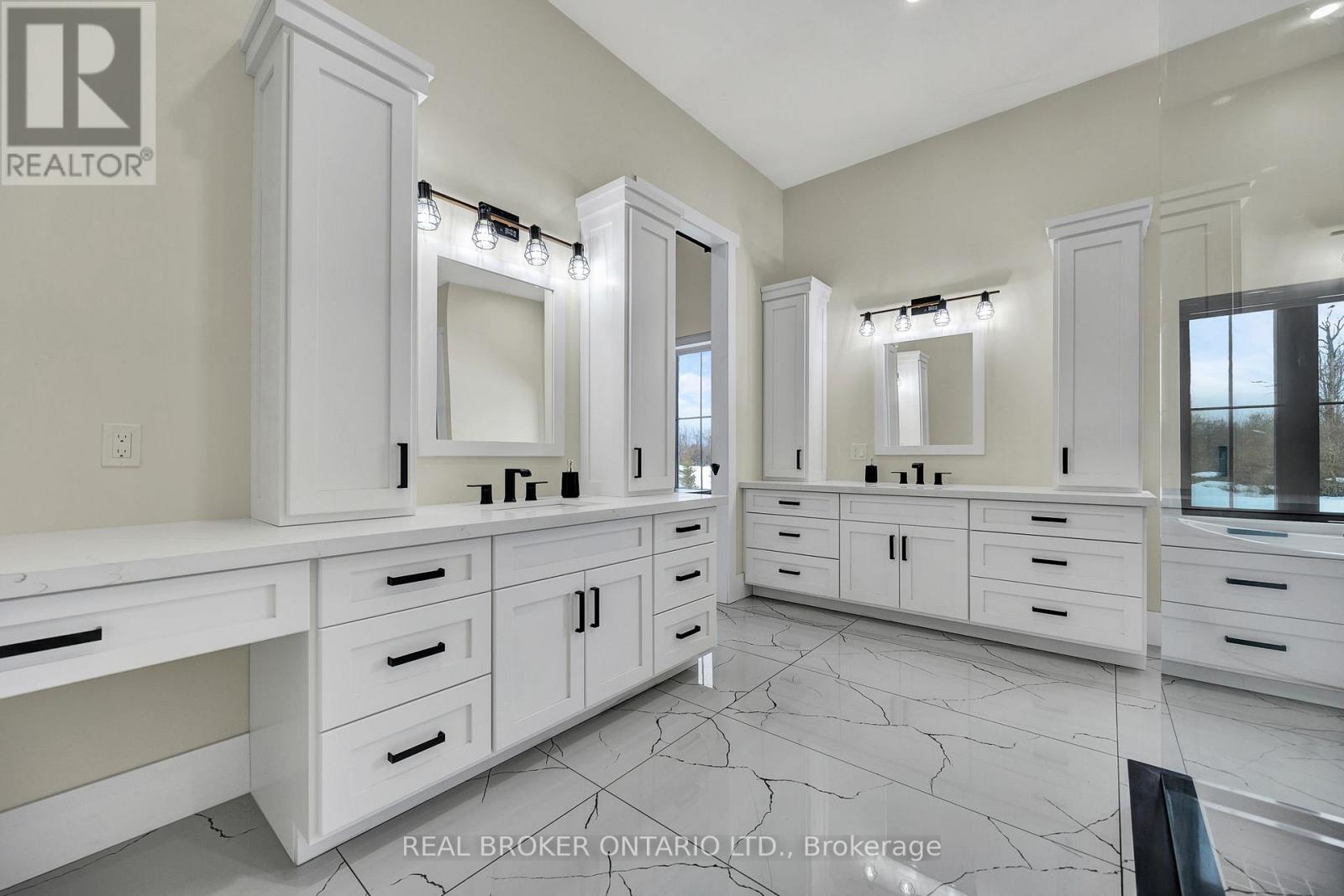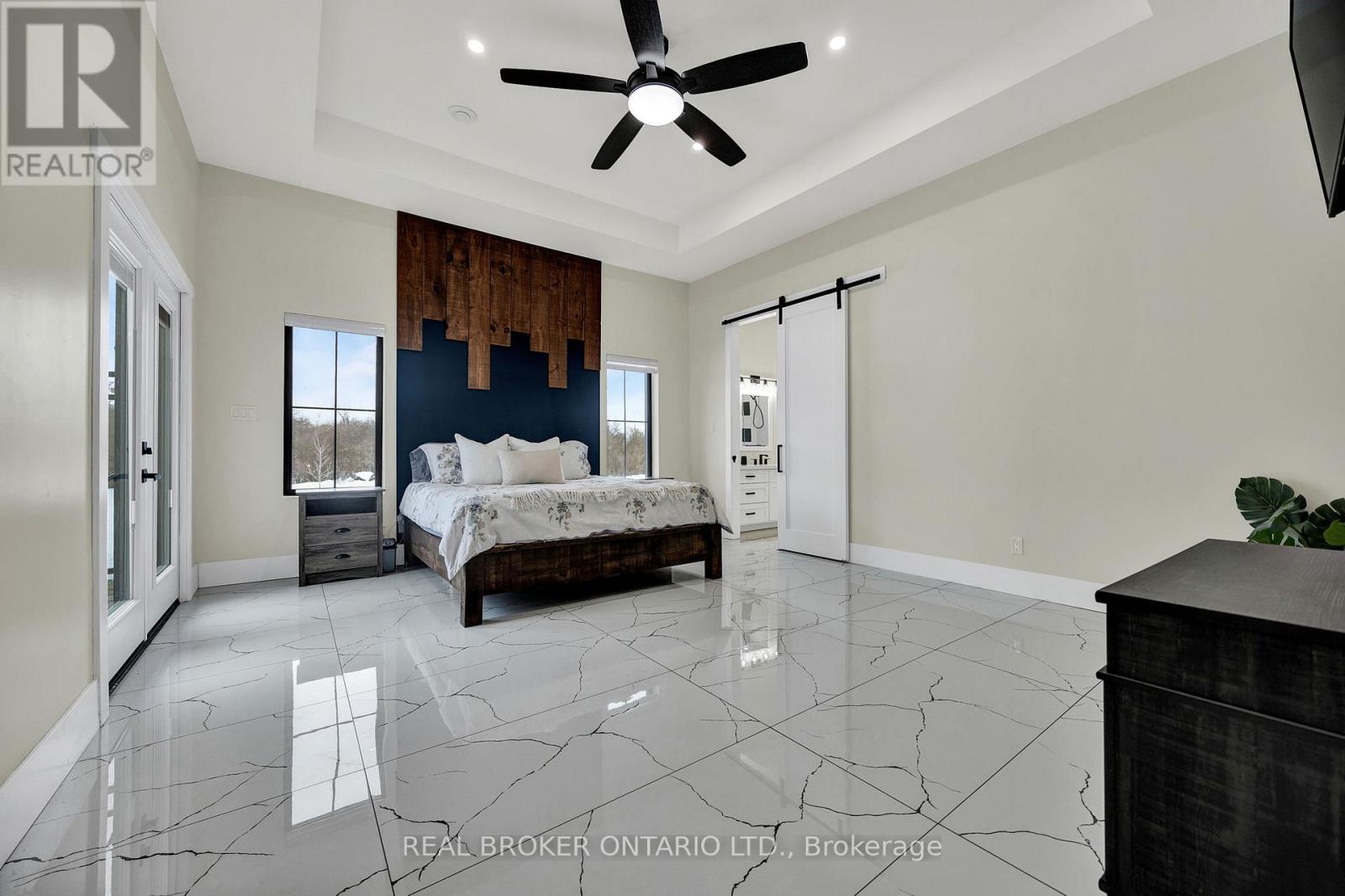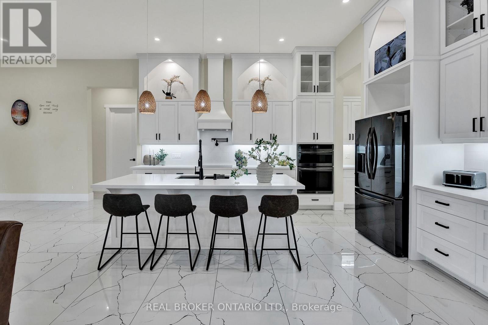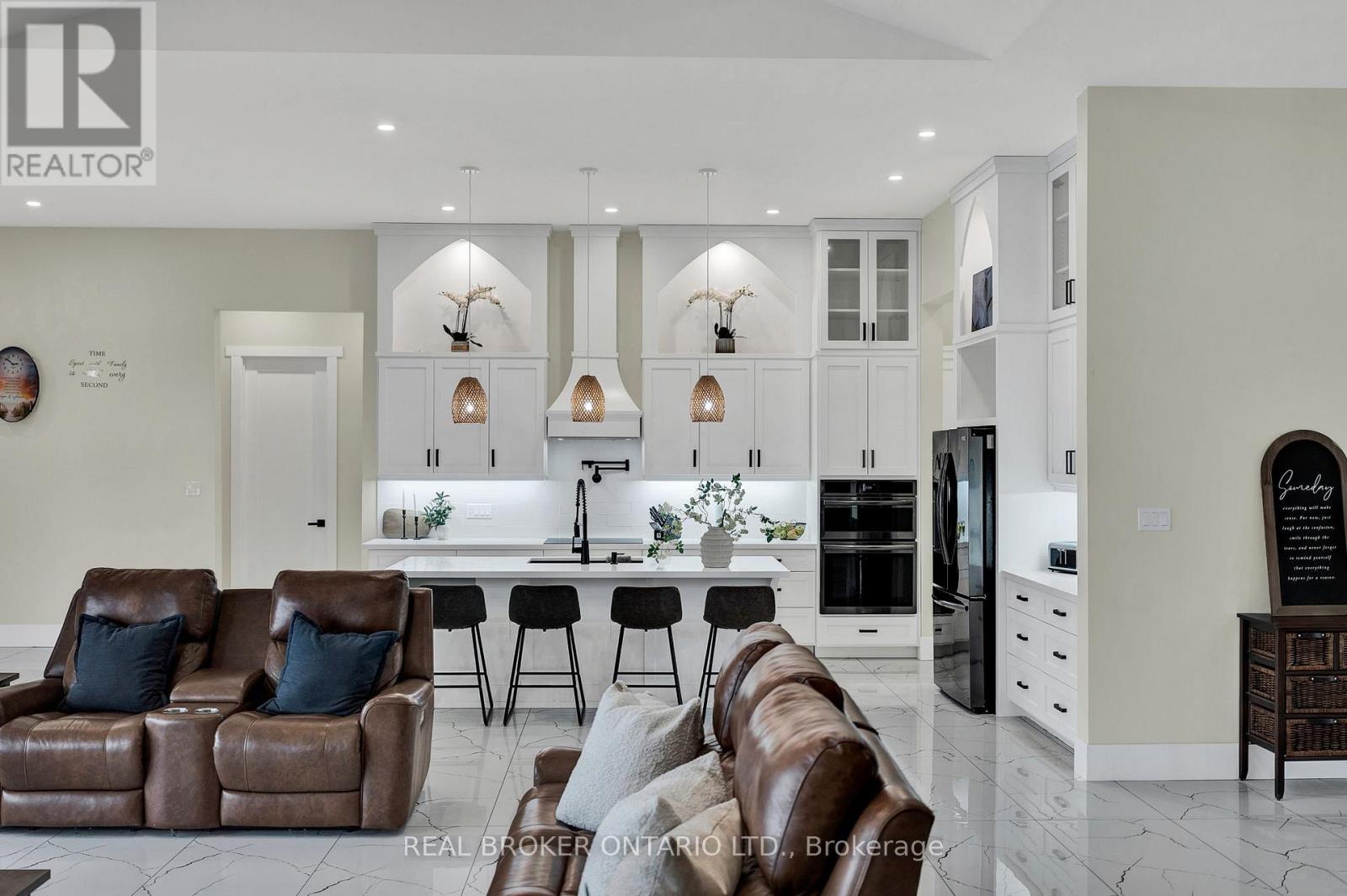 This custom built bungalow, completed in 2023, sits on just under 10 acres and offers a rare mix of modern comfort, quality finishes, and space to enjoy the land. Featuring 3 bedrooms and 3 bathrooms, the home is thoughtfully designed for both everyday living and long term comfort.The foyer welcomes you with marble flooring, in floor heating, and tall ceilings, setting the tone for the rest of the home. The open concept main living area flows naturally and is filled with natural light from large south facing windows. A floor to ceiling stone fireplace anchors the living room and creates a warm, inviting space year round.The kitchen is both functional and well designed, featuring floor to ceiling cabinetry, quartz countertops, stainless steel appliances, a farmhouse sink, and a large island for everyday use. A walk through pantry connects to the formal dining room, offering flexibility for hosting or quieter meals. Built in cabinetry with floating shelves and a bar fridge adds a practical accent and additional storage. Patio doors lead to a covered outdoor living area for easy indoor outdoor flow.The primary bedroom is spacious and bright, with a well appointed ensuite that includes double vanities, a large walk in shower, and a walk in closet. Two additional bedrooms, a dedicated office, mudroom, and generous laundry room complete the main level. Everything is located on one level for easy, efficient living.Two attached garages with in floor heating provide plenty of space for vehicles, storage, or workspace.A standout feature of the property is the approximately 40 x 70 heated shop, complete with in floor heat, large overhead doors, a washroom, and office space.Set on just under 10 acres, this property offers privacy, open space, and room for projects, hobbies, or simply enjoying the outdoors. A newer build that combines thoughtful design, luxury finishes, and practical country living. (id:64974)