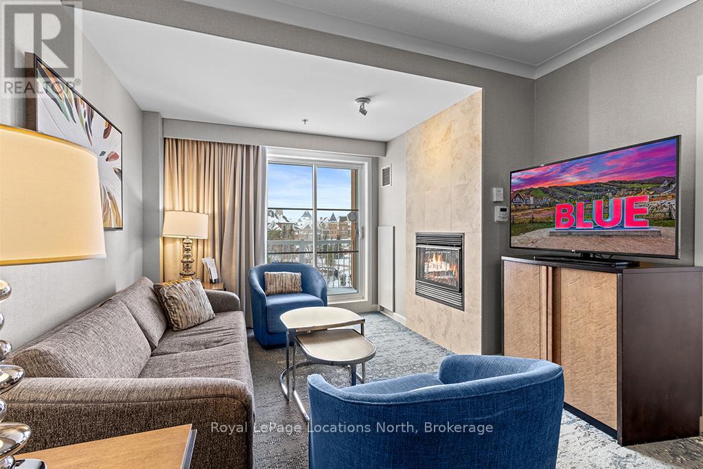 This beautifully refurbished one-bedroom suite at the Westin Trillium House, Blue Mountain offers serene Mill Pond views and a private balcony-an ideal four-season cottage alternative. Fully furnished and turn-key, the suite features a kitchenette, dining area, gas fireplace, and a pull-out sofa for added sleeping capacity. Owners enjoy access to premium Westin amenities including valet parking, a year-round outdoor pool and hot tub, sauna, fitness center, and pet-friendly accommodations. In-room dining is available from the renowned Oliver & Bonacini restaurant located in the lobby, with additional dining, shopping, and entertainment just steps away in Blue Mountain Village. Enjoy year-round activities, festivals, and breathtaking surroundings right outside your door, including the tranquil Village Mill Pond, vibrant ski hills and scenic trails, leisure lifestyle shops, restaurants, cafés, grocery, spa services, golfing, and mountain biking. A short drive brings you to the private beach, Scenic Caves, downtown Collingwood, Georgian Bay, local marinas, and the famous sandy shores of Wasaga Beach. Ownership includes participation in a professionally managed rental program through Blue Mountain Resorts, offering income potential while allowing for personal use. Additional conveniences include a private owners' ski locker, bike storage, and all-inclusive condo fees covering utilities and insurance.HST is applicable to the purchase price but may be deferred. BMVA fees apply, including a one-time membership fee of 2% + HST of the purchase price and an annual fee of $1.08 + HST per square foot. (id:64974)