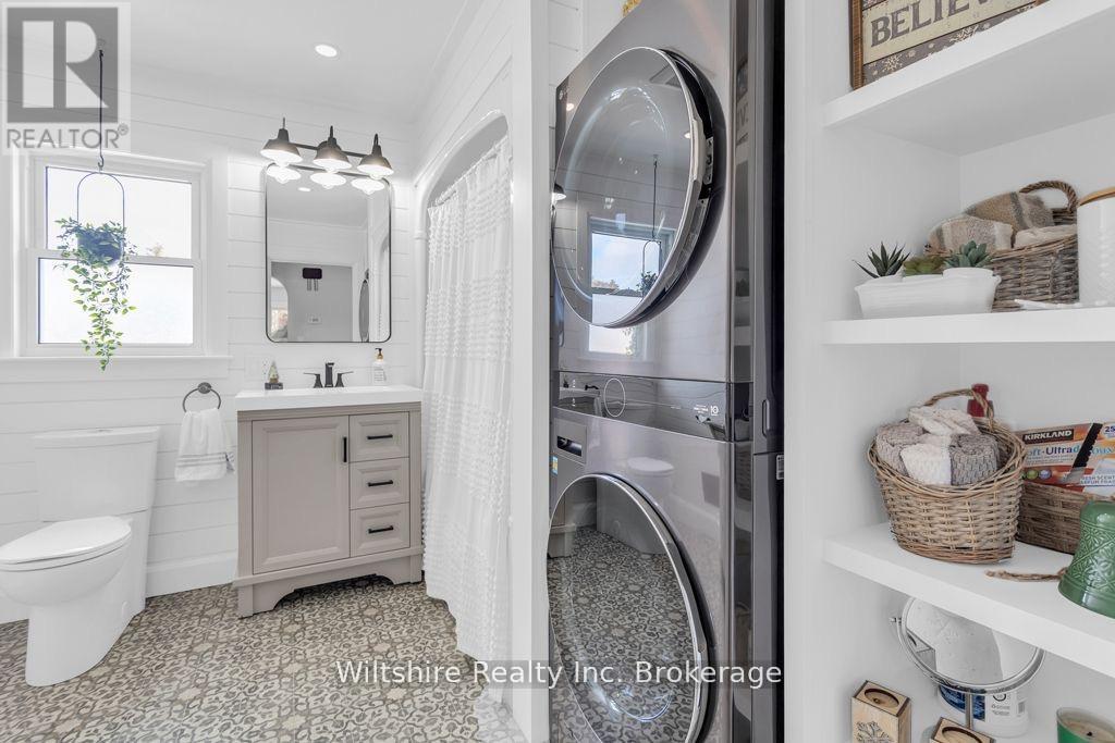 This charming brick bungalow has been tastefully updated to offer a fresh, modern feel while keeping its inviting character. Step inside to find a bright, open main floor featuring two comfortable bedrooms, a fully renovated bathroom with convenient main-floor laundry (2024), and stylish new flooring and paint (2024) throughout. The living room is the heart of the home, centered around a cozy electric fireplace that creates the perfect spot to relax.Downstairs, the fully finished lower level is just as impressive, offering a second kitchen, additional laundry, and a versatile bedroom or office space. The spacious recreation room features both gas and electric fireplaces, making it an ideal gathering place for family or guests. Theres also an abundance of storage space and a dedicated workshop area, giving hobbyists or DIY enthusiasts room to create and stay organized.Recent updates include new plumbing (2024), a new front porch (2024), and upgraded electrical panels (2025). The windows were replaced in 2015, and the furnace and air conditioner are newer and in good working order. The basement offers excellent potential for an in-law suite. (id:64974)