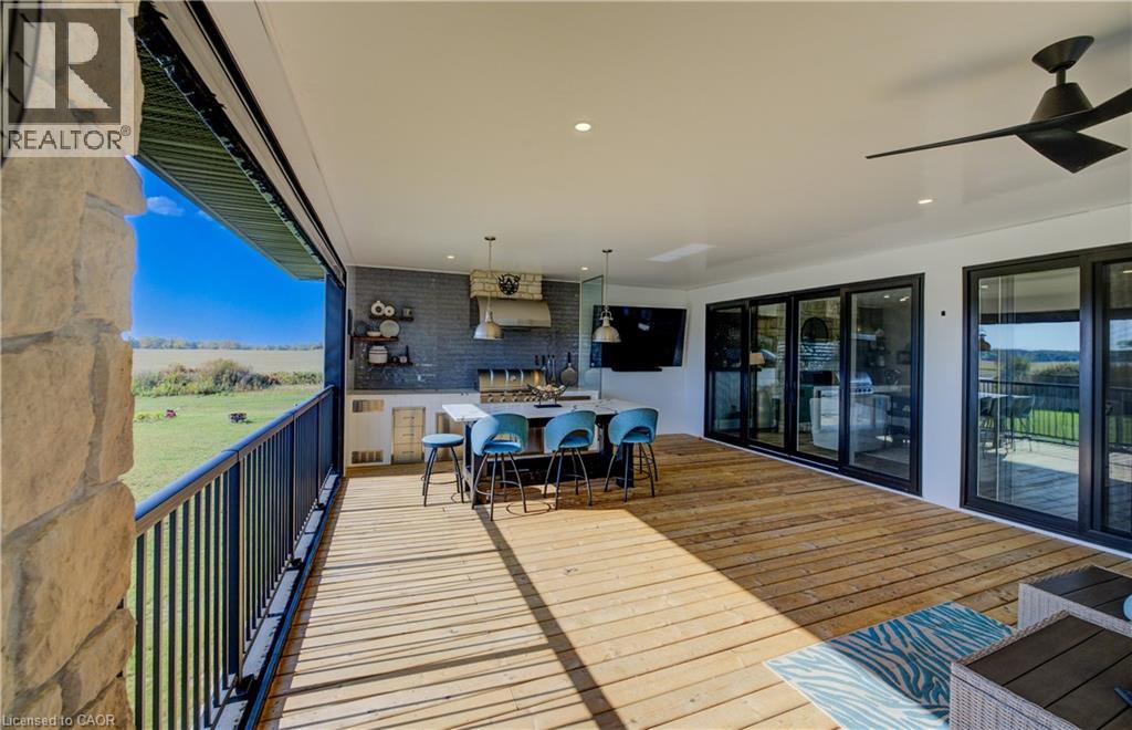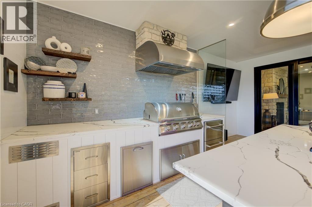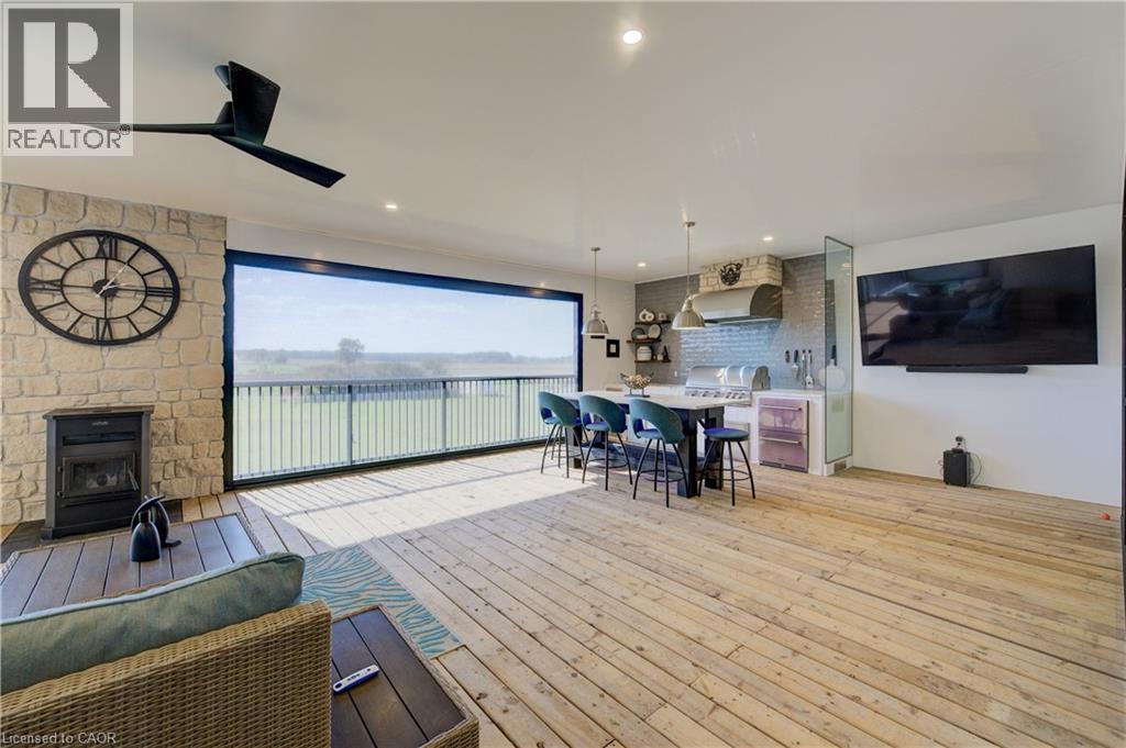 Prepare to be captivated by this extraordinary custom home at 43711 Adelaide Street, where modern design meets refined comfort in every detail. The moment you step inside, you’re greeted by an expansive open-concept living space bathed in natural light, highlighted by soaring ceilings, wide-plank flooring, and sleek contemporary finishes. The designer kitchen is a true centerpiece—offering full-height cabinetry, quartz surfaces, a massive island for gathering, and professional-grade appliances seamlessly integrated into a clean, timeless aesthetic. The adjoining dining area and great room create the ultimate entertaining space, framed by oversized patio doors that open to a show stopping screened-in porch. Here, indoor and outdoor living blend beautifully with a full outdoor kitchen, lounge seating, dual ceiling fans, and a luxurious swim spa overlooking peaceful country views—an all-season retreat like no other. The primary suite is a private haven with a spa-inspired ensuite and His & Hers Walk-In Closets – Designed for Luxury and Function, while additional bedrooms and baths combine style and function for family or guests. The finished lower level adds even more versatility, featuring a bright family room, secondary kitchen, and a cozy sunroom that invites you to relax and recharge. Every inch of this home showcases quality craftsmanship and thoughtful design. Outside, a detached 1,100 sq. ft. garage/workshop offers extra room for hobbies or storage and is set up all the infrastructure you would need—completing a property that truly redefines what country luxury can be. Peace of Mind, Rain or Shine – 24kW Whole-House Generator Included! Never worry about power outages with 24kW whole-house generator. Seamlessly integrated into the home’s electrical system, this powerful unit automatically activates within seconds of an outage, keeping the entire household running—from kitchen appliances to Wi-Fi to your Swim Spa! 96 sprinkler heads for in ground irrigation system (id:64974)